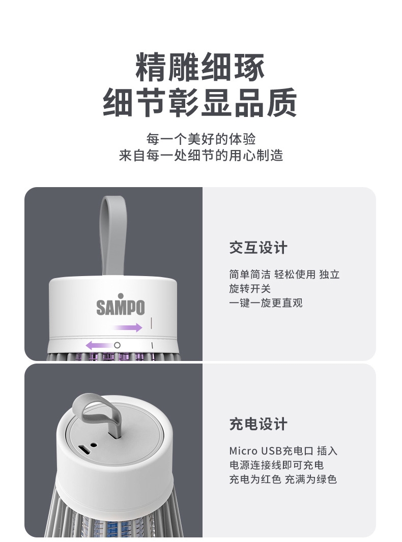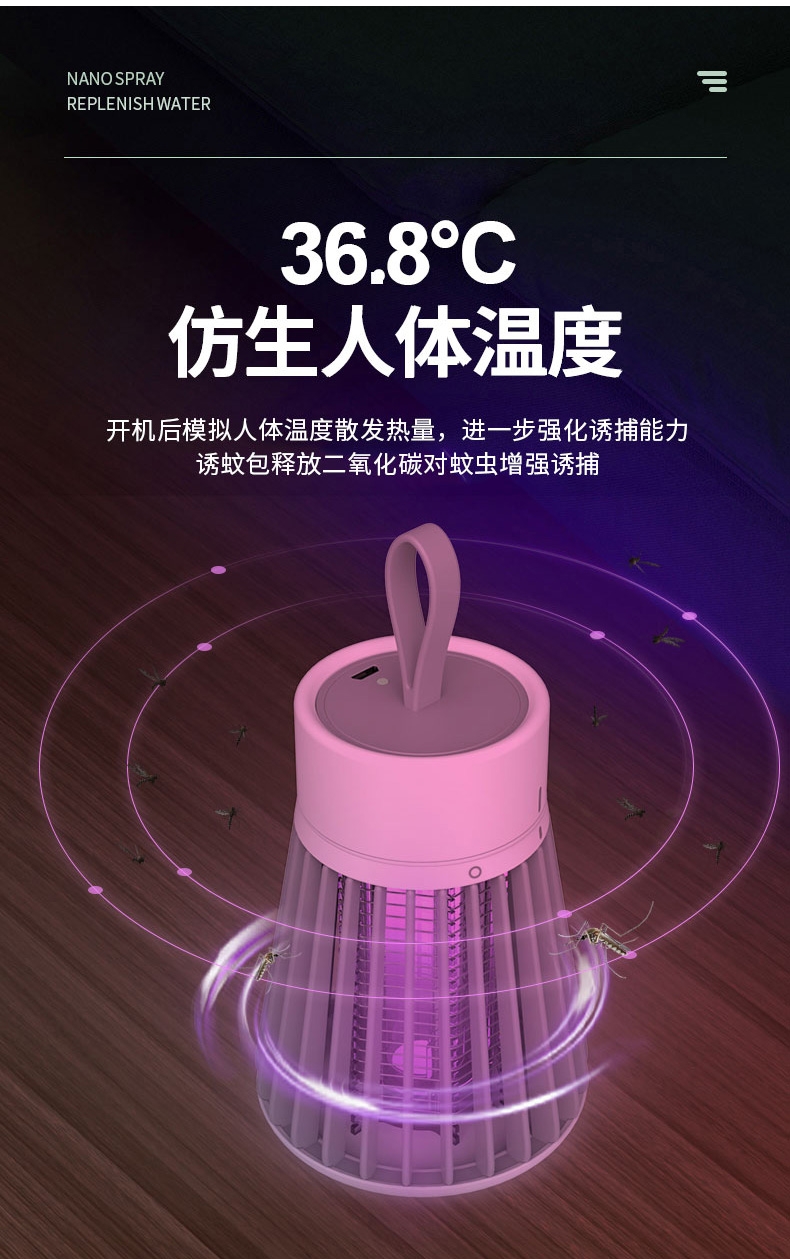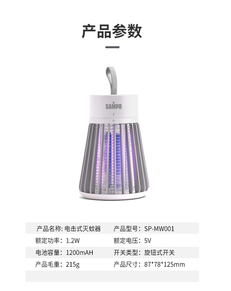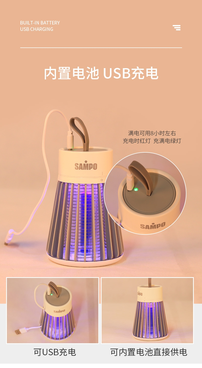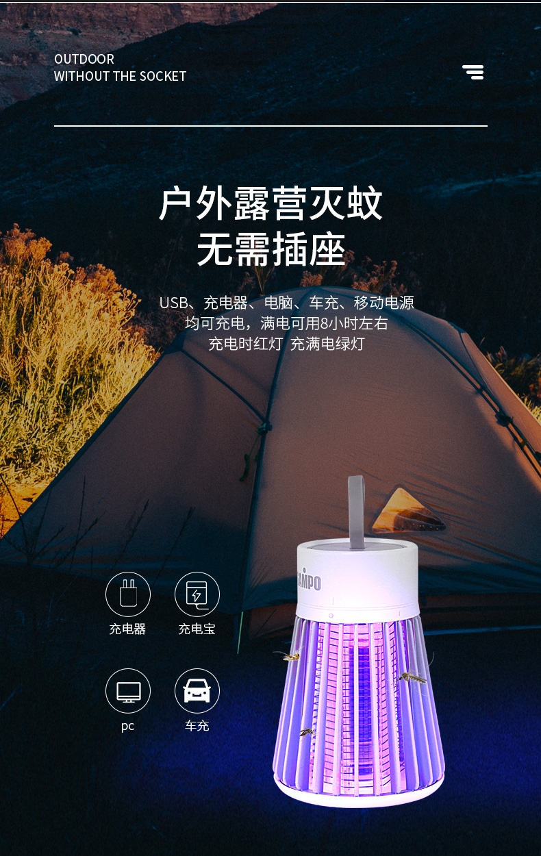 内置电池,方便便携;物理灭蚊,安全环保;户外露营灭蚊