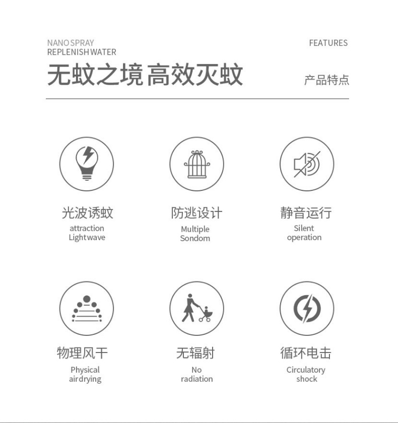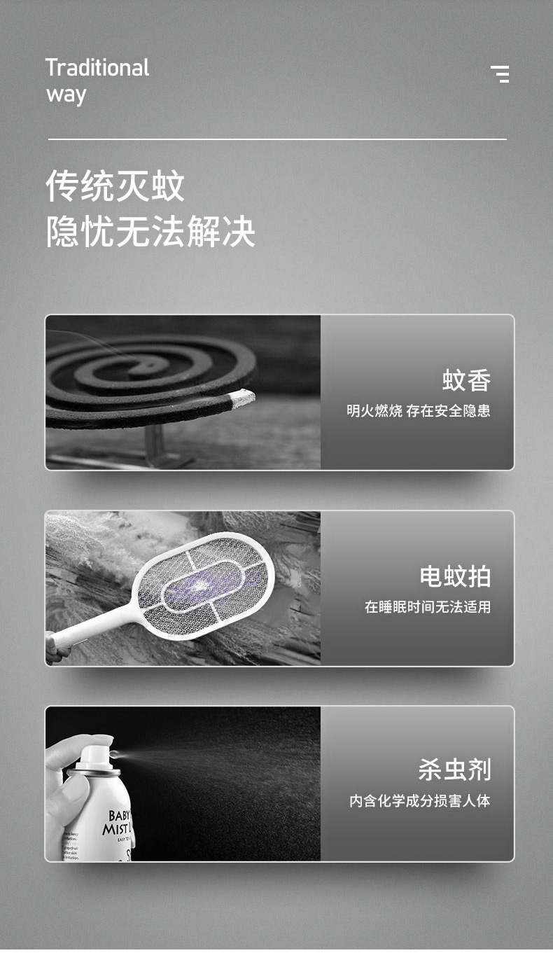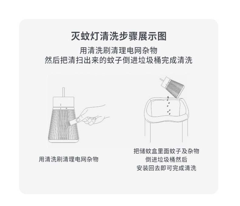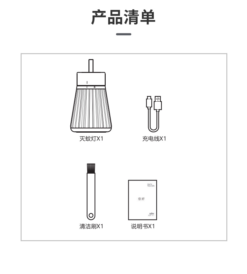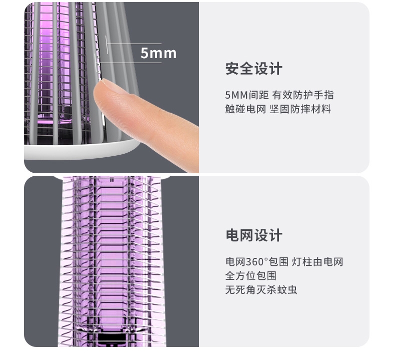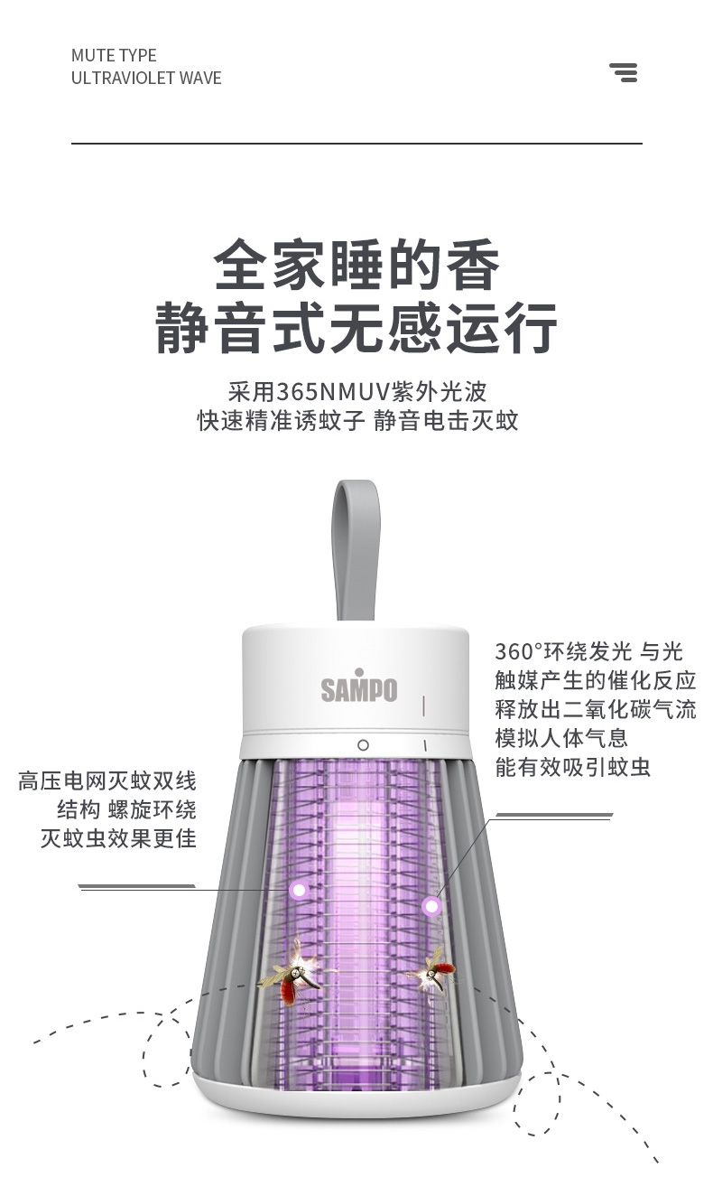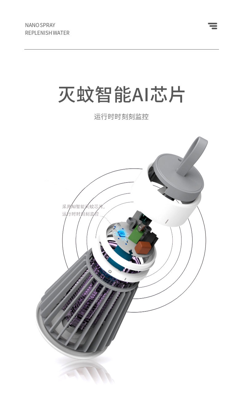 内置电池,方便便携;物理灭蚊,安全环保;户外露营灭蚊