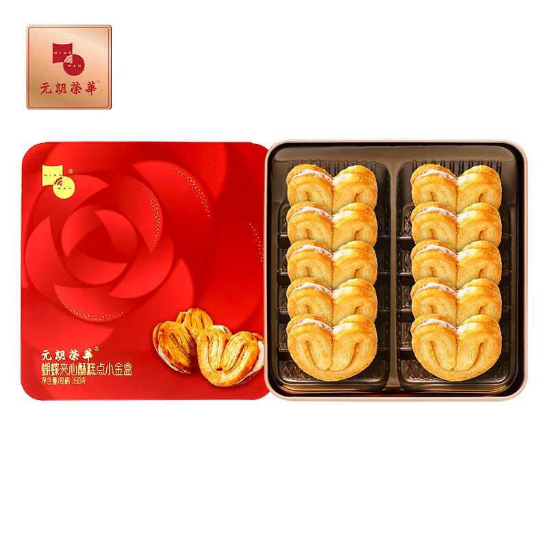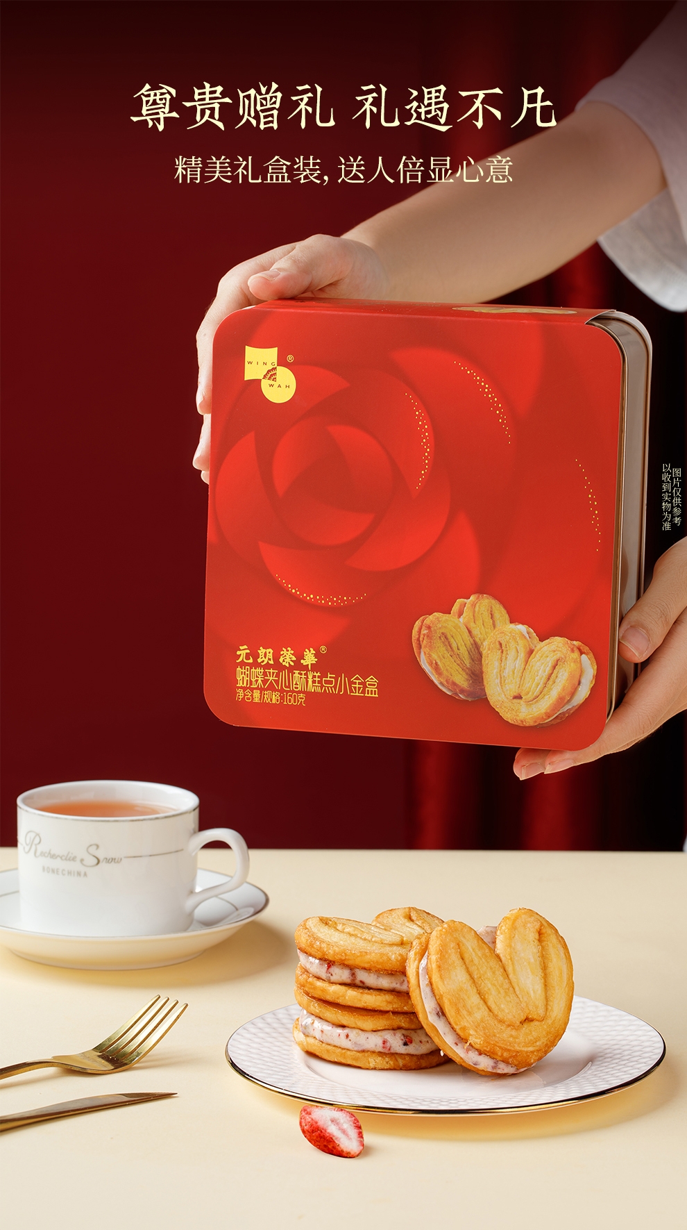 元朗荣华 蝴蝶夹心酥糕点小金盒160g