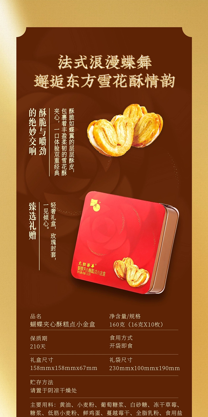 配置:蝴蝶夹心酥糕点 16克X10枚