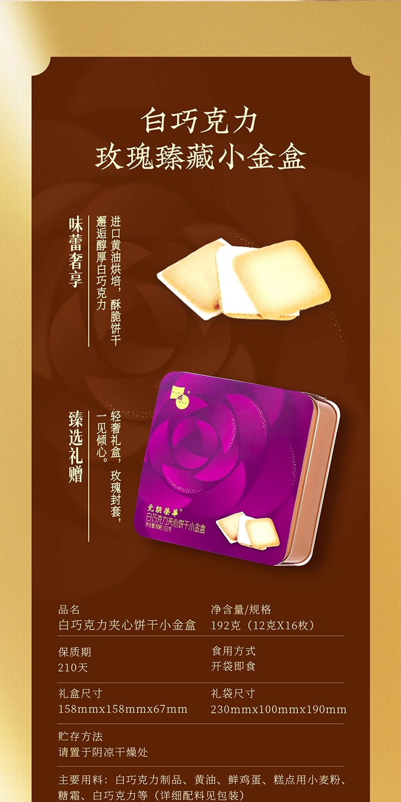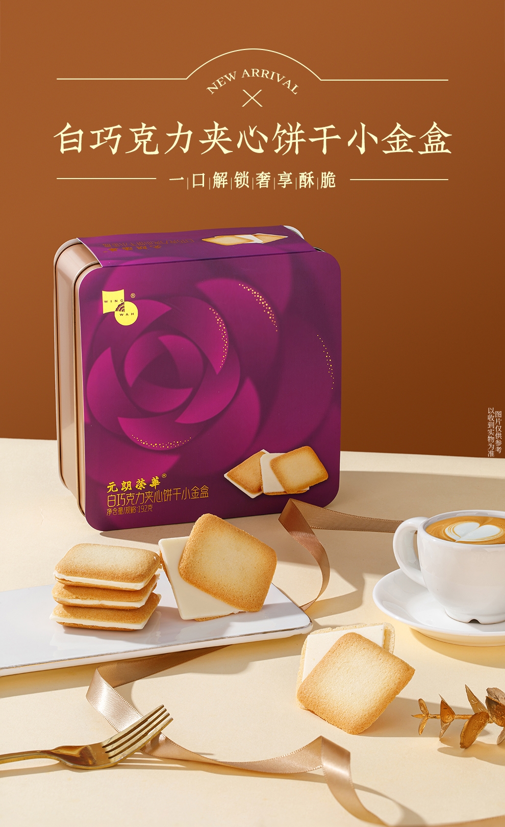 元朗荣华 白巧克力夹心饼干小金盒192g