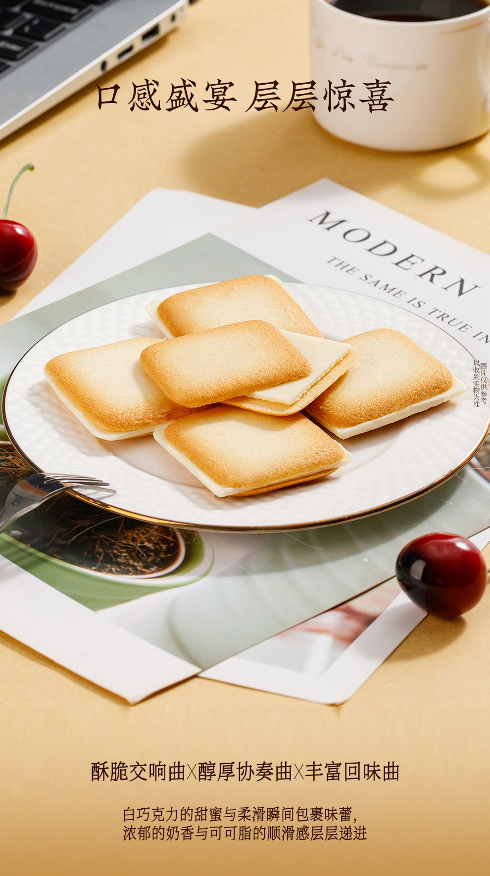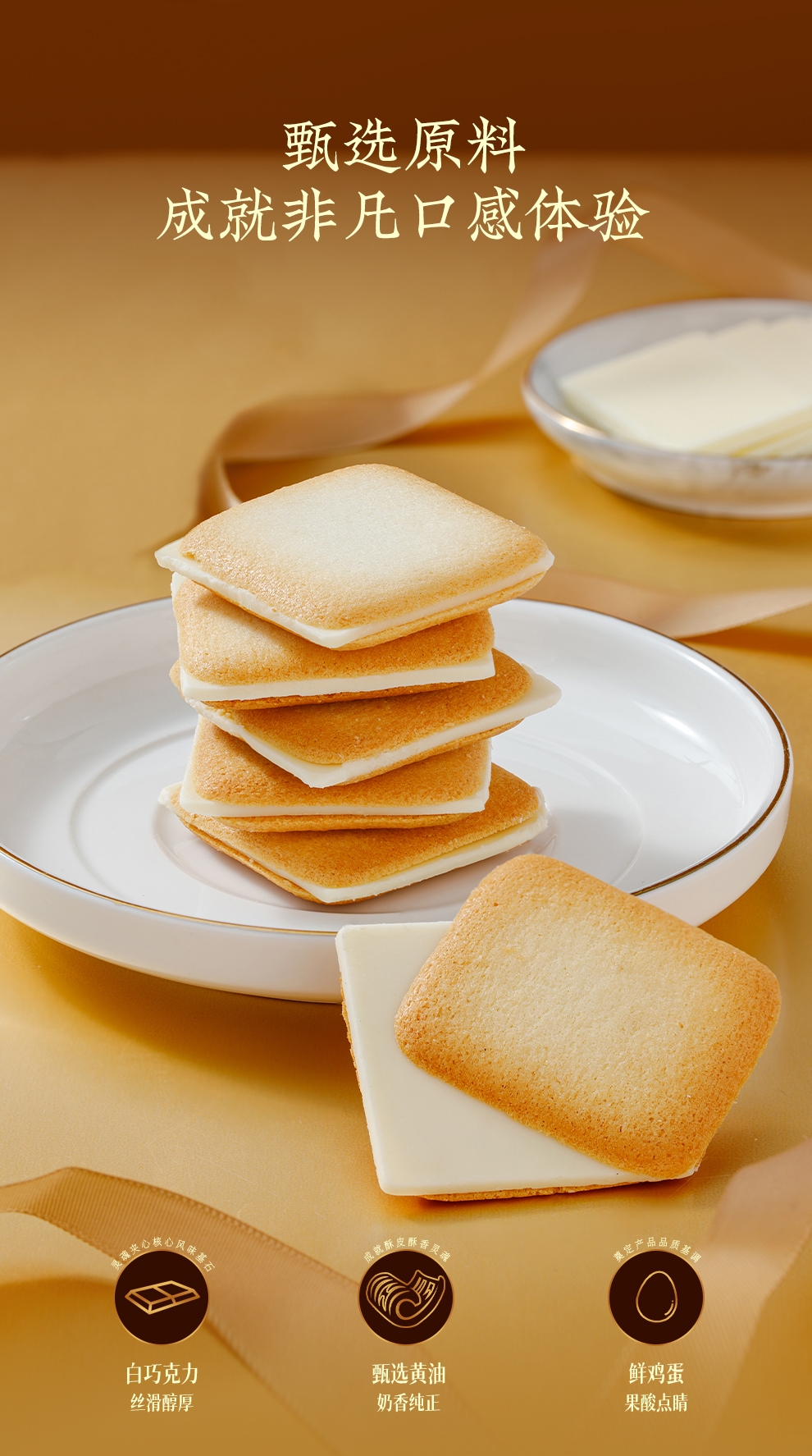 白巧克力的甜蜜与柔滑瞬间包裹味蕾;浓郁的奶香与可可脂的顺滑感层层递进;甄选黄油奶香纯正
