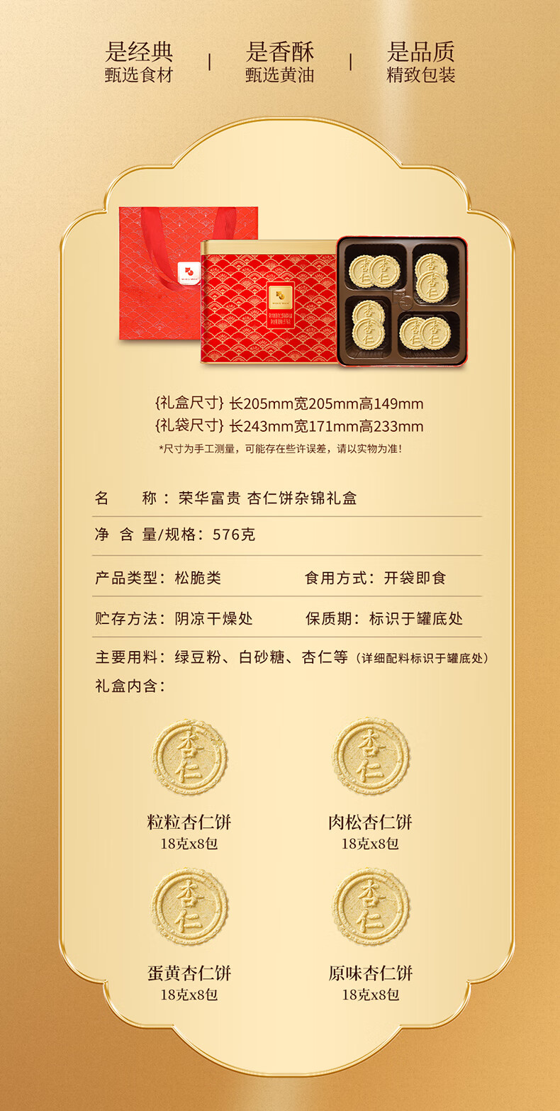 元朗荣华 荣华富贵杏仁饼杂锦礼盒576g