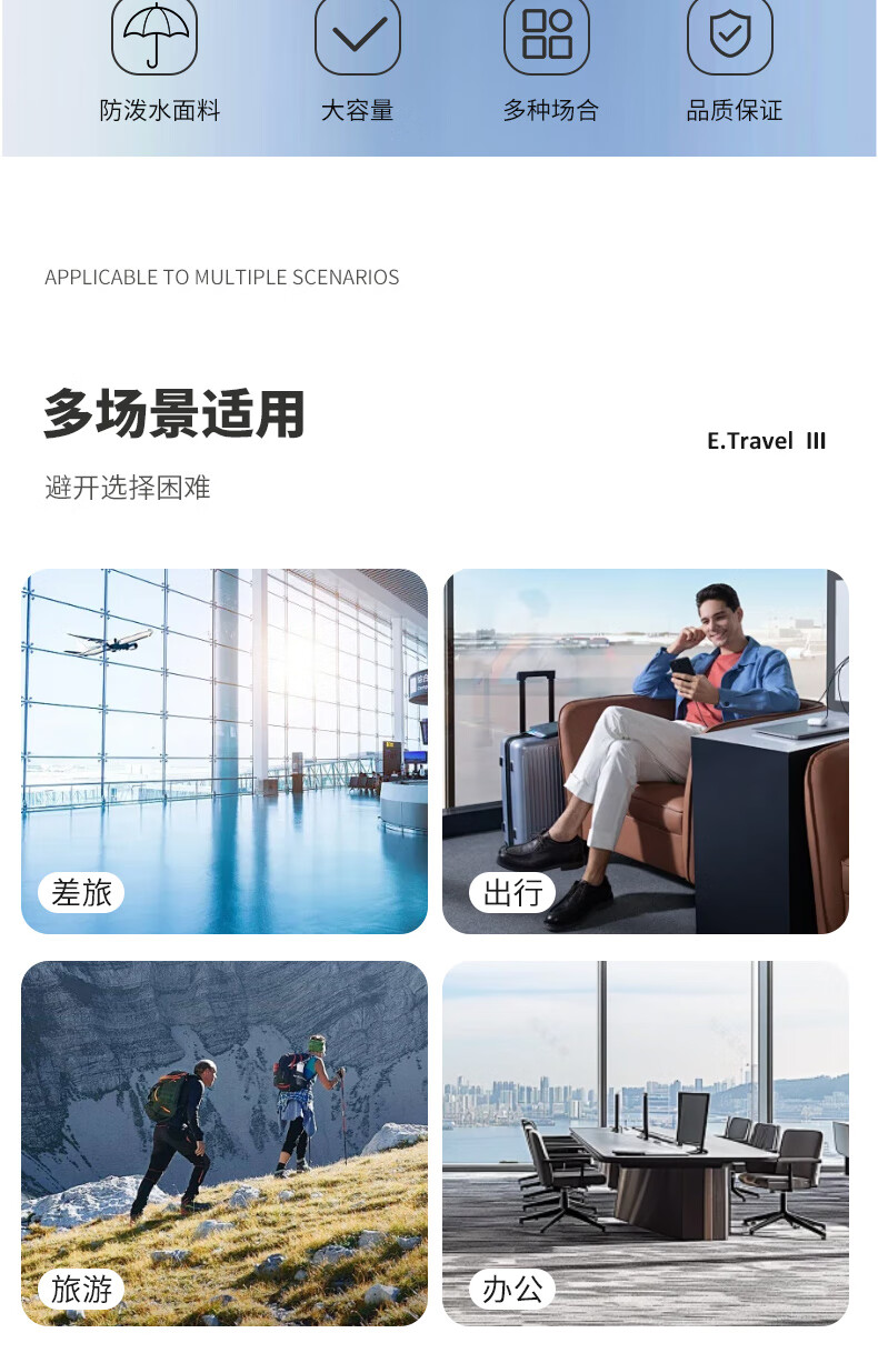 商务/休闲,外出旅行,一包搞定;防泼水面料;加大储存空间