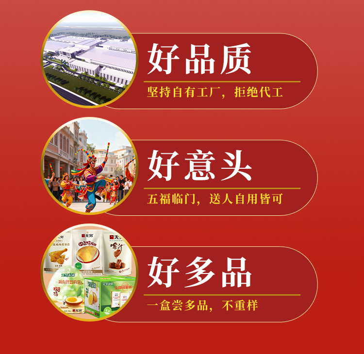 种类多多,口味多多,选择多多;年货精品大礼包;过年必吃的盐焗小零食