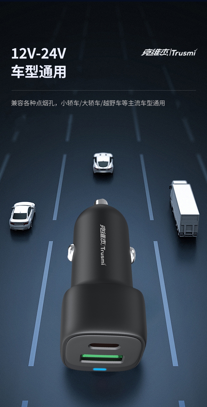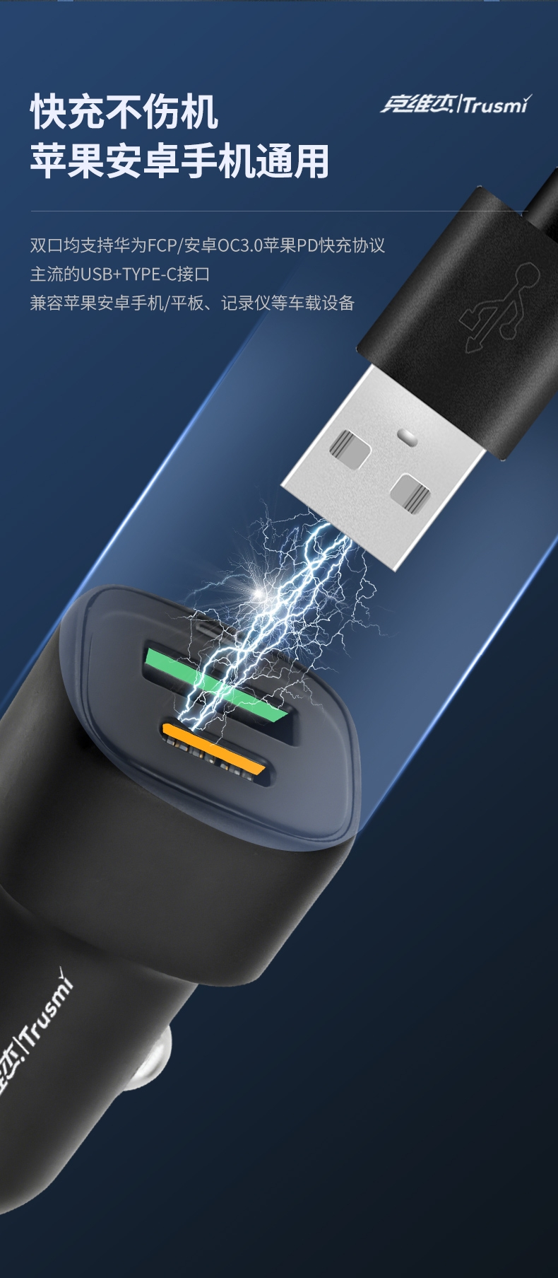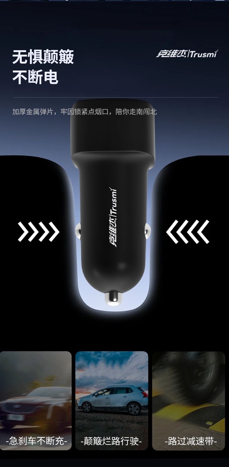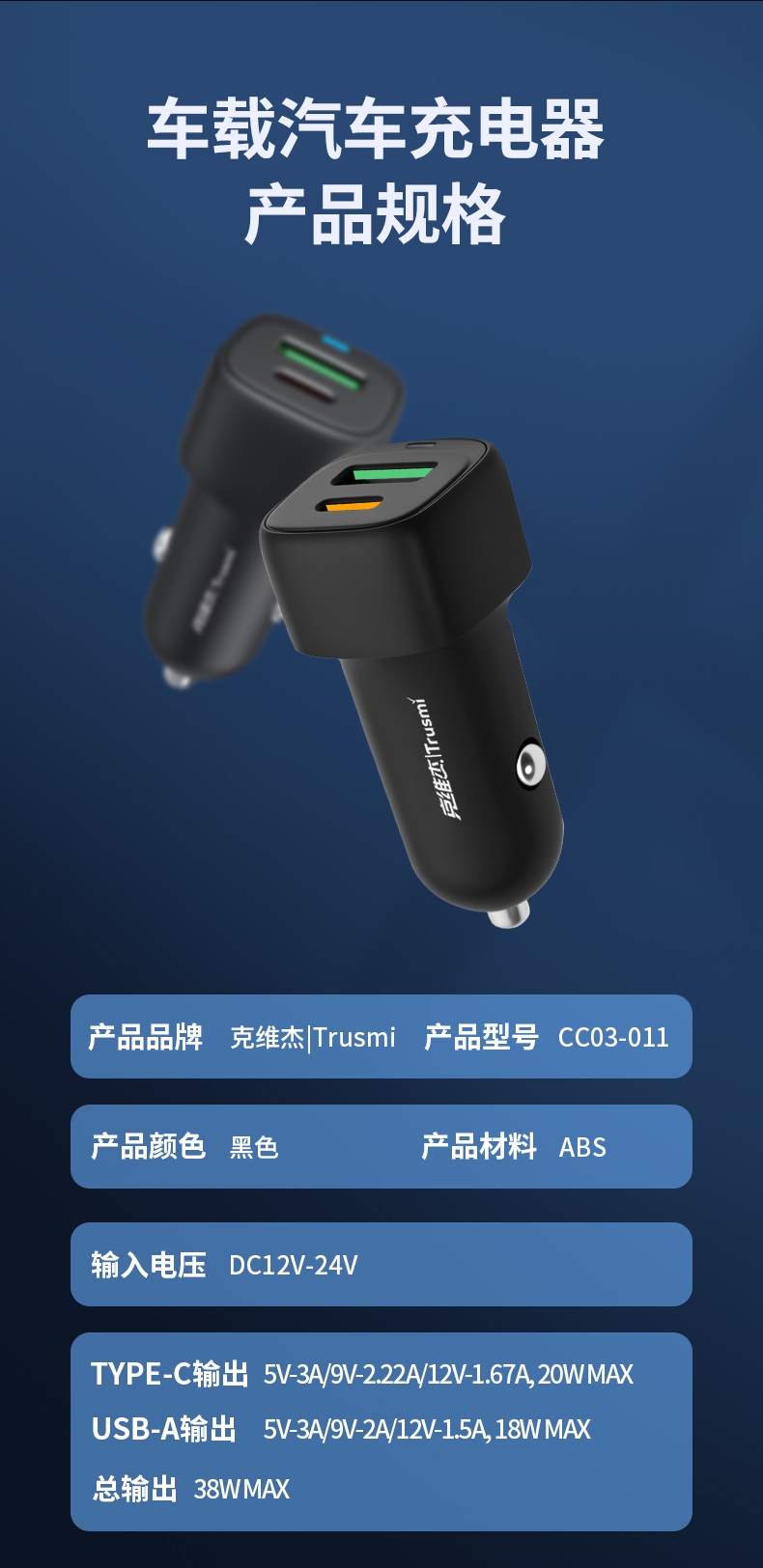 克维杰 38WA.C双口带灯车充黑色CC03-011