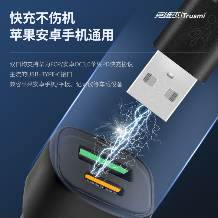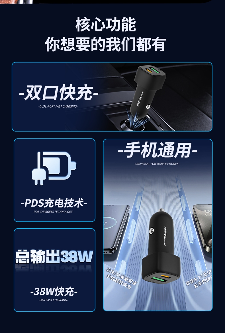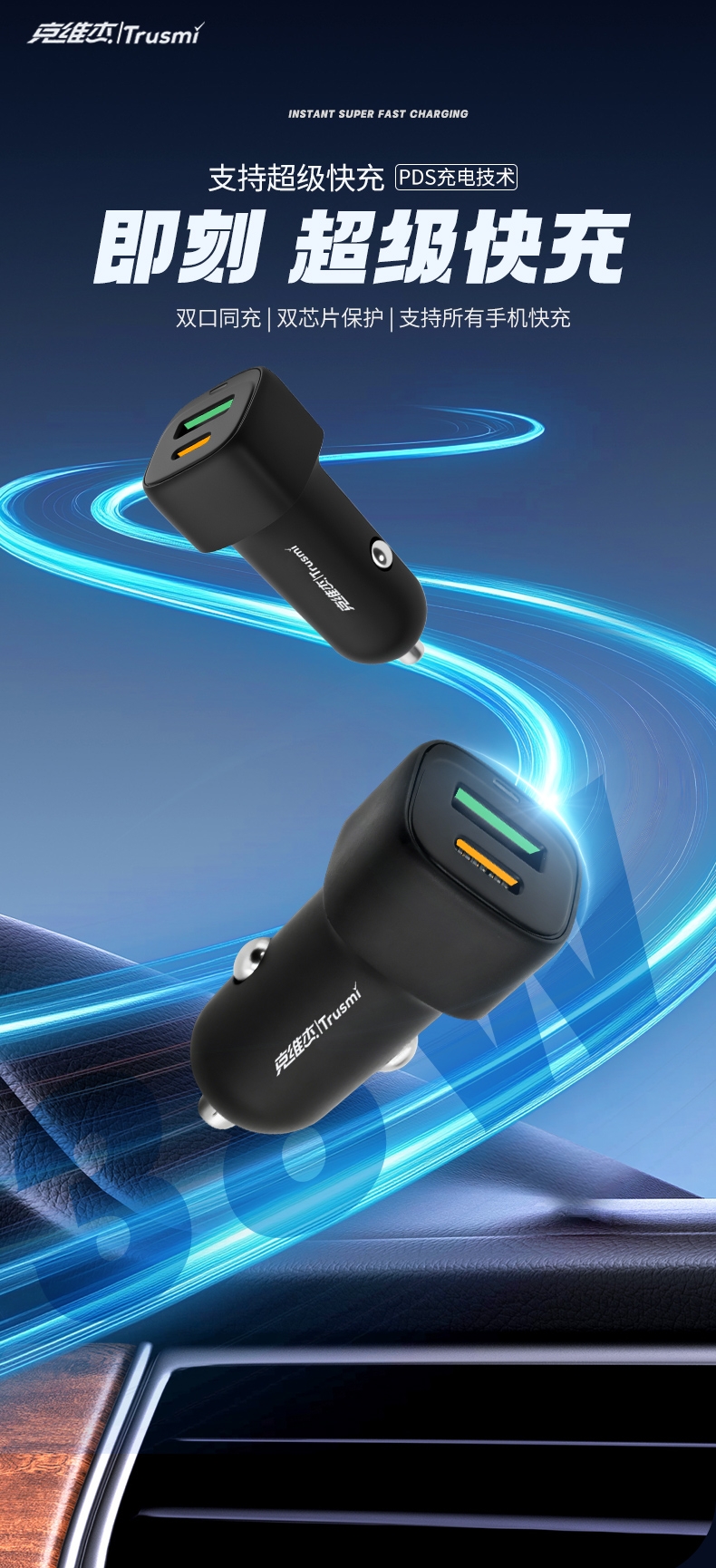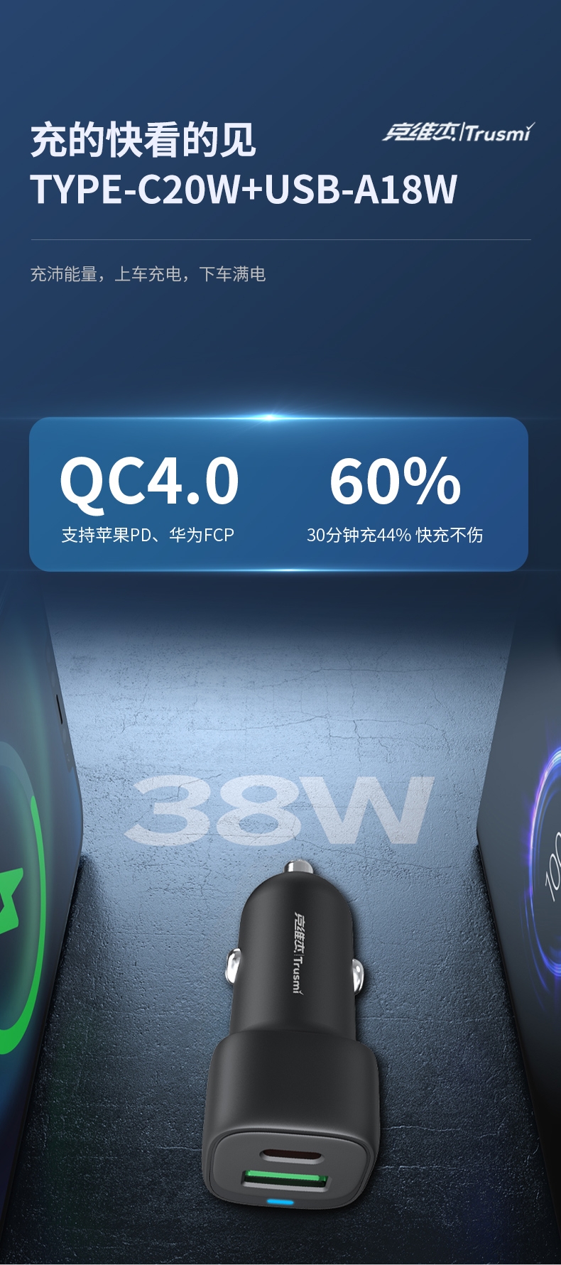 克维杰 38WA.C双口带灯车充黑色CC03-011