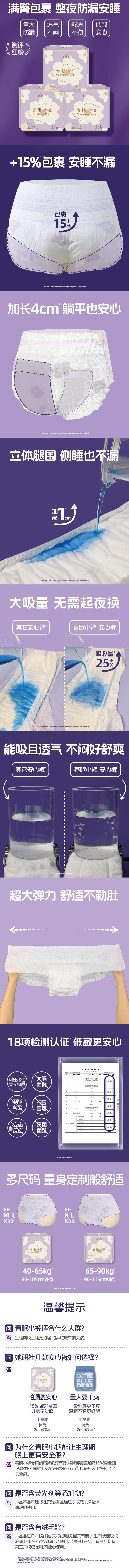 能吸且透气,不闷好舒爽;超大弹力,舒适不勒肚;立体腿围,侧睡也不漏