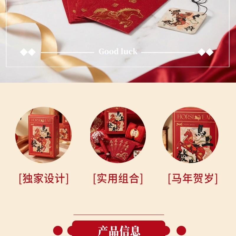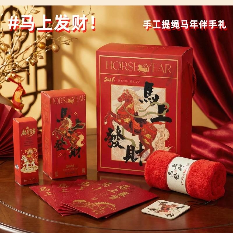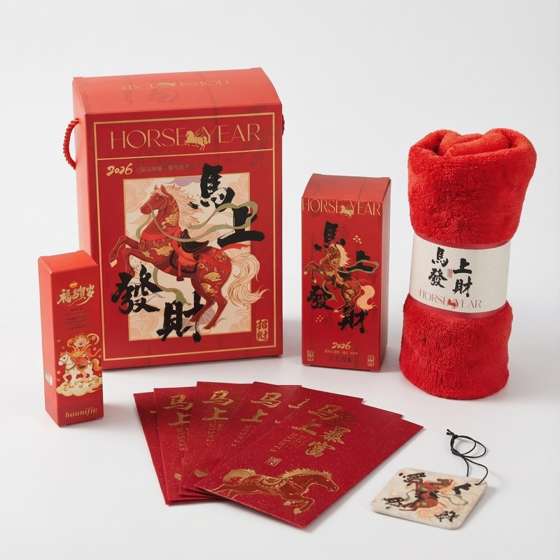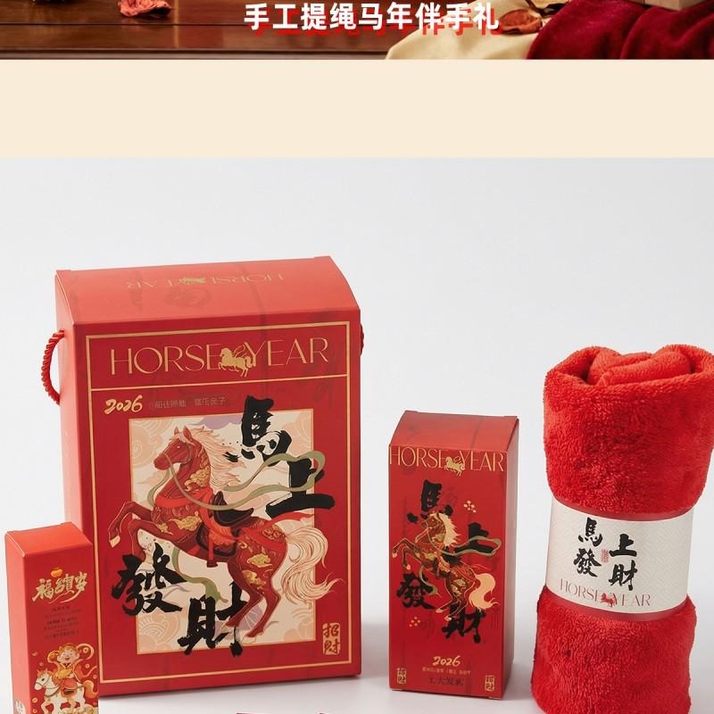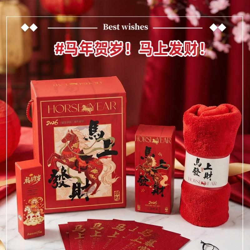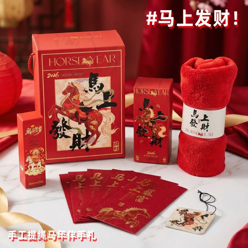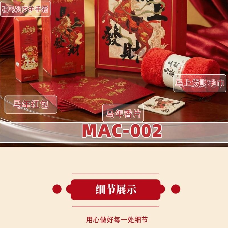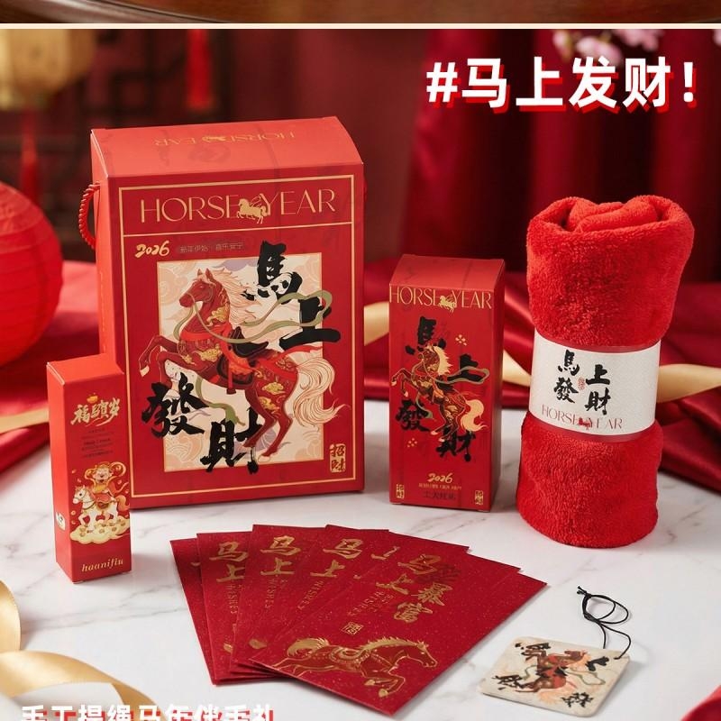 组合:马年红包*6张、马上发财毛巾、马上发财红茶8g*2袋、福马贺岁滋润护手霜35g