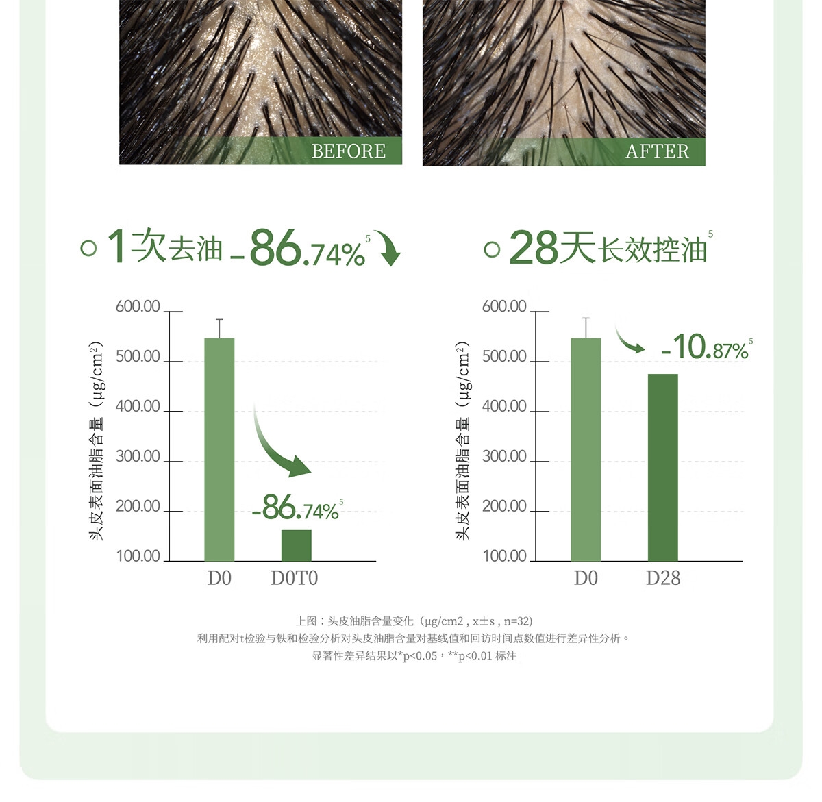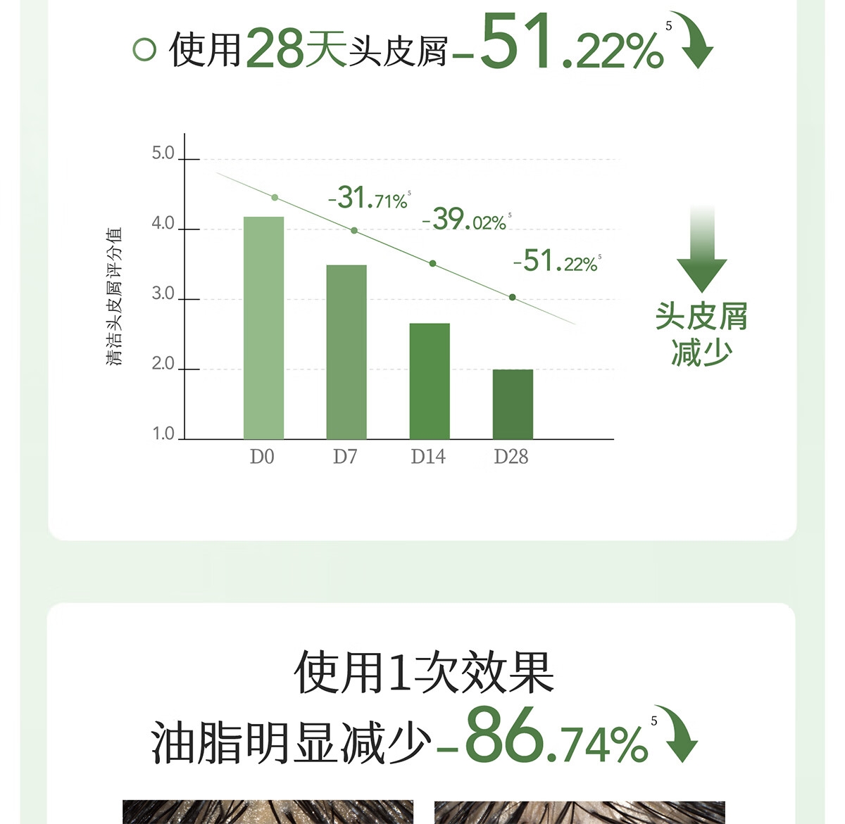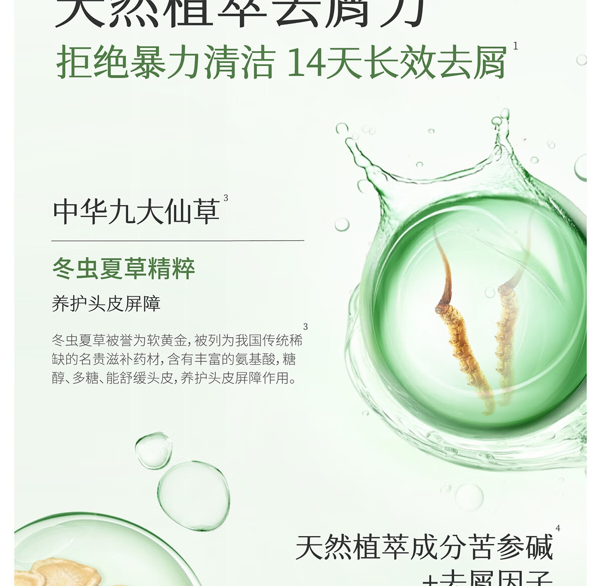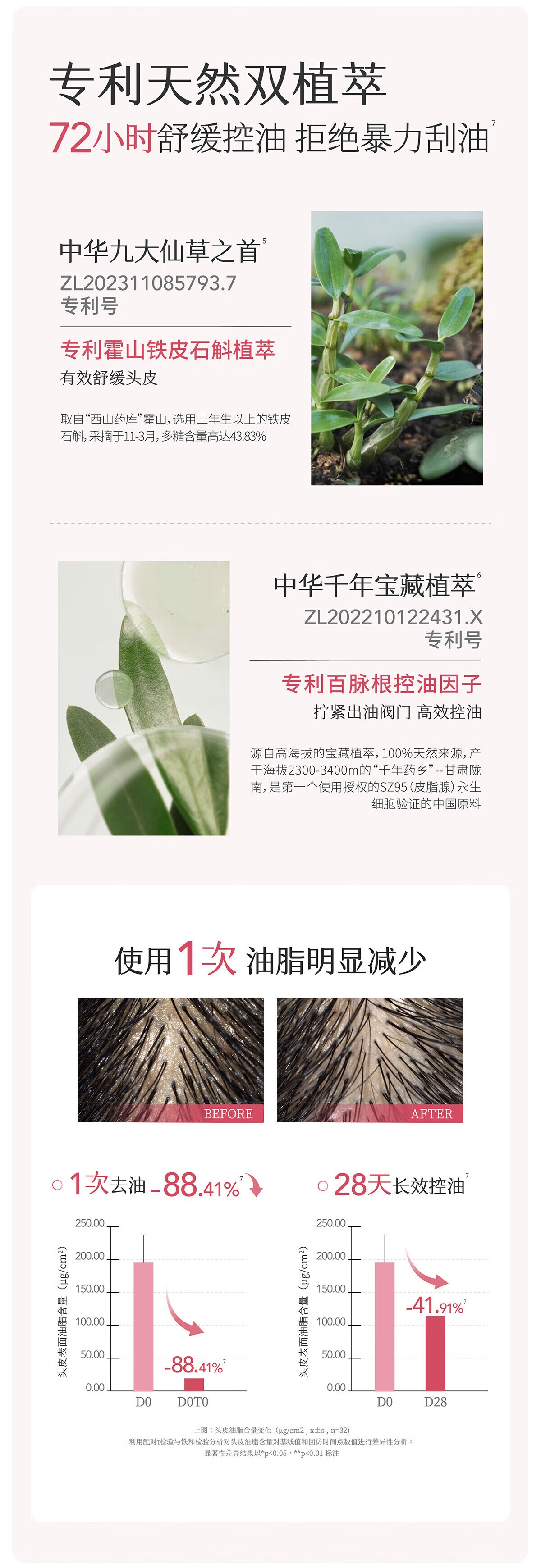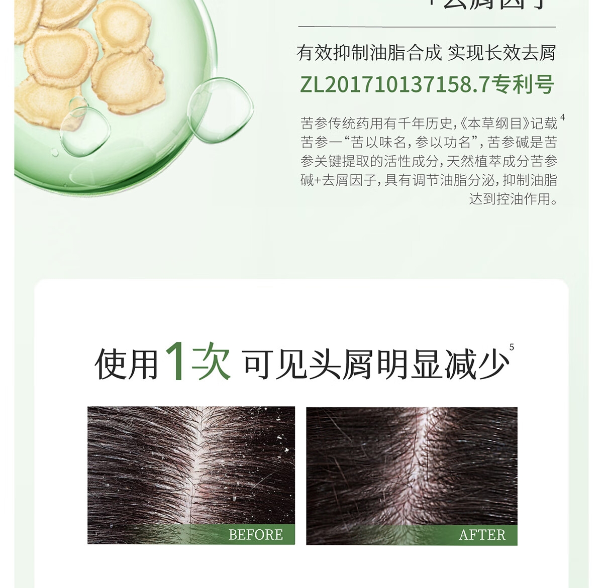 调节油脂分泌 强韧头皮屏障;有效抑制油脂合成 实现长效去屑;双重植萃,双重养护