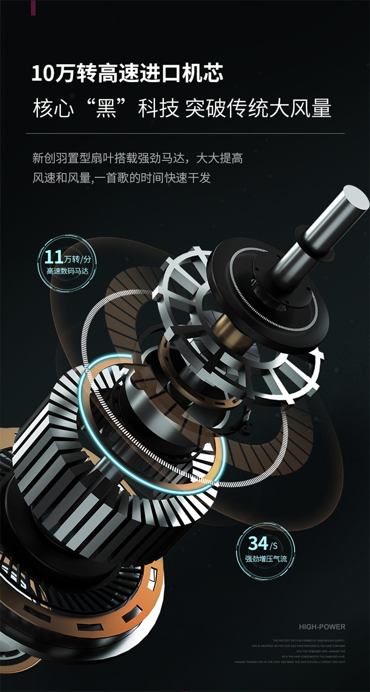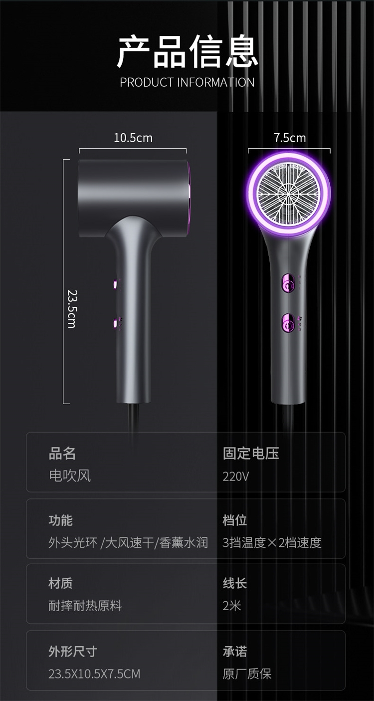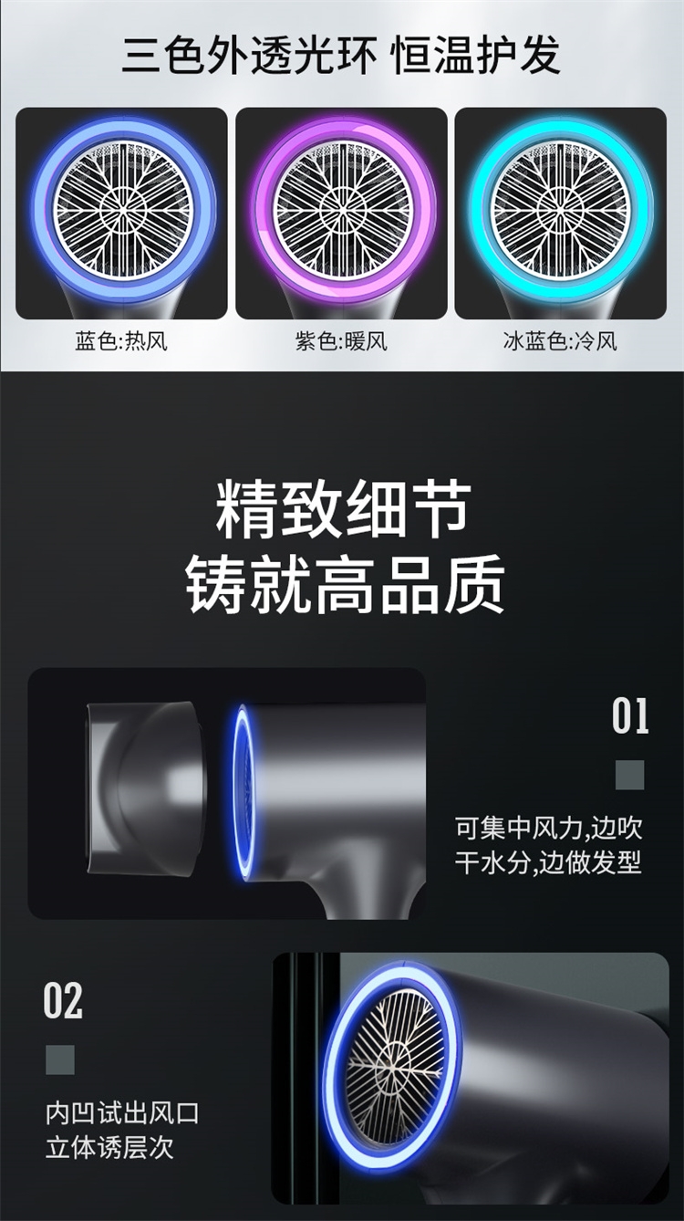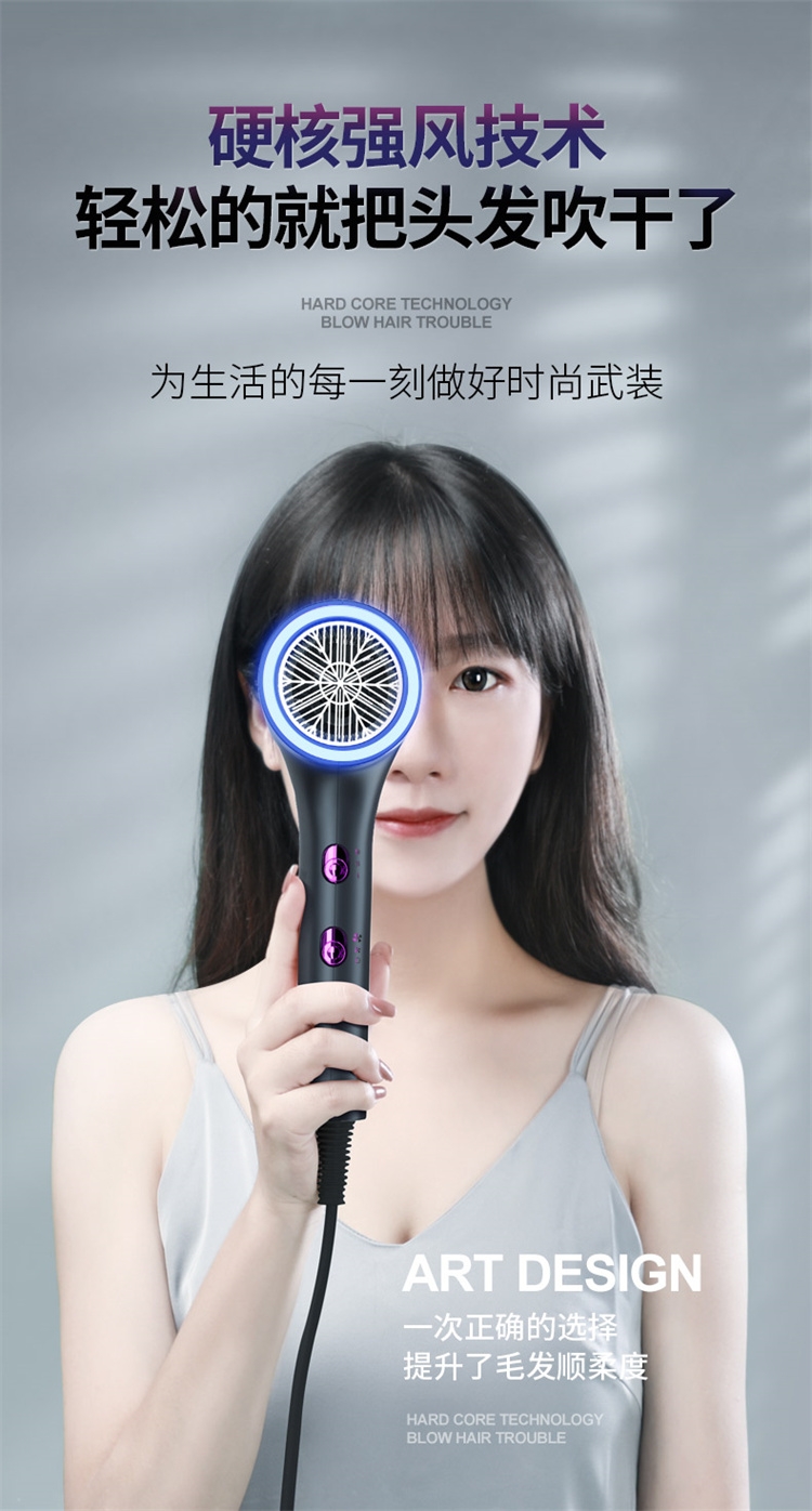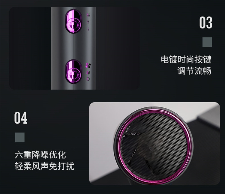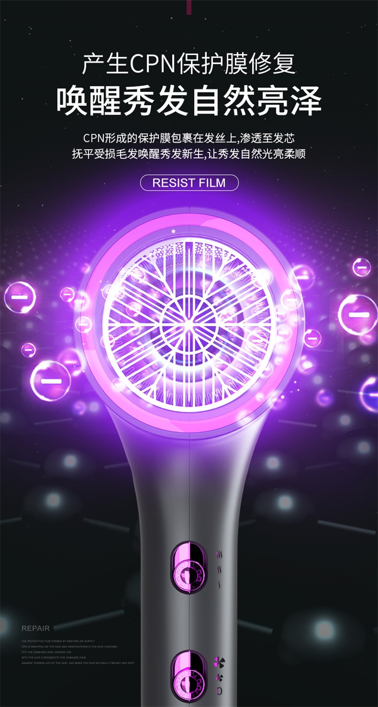 顺泽养护 柔顺盈亮秀发;低温润养 高速风干;飓风大风力大功率快速干发