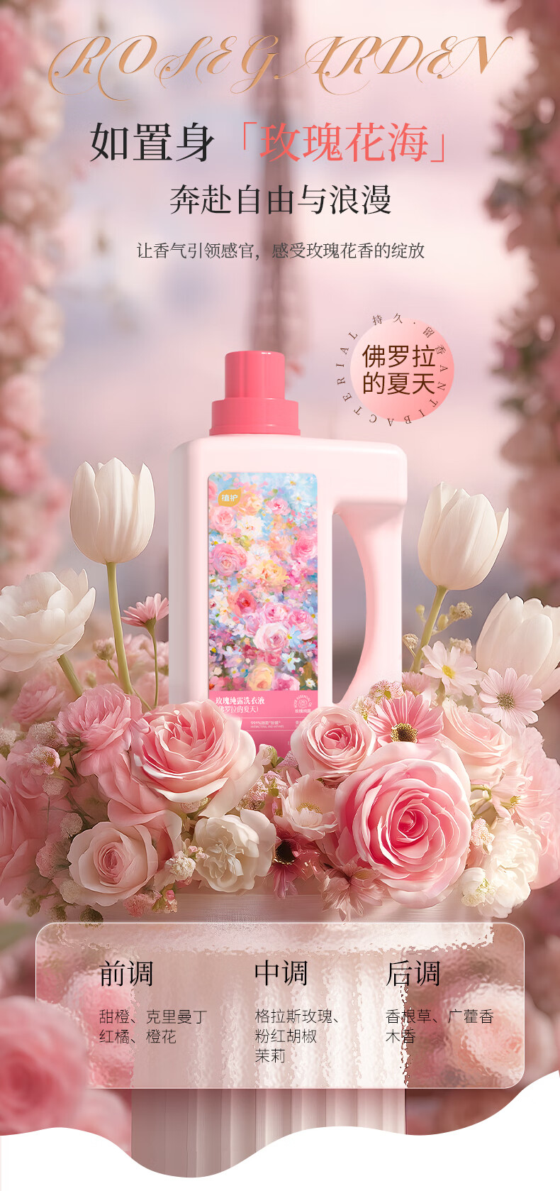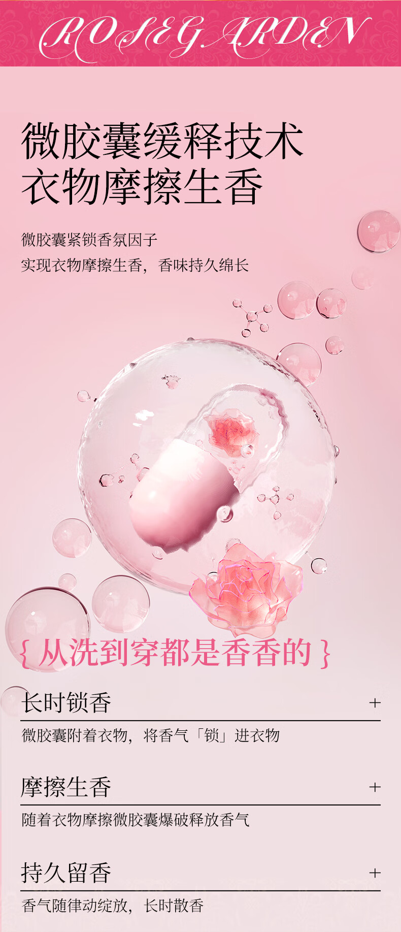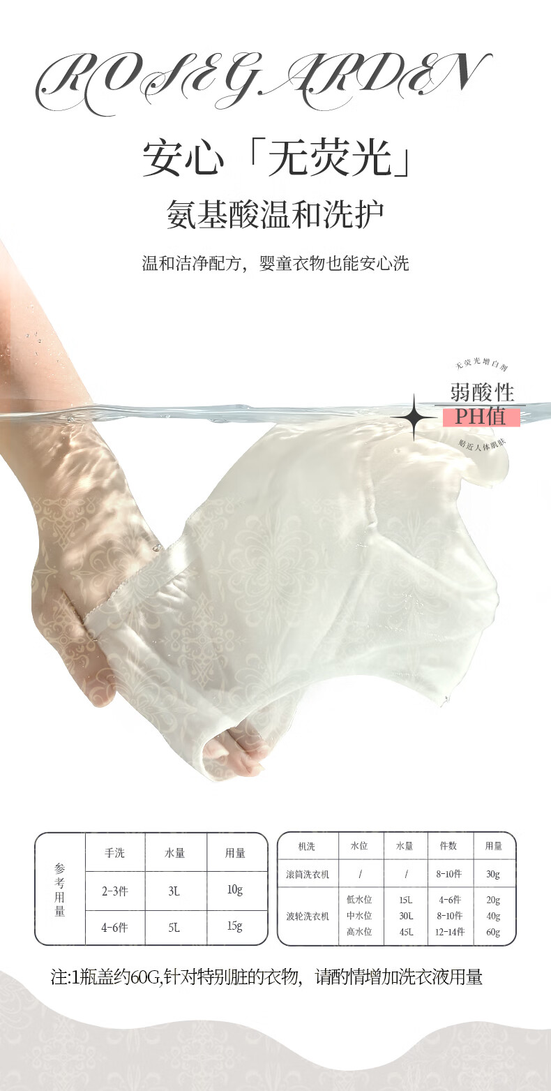 除菌除螨,去渍柔护,低泡易漂,省心洁净;氨基酸温和洁净配方,婴童衣物也能安心洗;添加蚕丝蛋白精华,呵护衣物洗后柔软;添加多重植物精油,植萃净味,防止衣物阴干产生异味;瑞士进口香氛,持久留香,散发优雅奢香