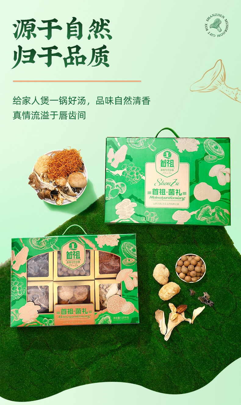 首祖 山珍干菌菇干货礼盒1010g