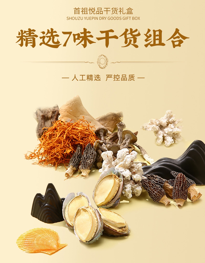 山珍海产海鲜菌菇干;鲍鱼羊肚菌礼盒;节过年货节送礼品长辈父母