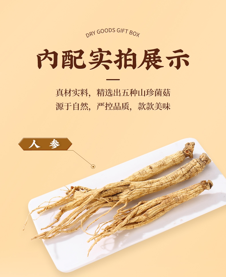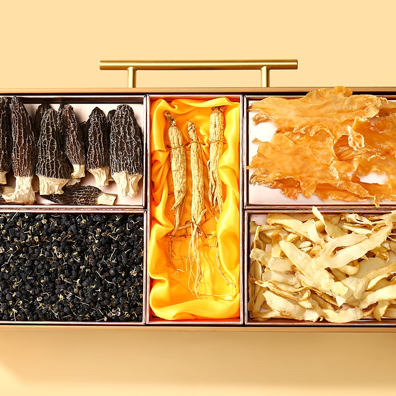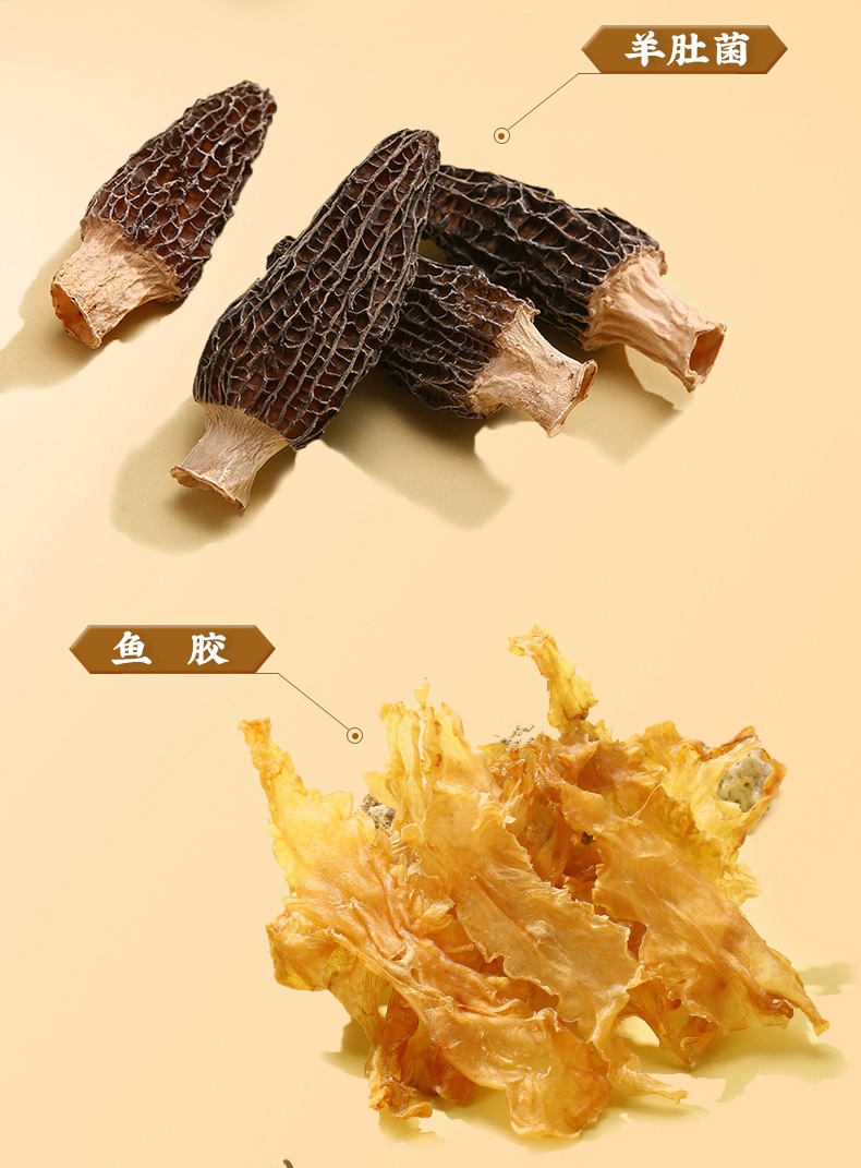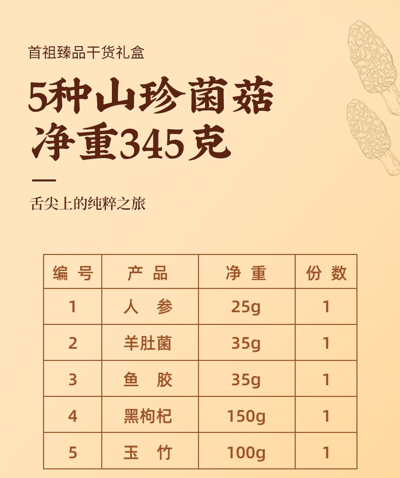 内配:人参25g 羊肚菌35g 鱼胶35g 黑枸杞150g 玉竹100g