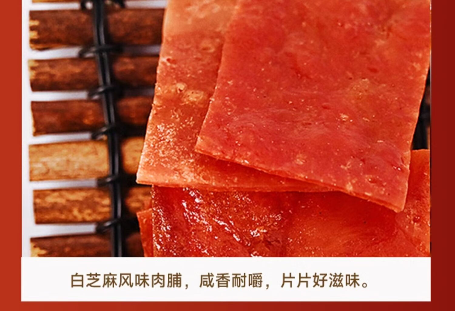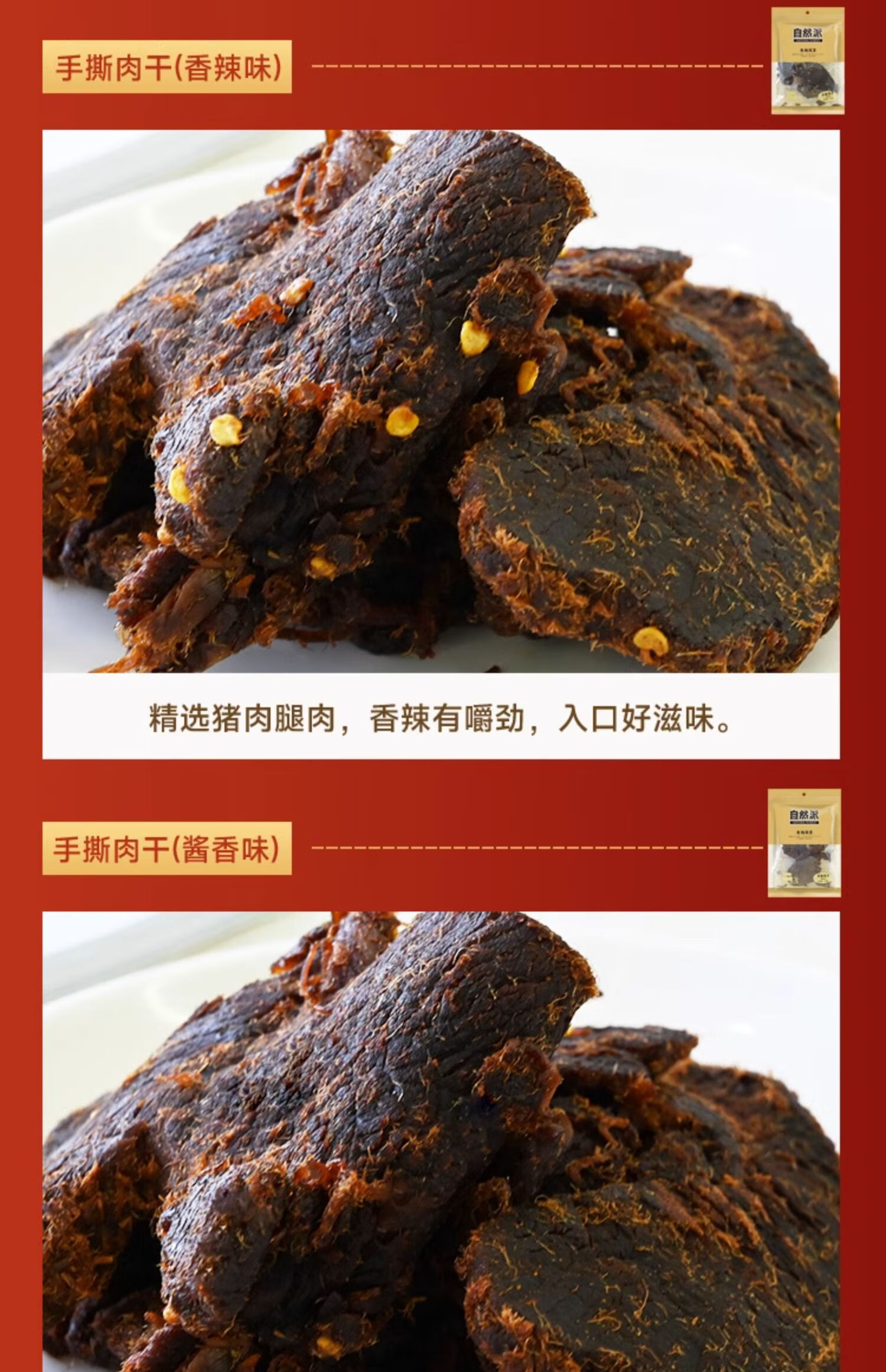 肉脯色泽饱满,肉香浓郁;8款美味品种多样 送礼自用两相宜;细品果干口感,酸甜可口