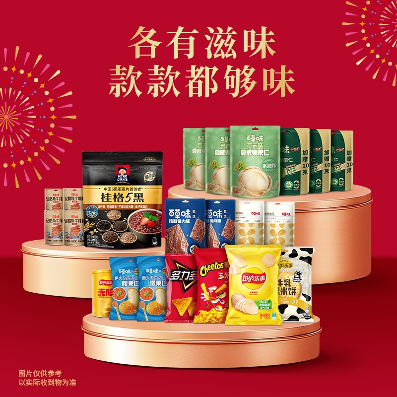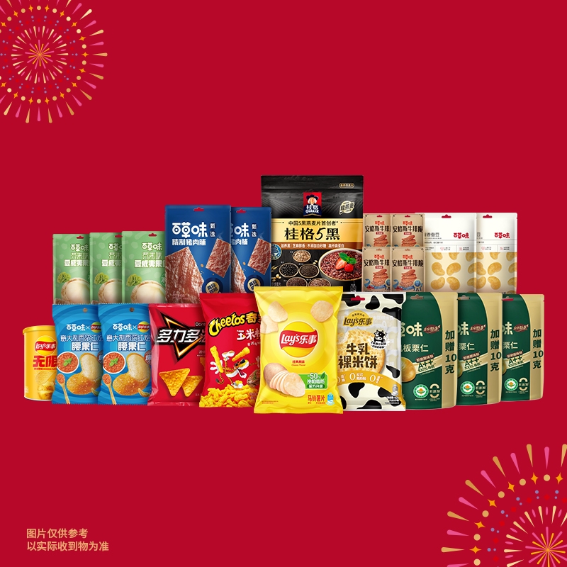 配置清单:1 X 乐事经典原味40克 1 X 乐事无限醇香原味罐装40克 1 X 乐事牛乳裸米饼 60g 1 X 奇多日式牛排味50克 1 X 多力多滋劲浓芝士味68克 1 X 桂格5黑混合即食麦片 518克 4 X 百草味安格斯牛排脆热辣味27克 2 X 百草味精制猪肉脯80克 2 X 百草味蟹香蚕豆70克(经典) 3 X 百草味夏威夷果仁芥末味65克 3 X 百草味本味甄果有机板栗仁80克 2 X 百草味乐事联名款腰果仁意大利香浓红烩味54克 赠品:定制咖啡杯
