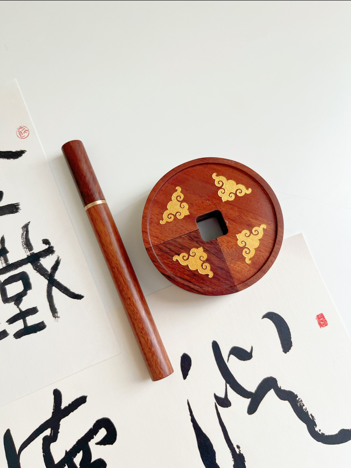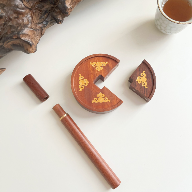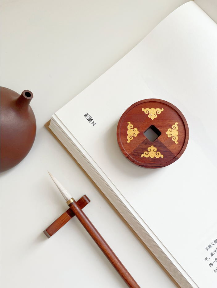 配置清单:铜钱镇纸印规香具*1、布币印章*1、酸枝短香管*1