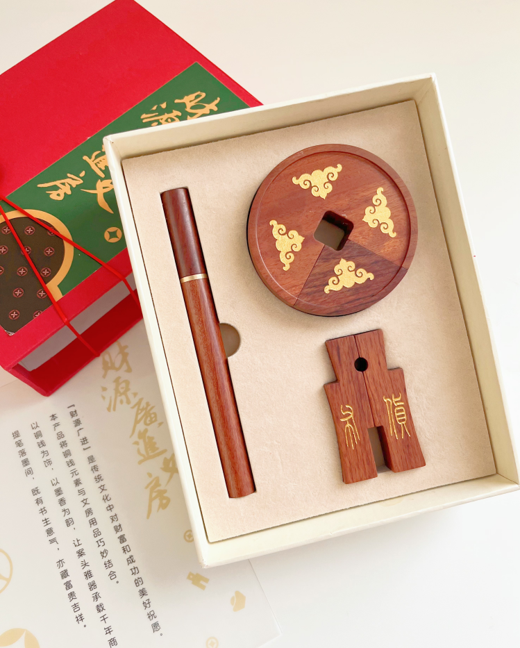 新年春节伴手礼,财源广进寓意好;名木材质,创新设计;可定制logo