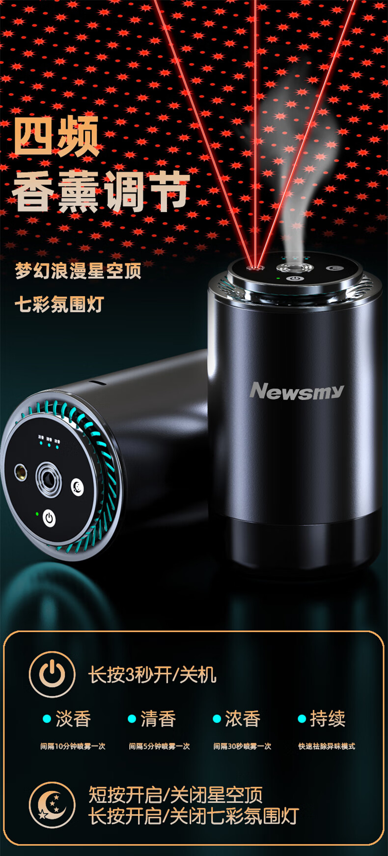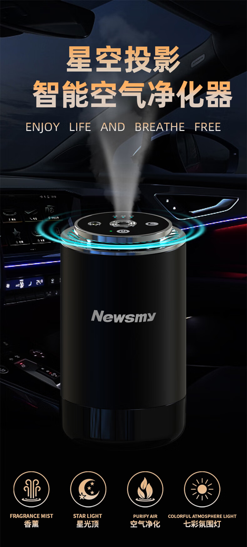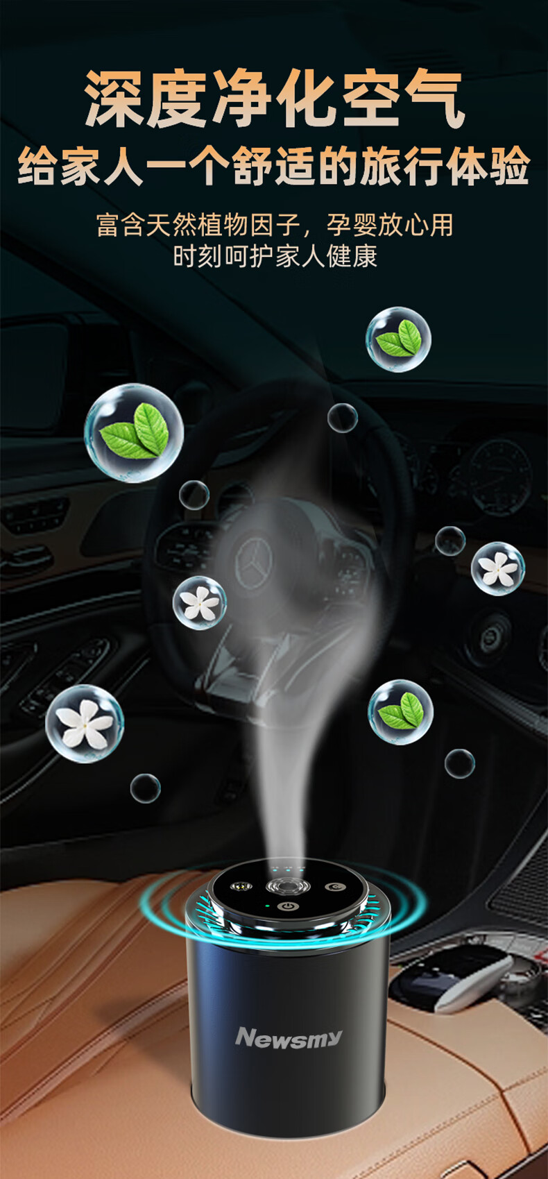 纽曼 车载香薰空气净化器香氛车内除异F6