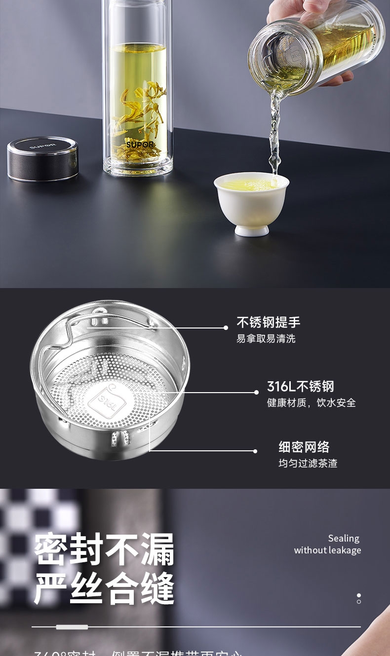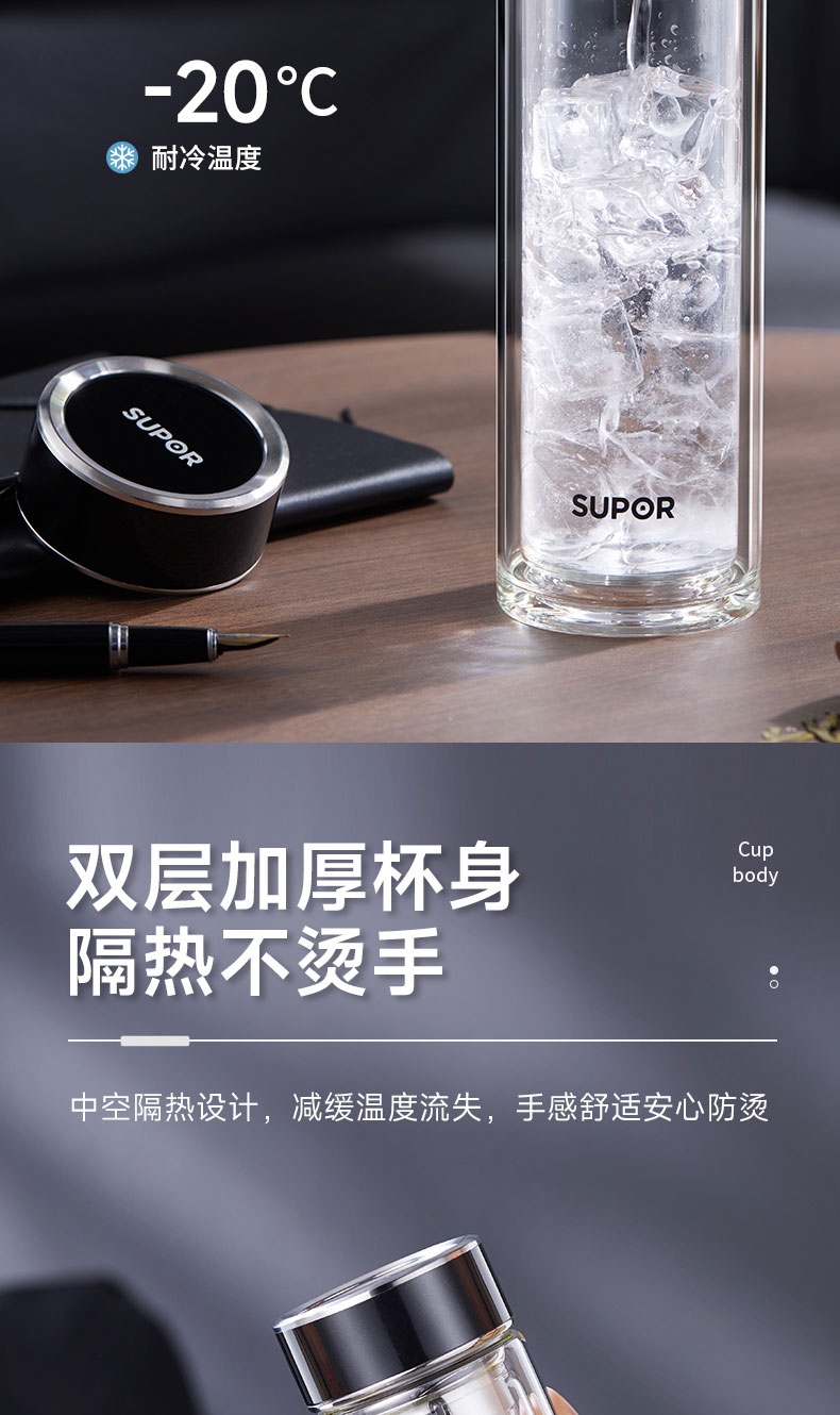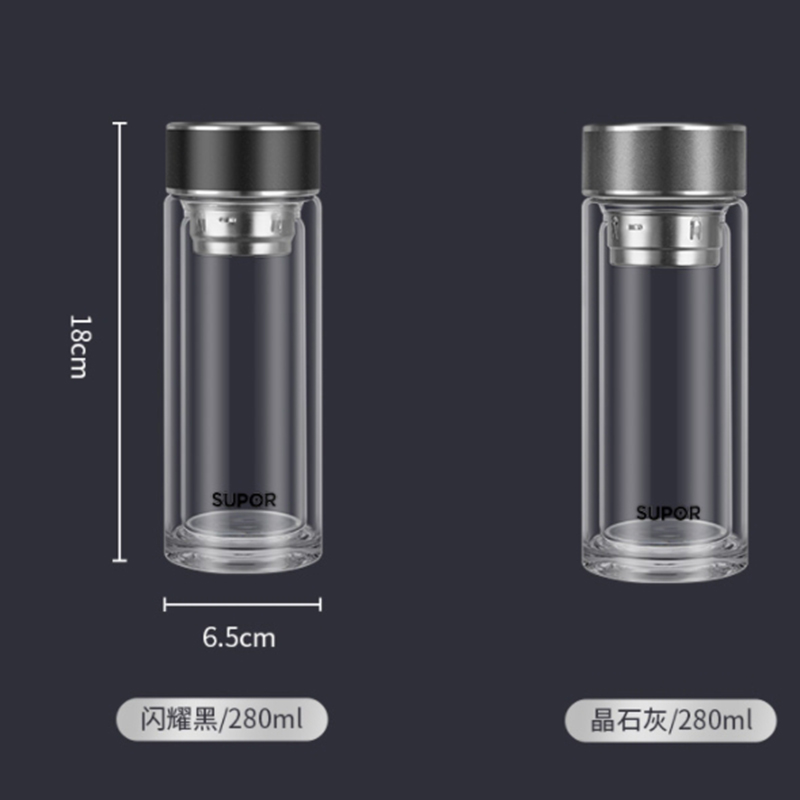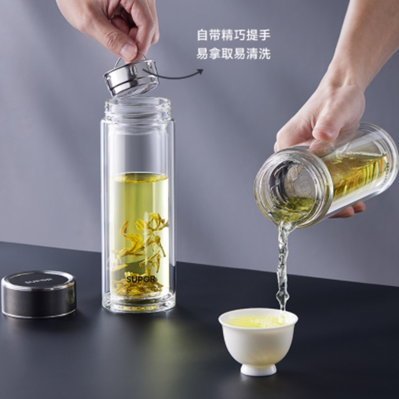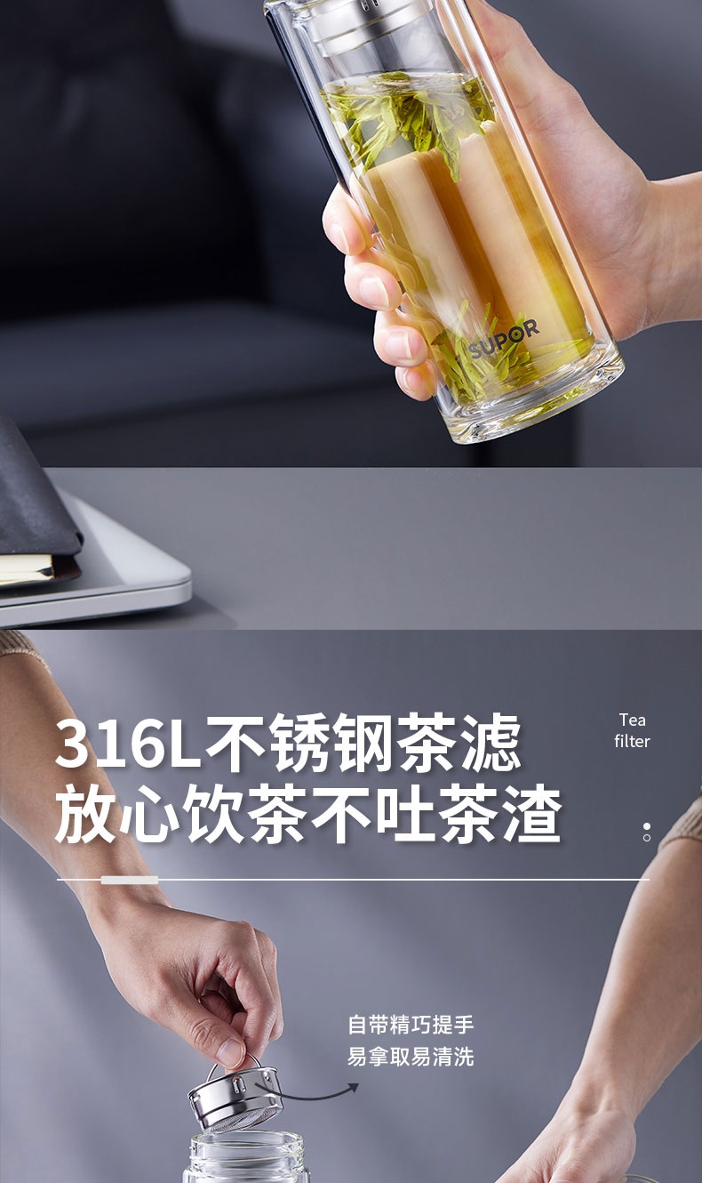 苏泊尔 双层玻璃杯高硼硅茶水分离泡茶杯KCG28AY10