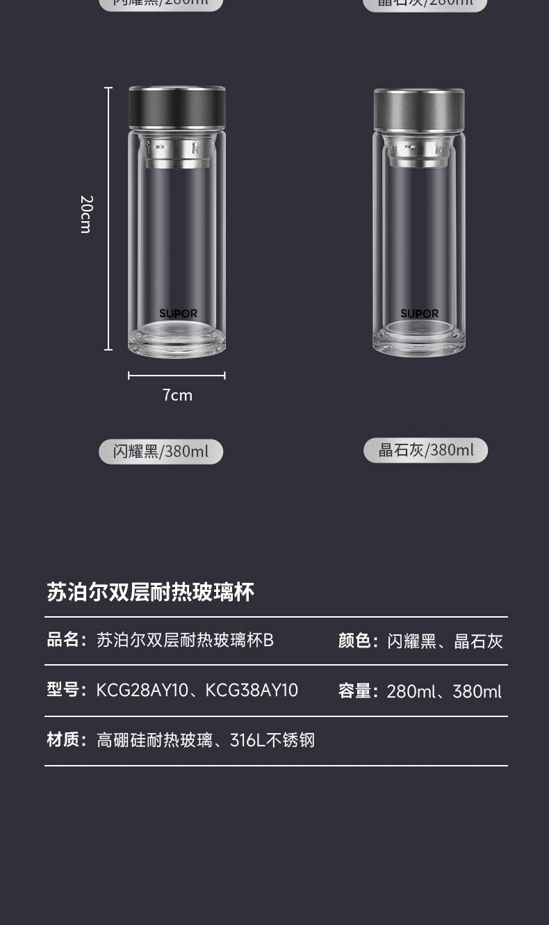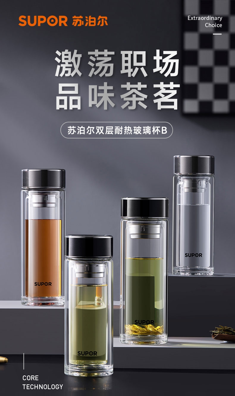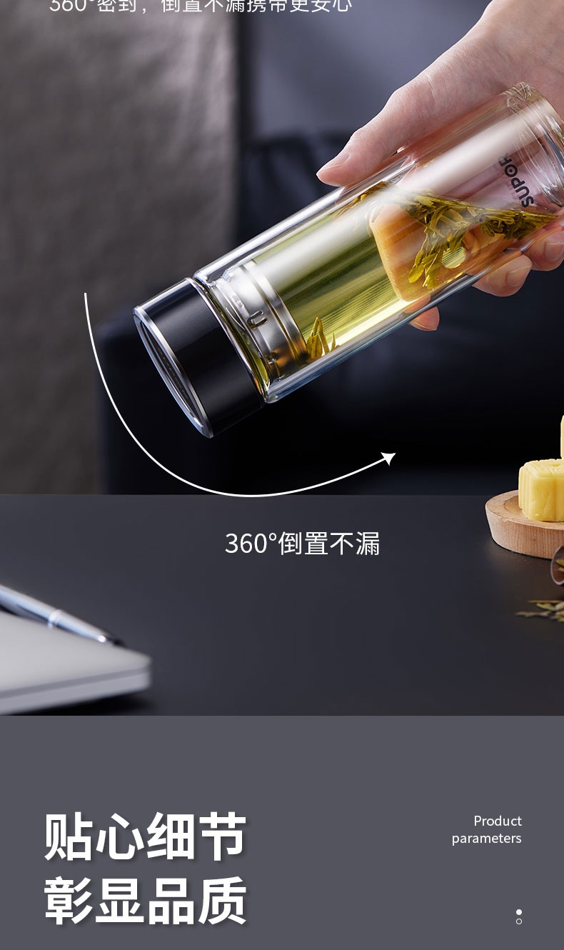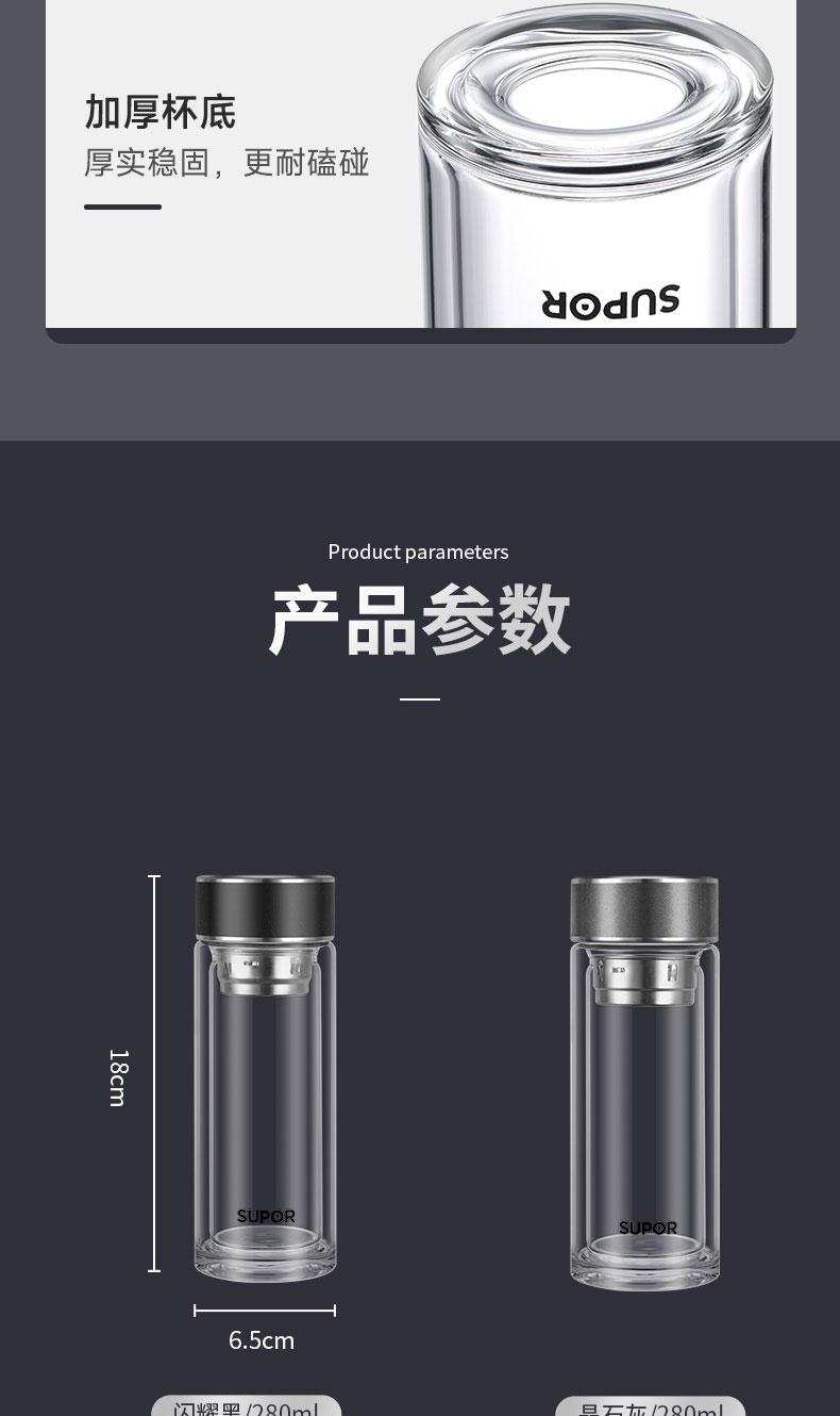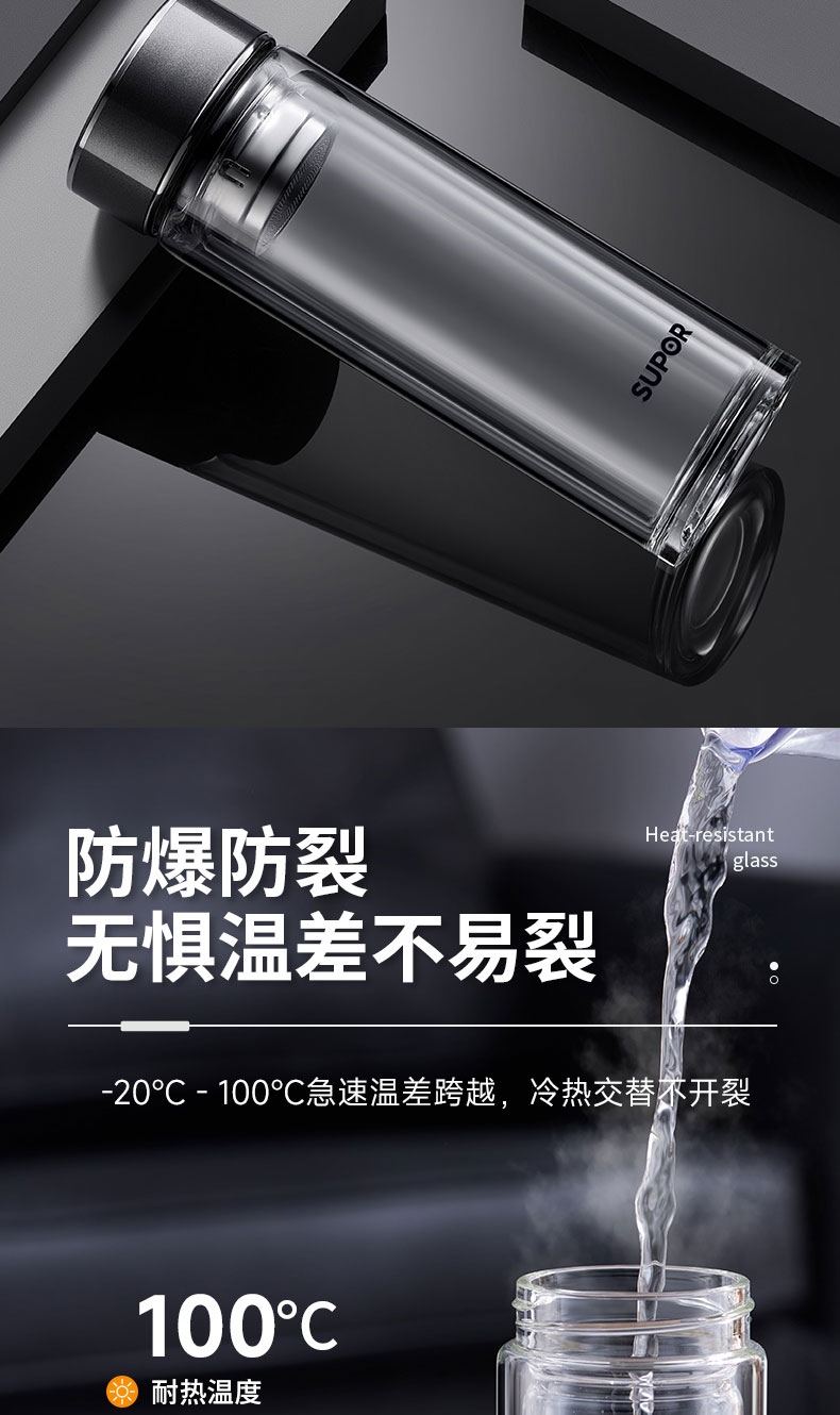 苏泊尔 双层玻璃杯高硼硅茶水分离泡茶杯KCG28AY10