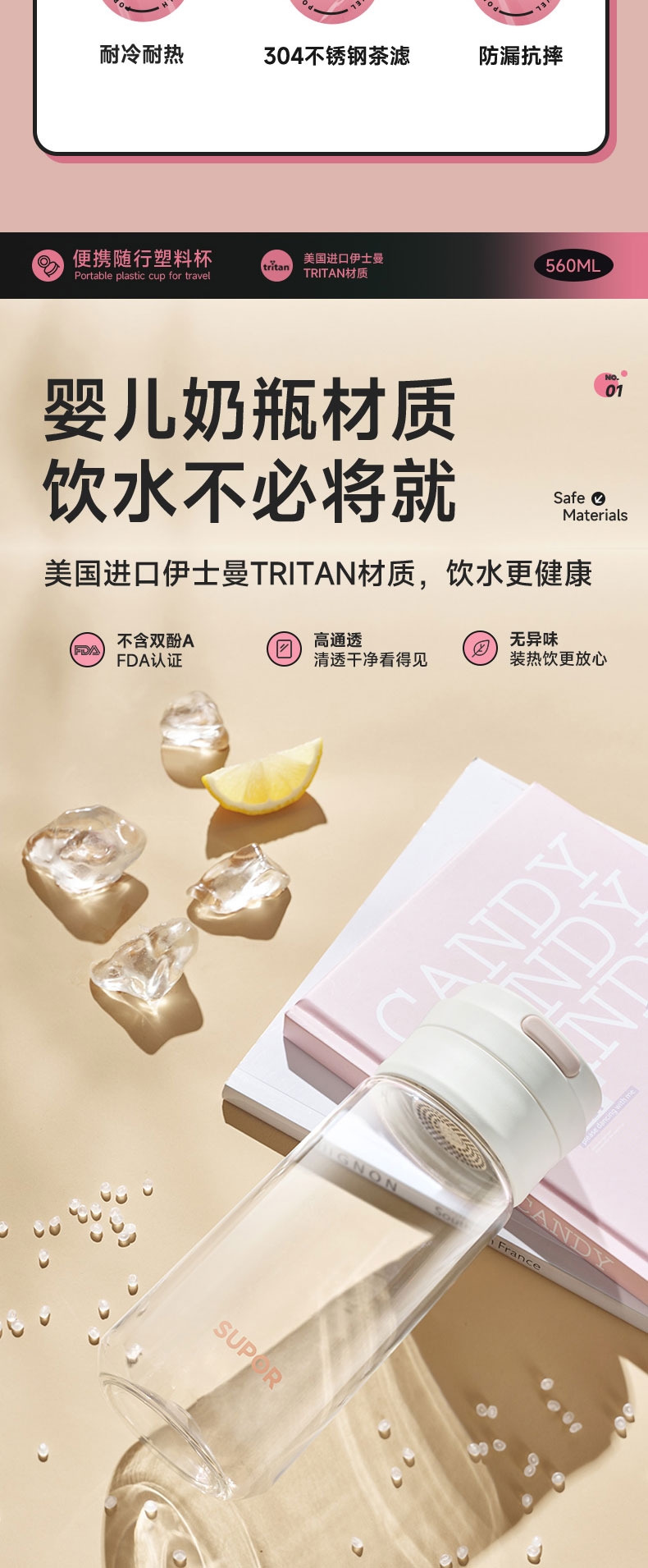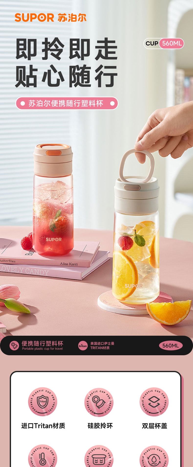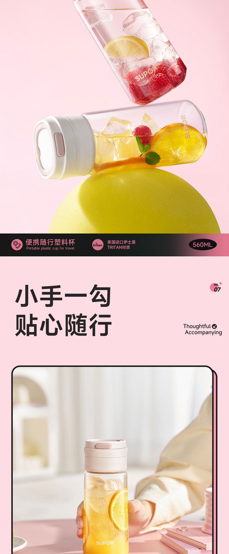 苏泊尔 便携随行塑料杯tritan水杯KCP56LW10