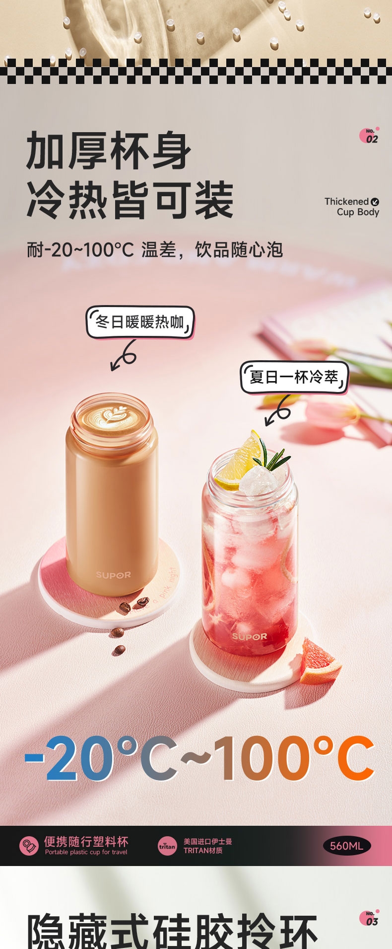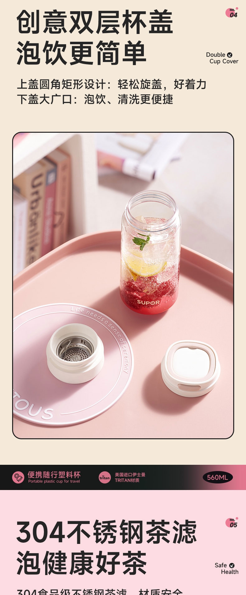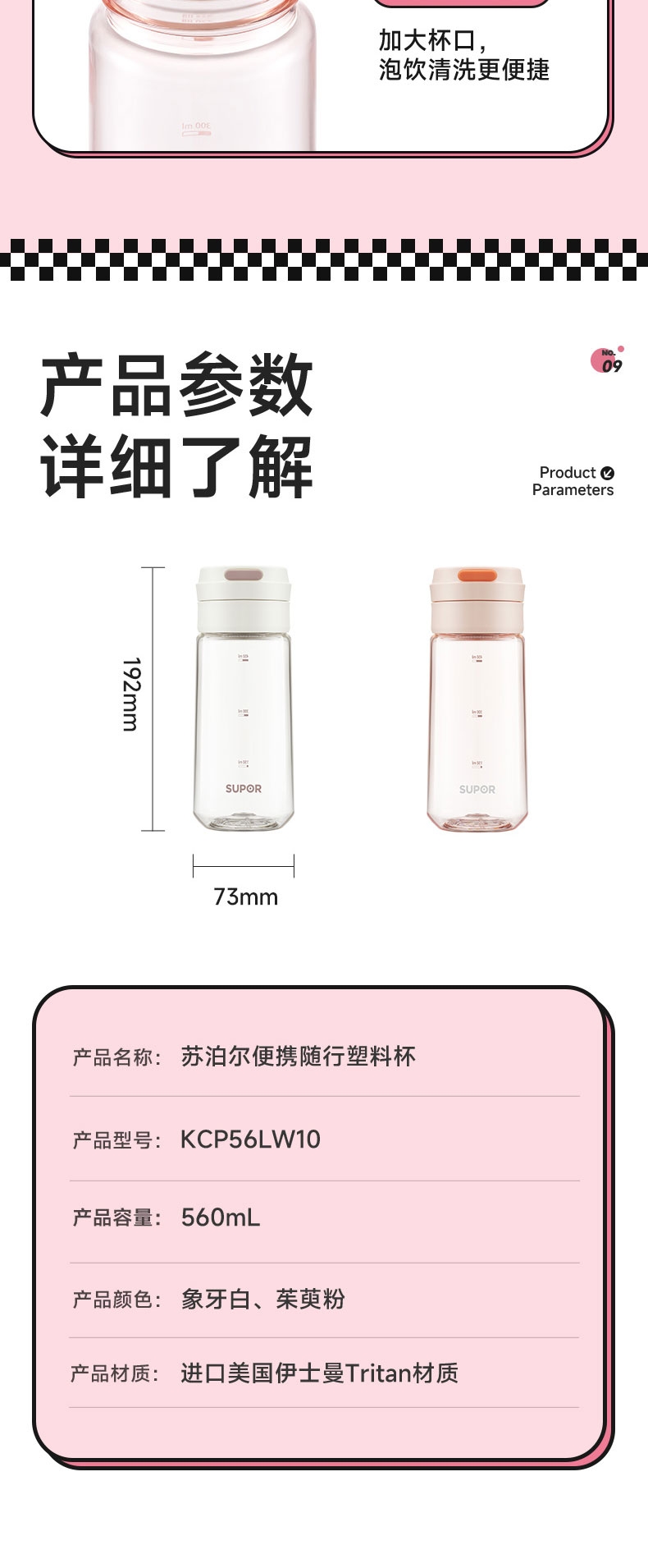 苏泊尔 便携随行塑料杯tritan水杯KCP56LW10
