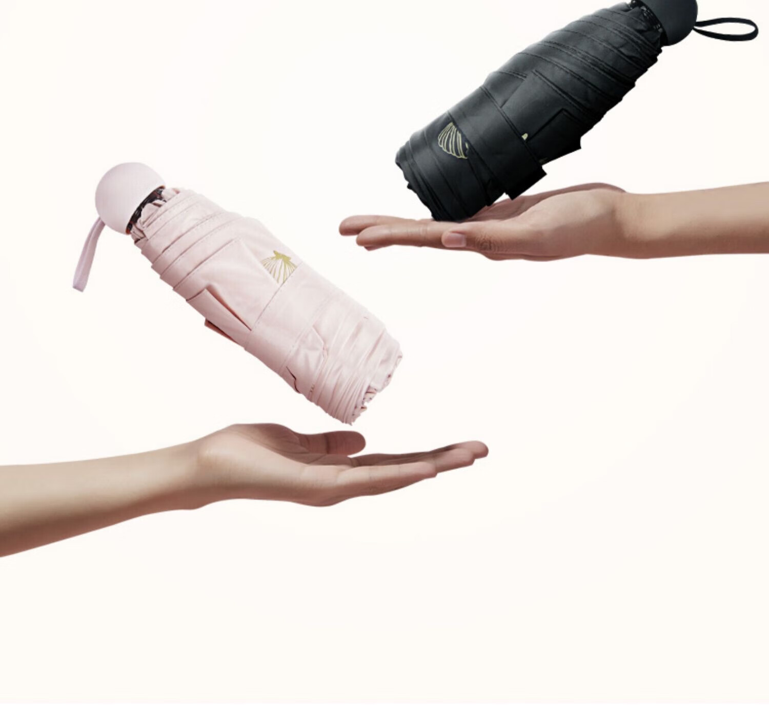 蔲玉纺黑胶;五折晴雨伞;pu小球手柄