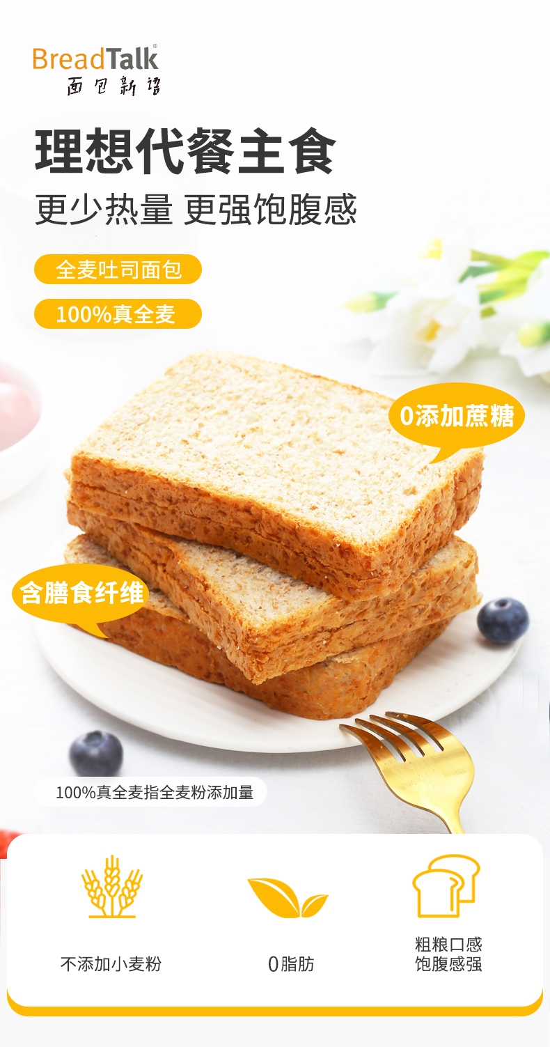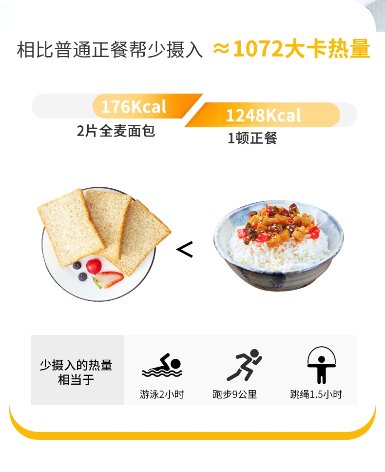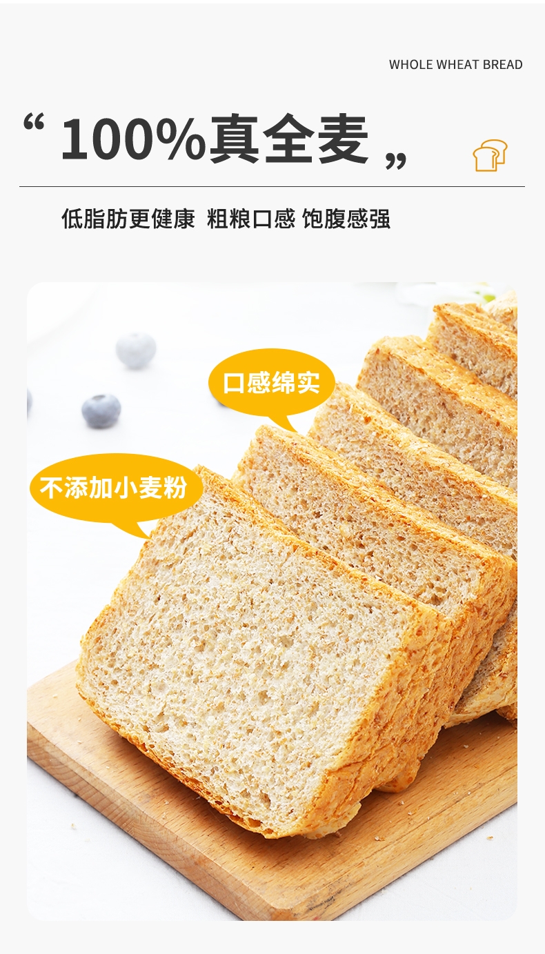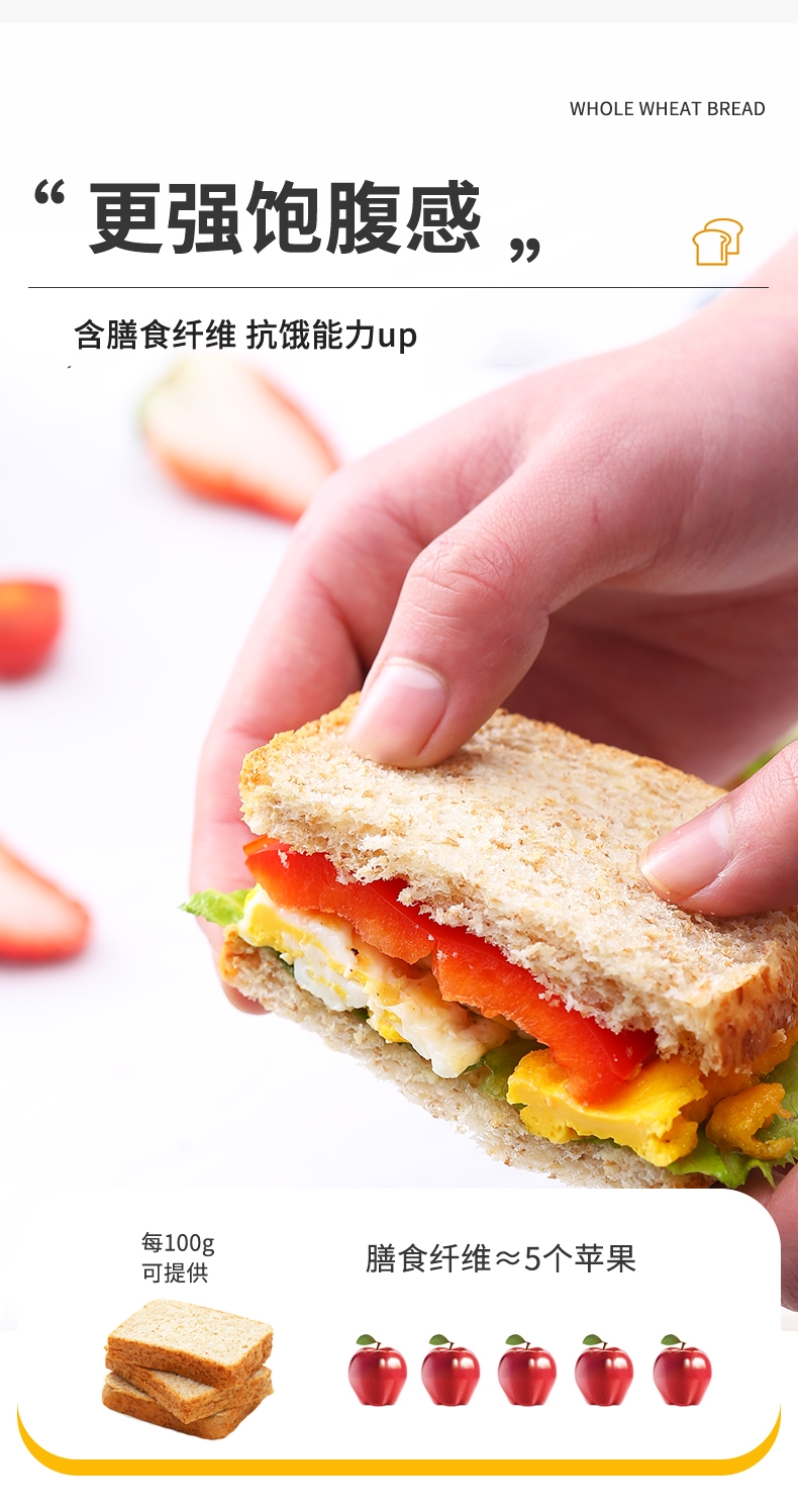 理想代餐主食;更少热量 更强饱腹感;100%真全麦