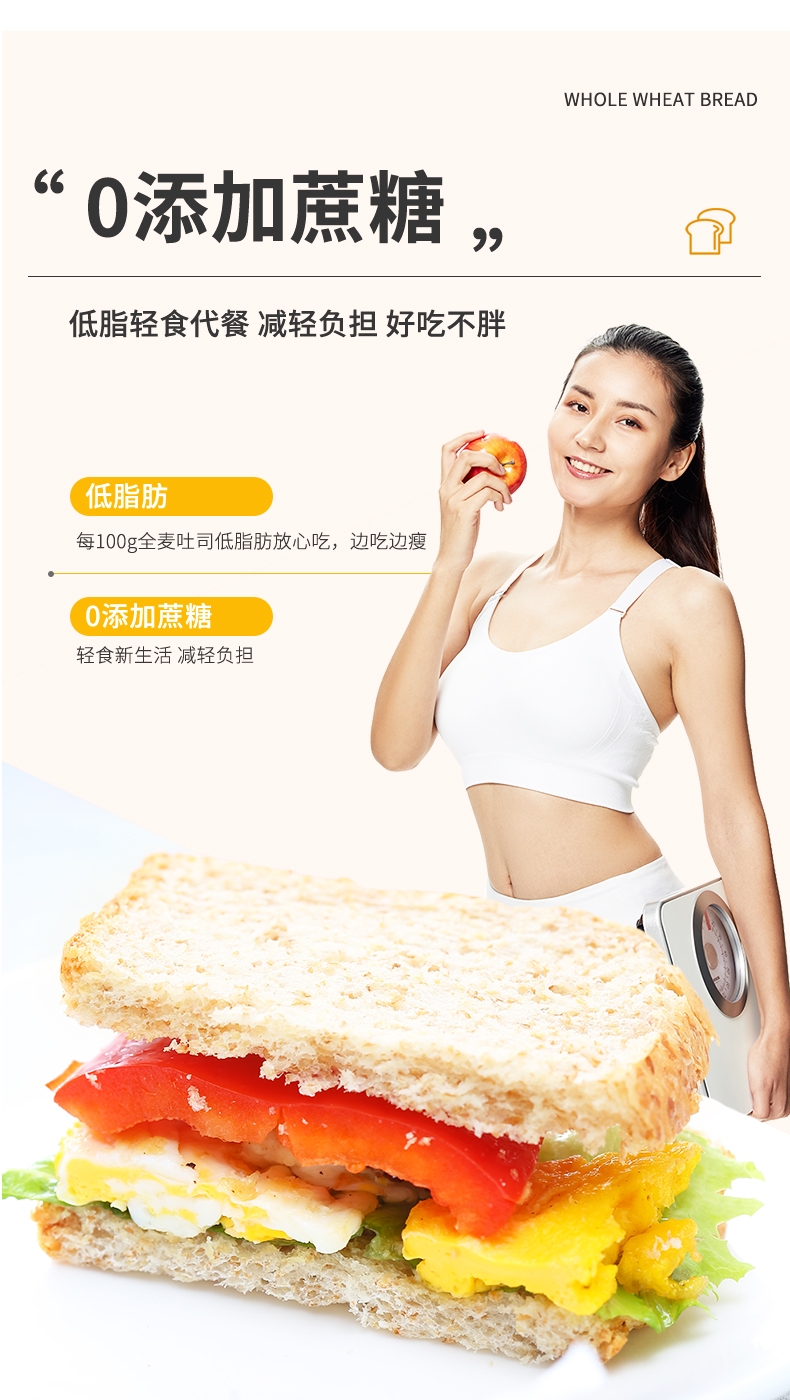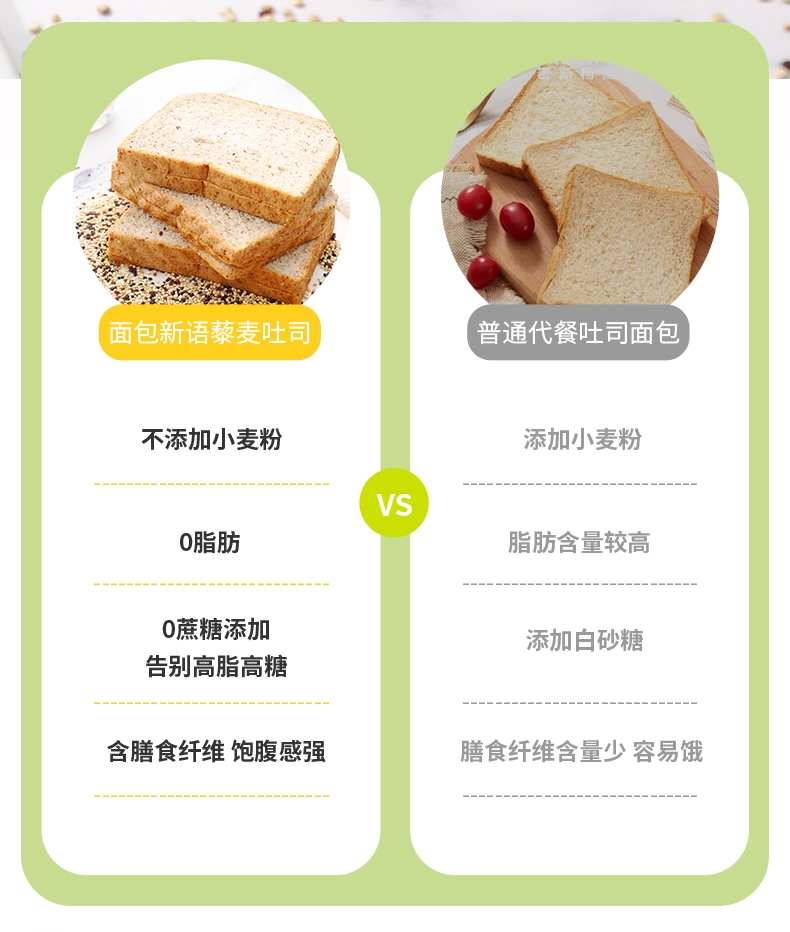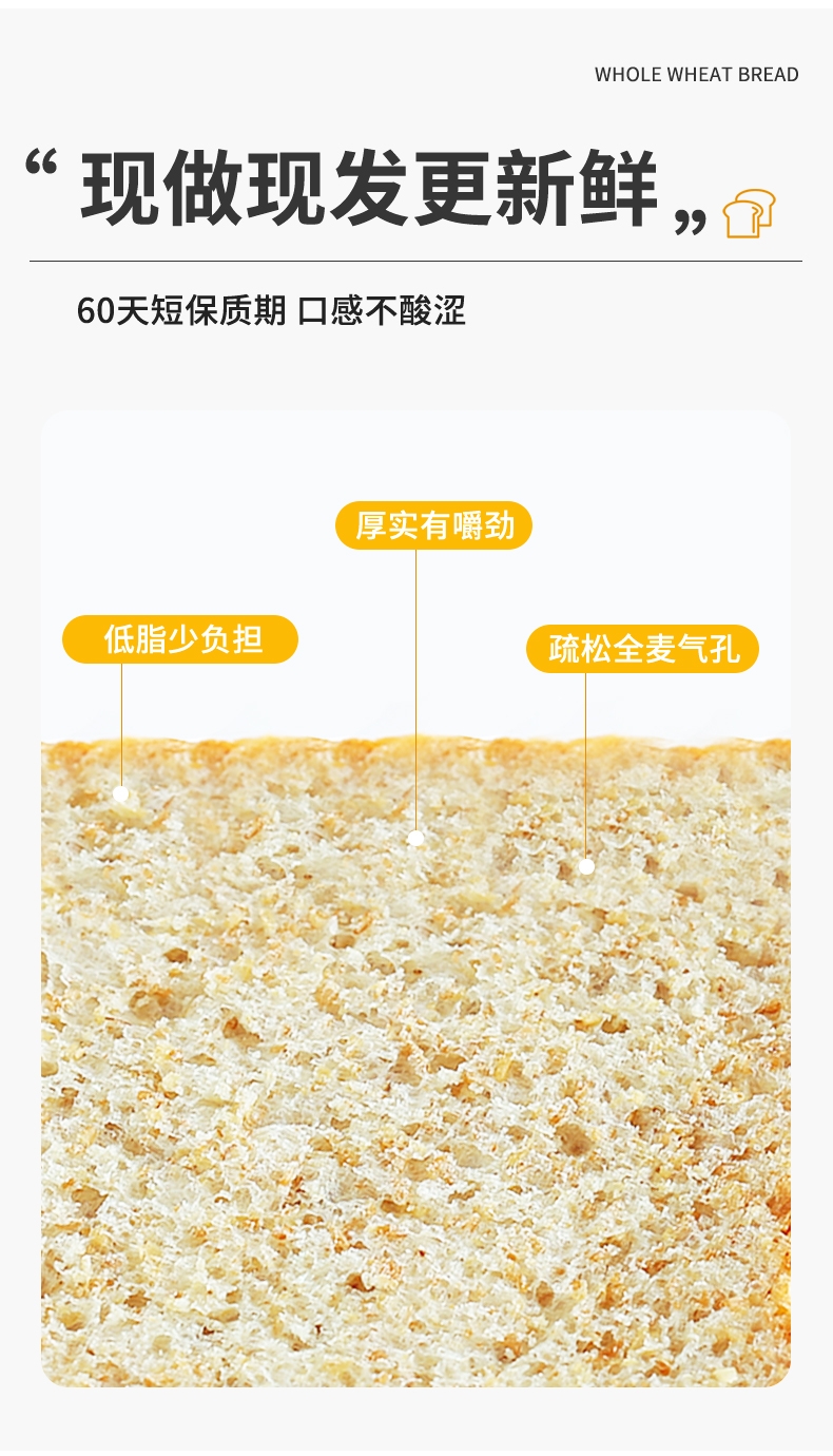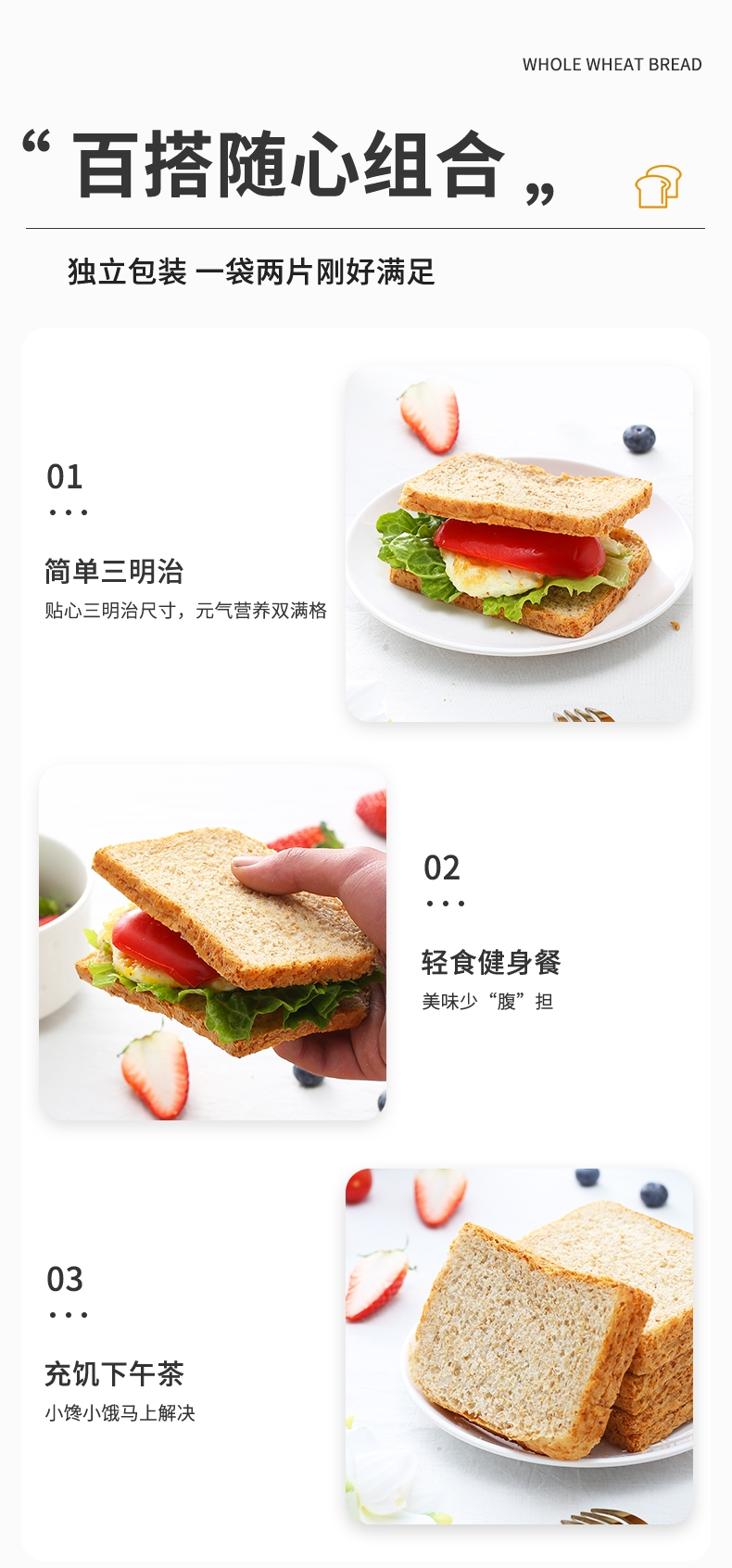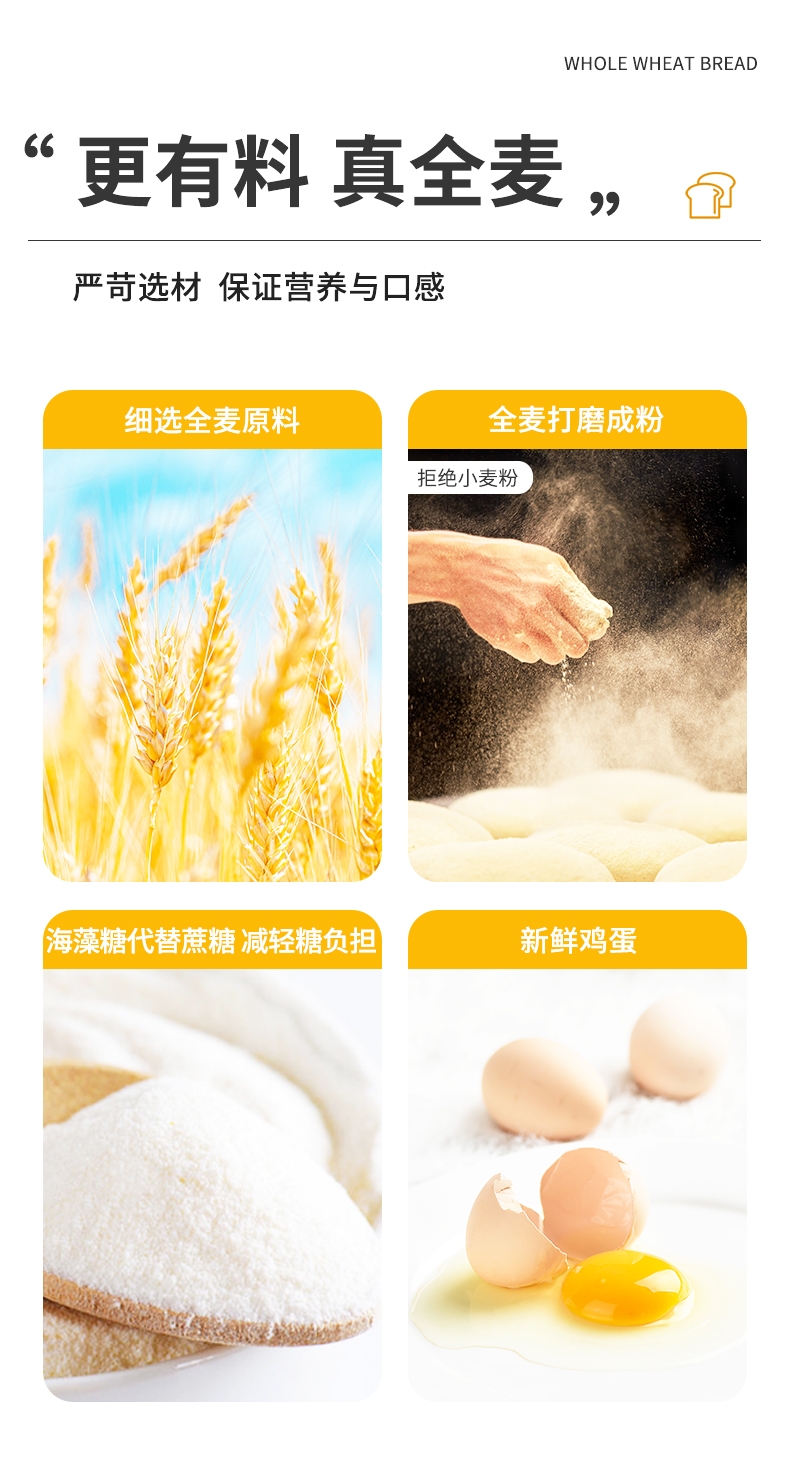理想代餐主食;更少热量 更强饱腹感;100%真全麦
