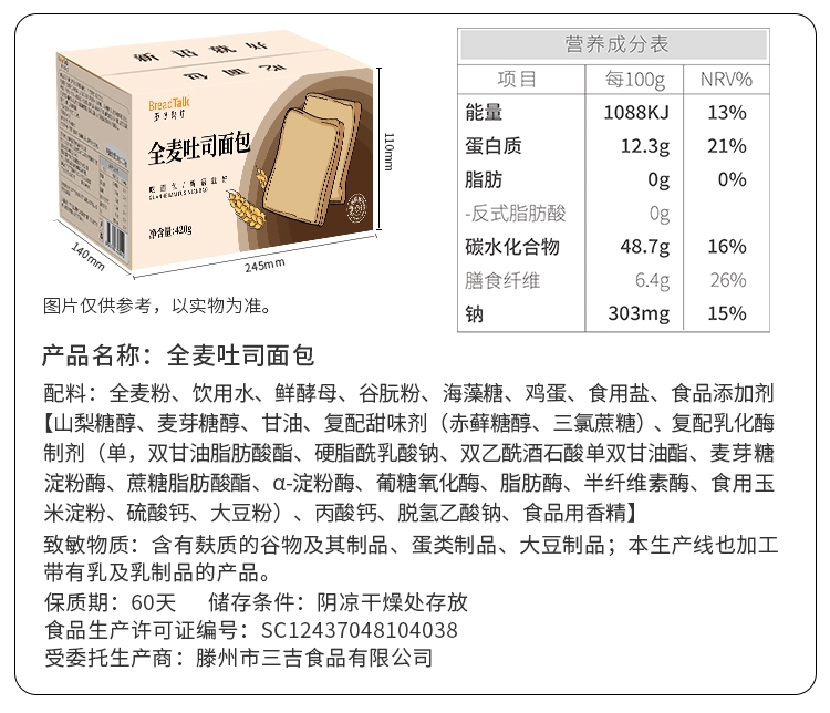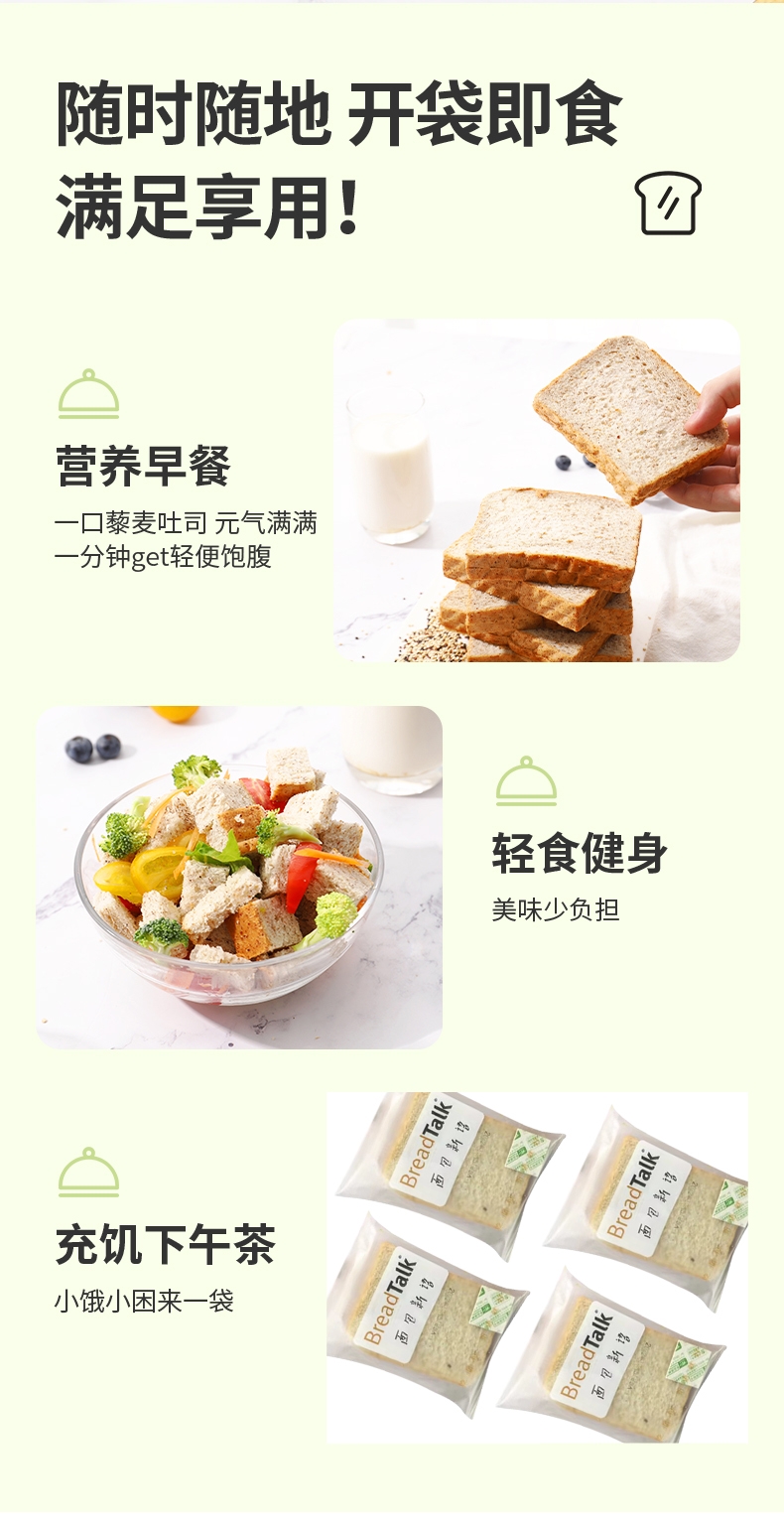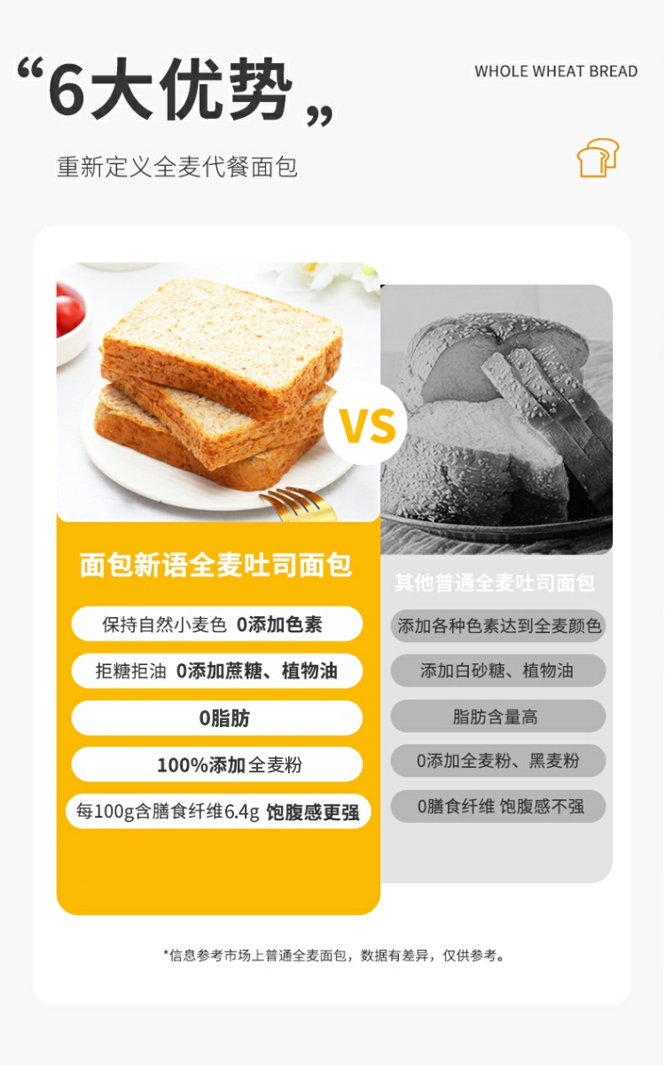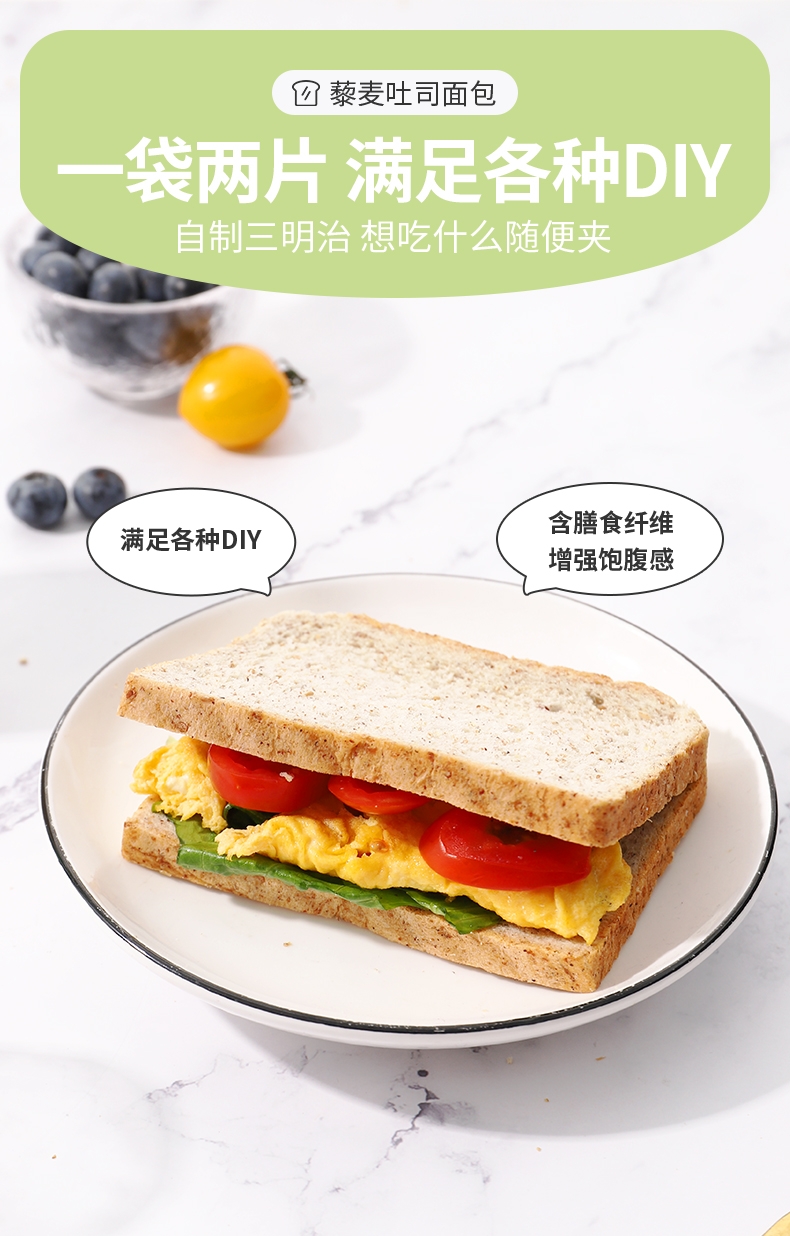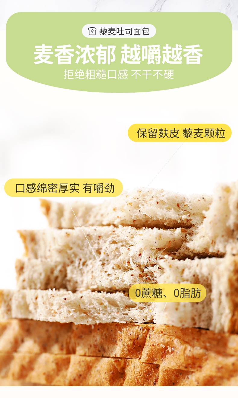 理想代餐主食;更少热量 更强饱腹感;100%真全麦