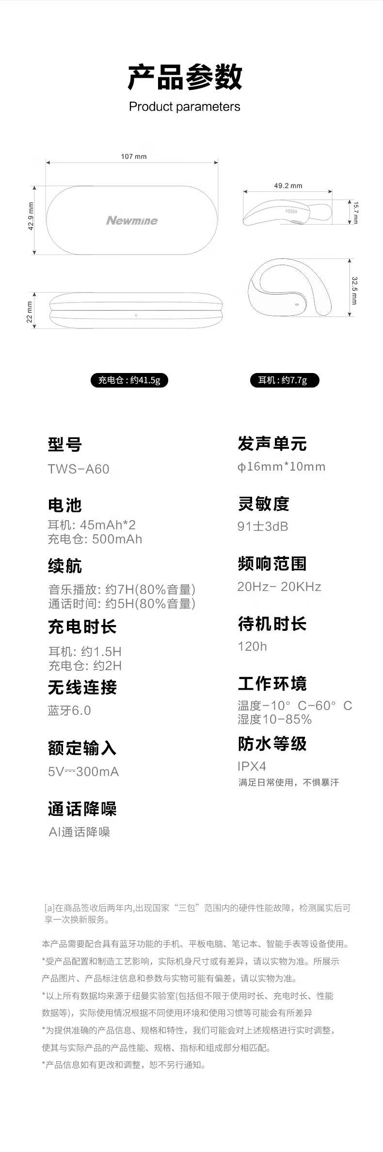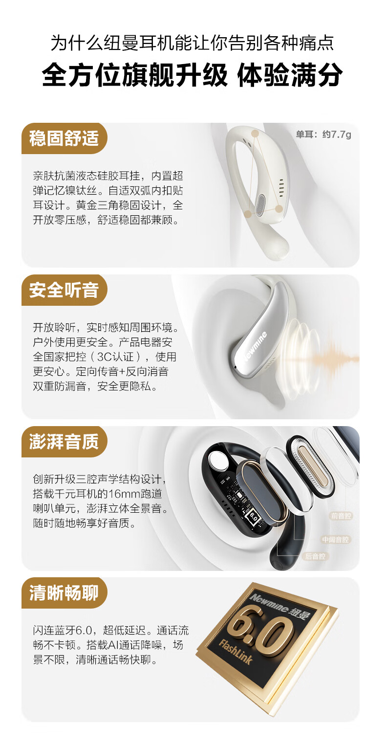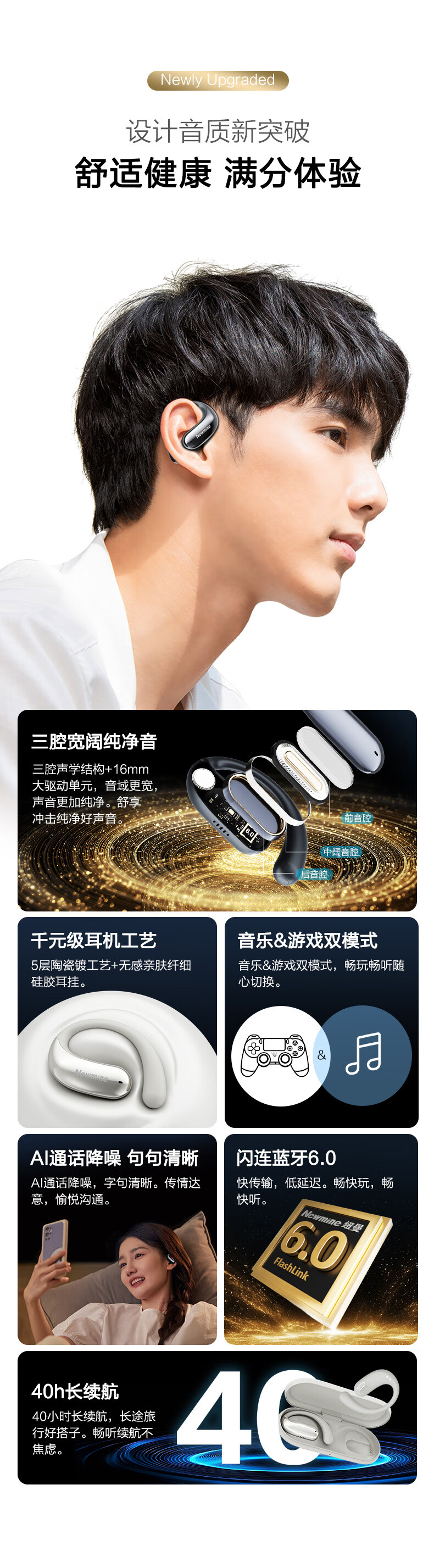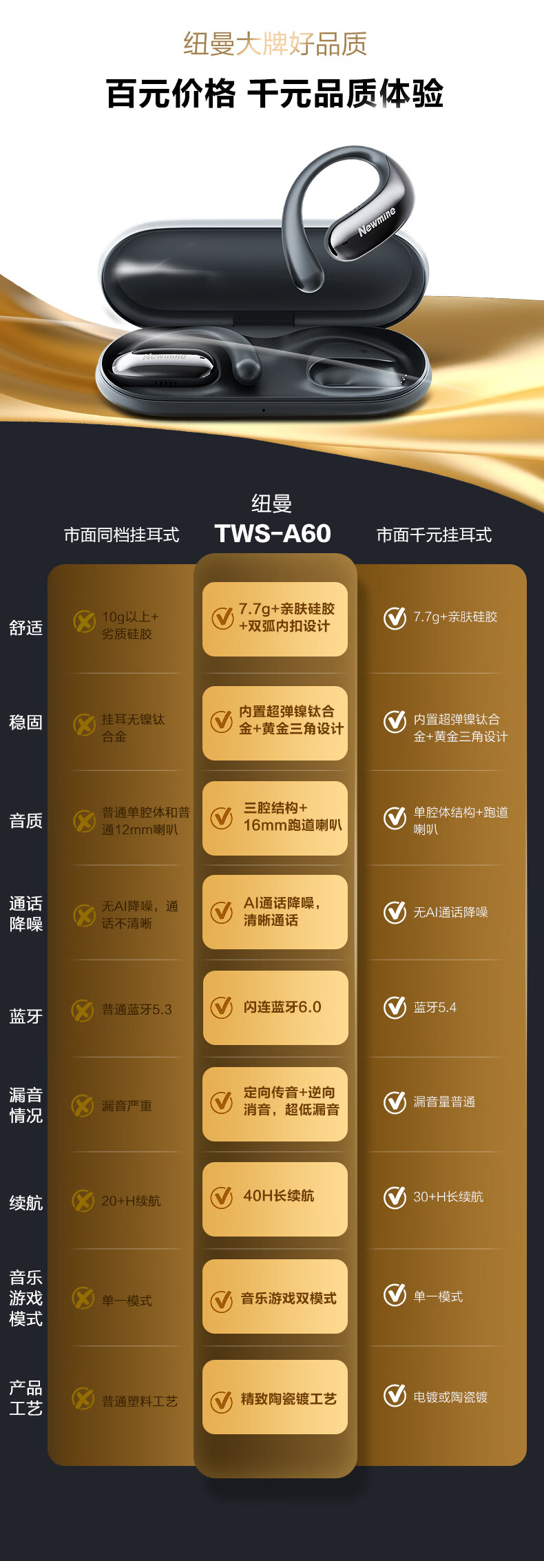 纽曼 骨传导概念蓝牙耳机挂耳式TWS-A60