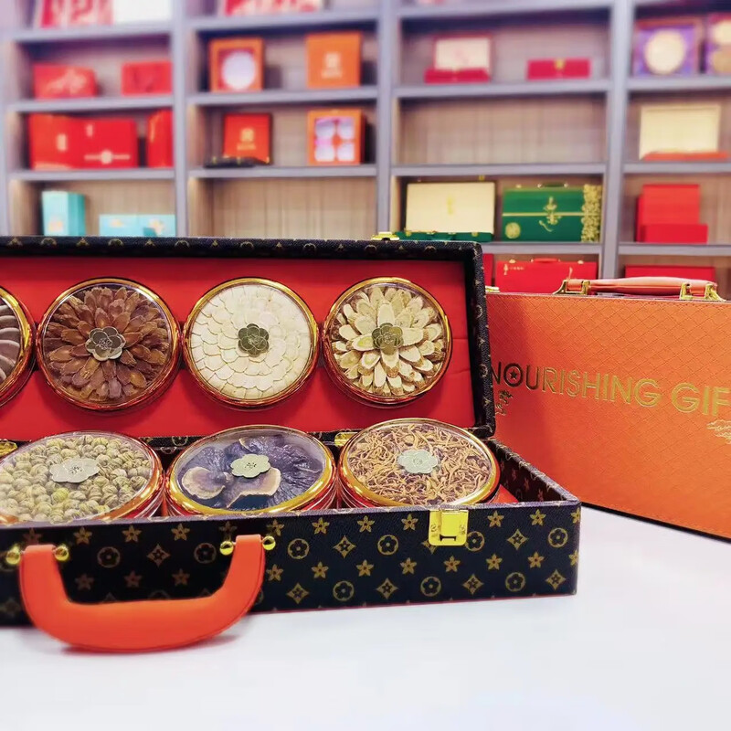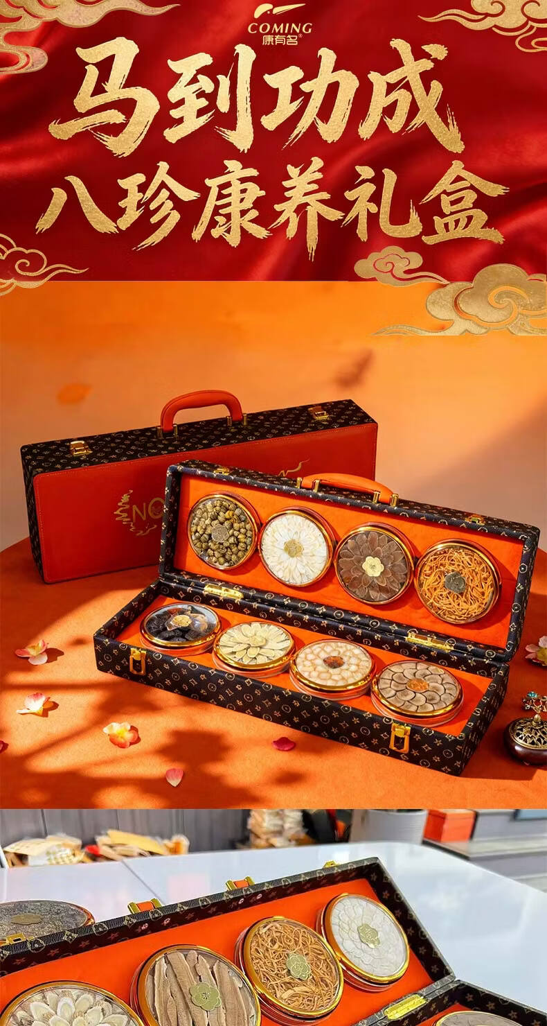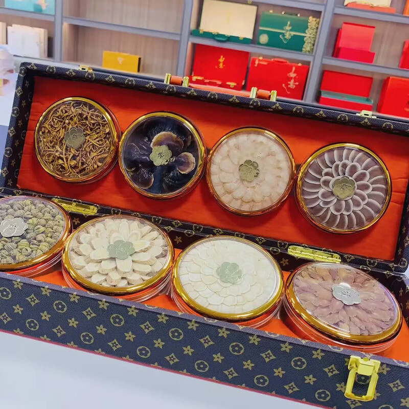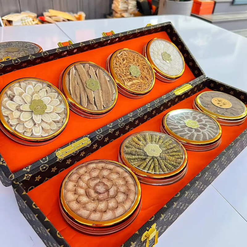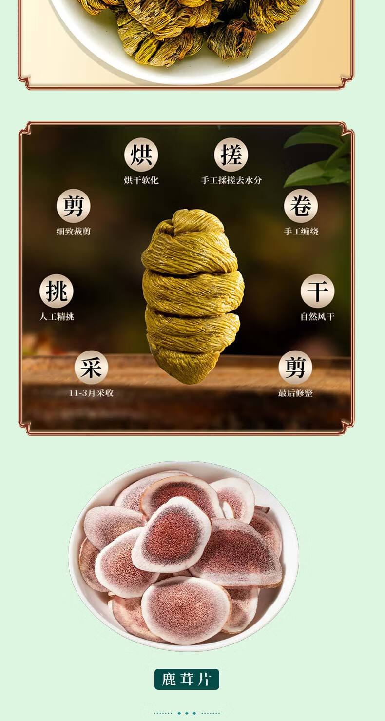 配置清单:红参片25g+西洋参片10g+黄芪片 25g+石斛 40g+鹿茸片6g+鹿鞭片 10g+灵芝15g+虫草花20克