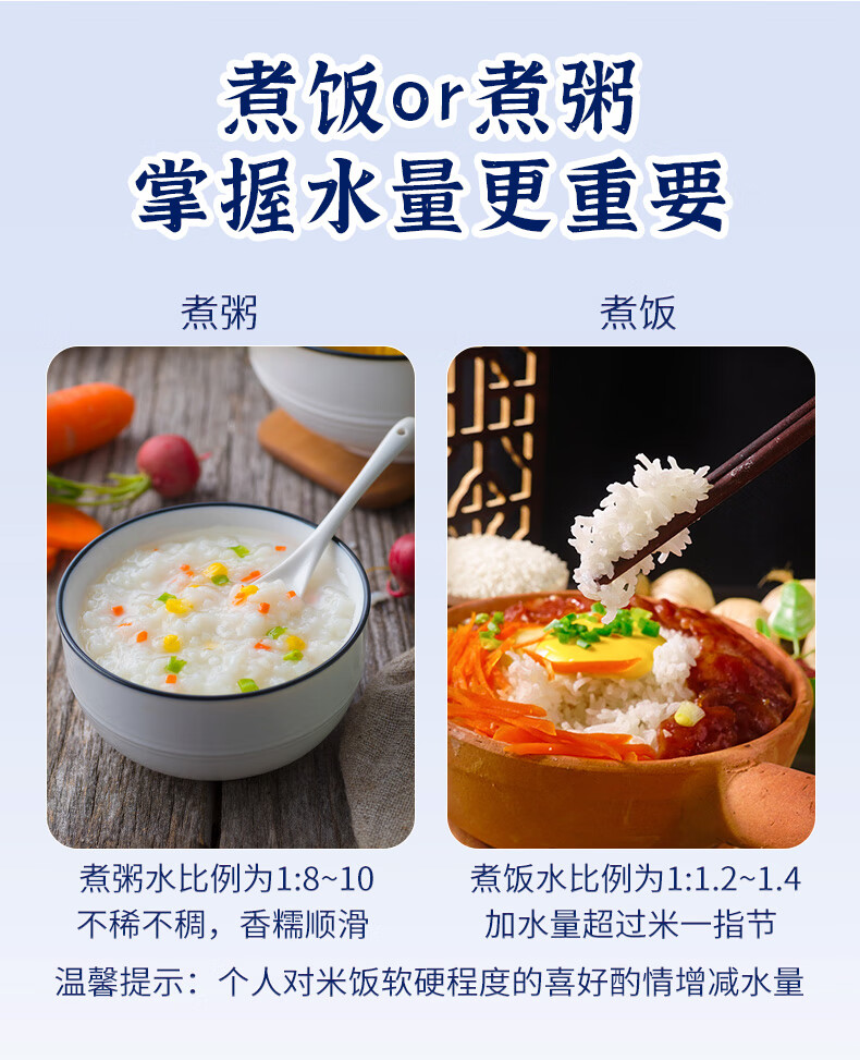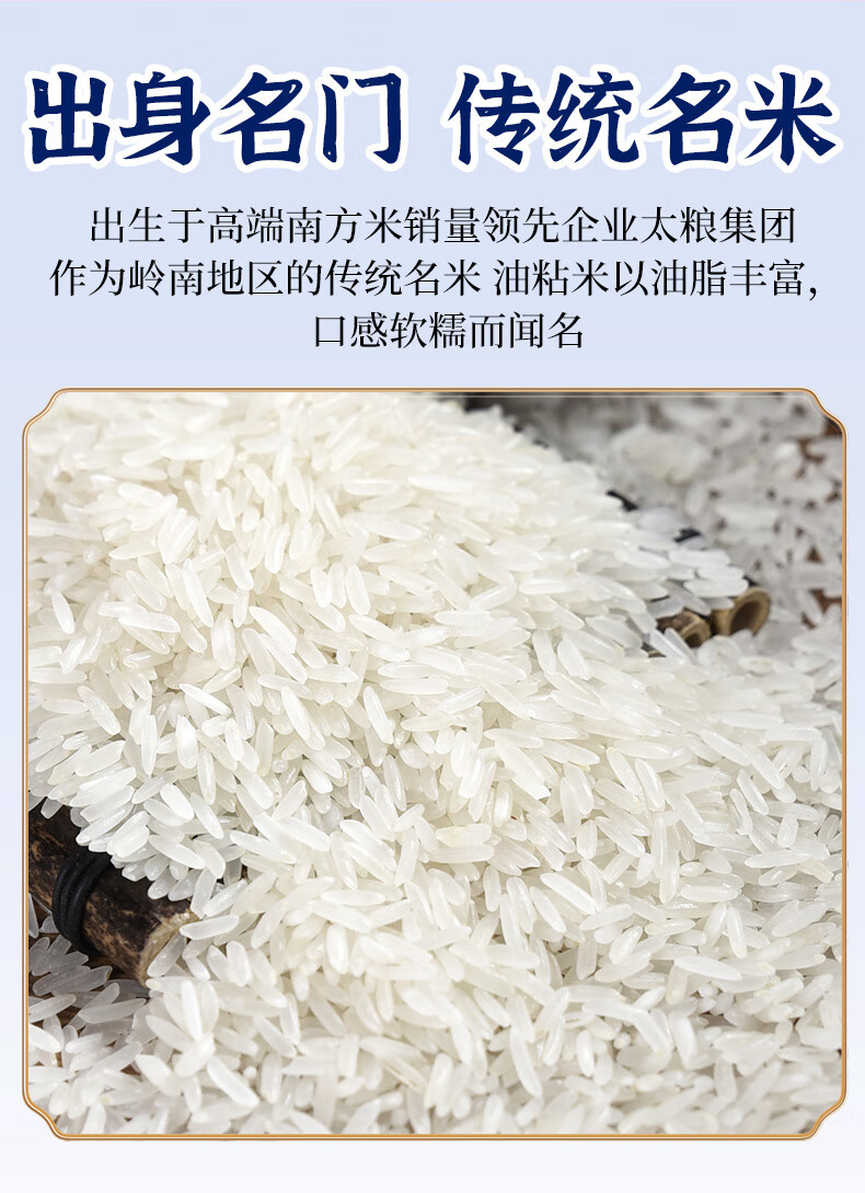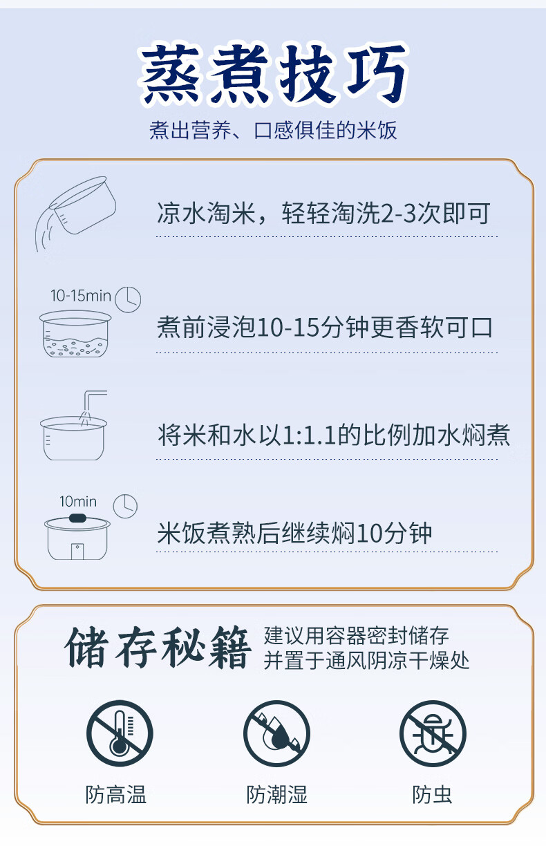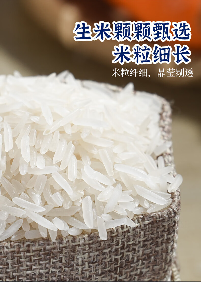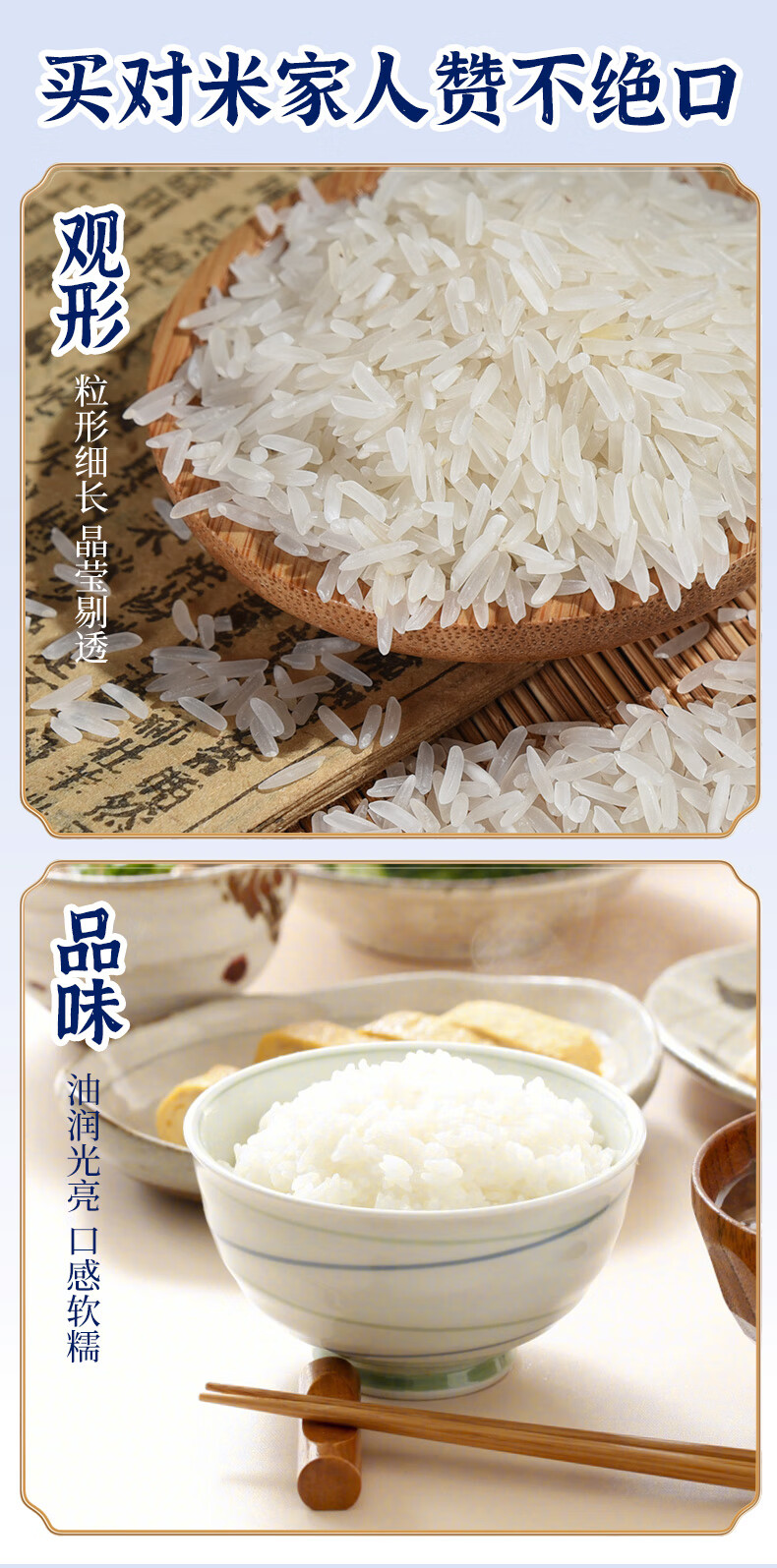 生米颗颗甄选,米粒细长;米粒纤细,品莹剔透;熟饭油润光亮,回感软糯