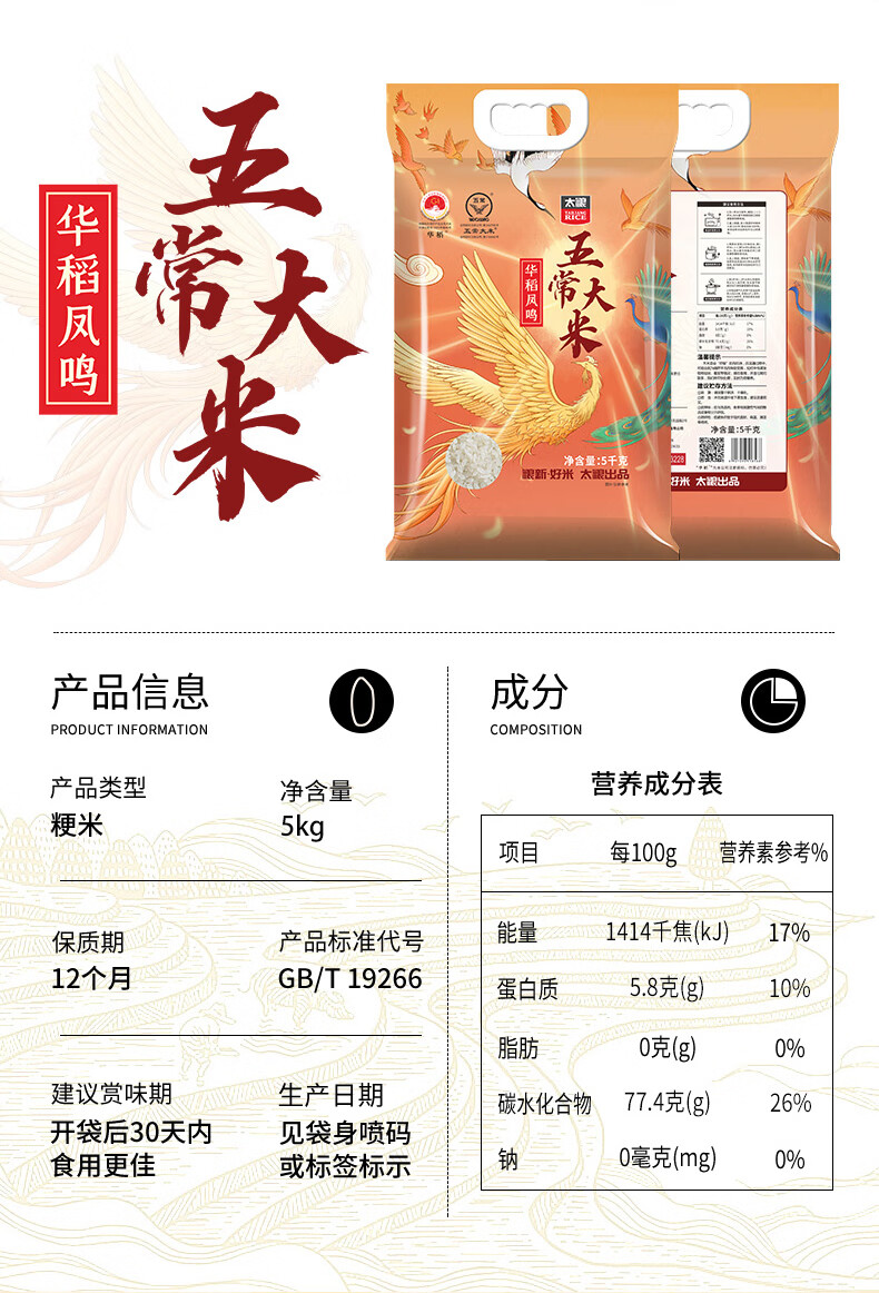 太粮 华稻凤鸣五常大米5kg
