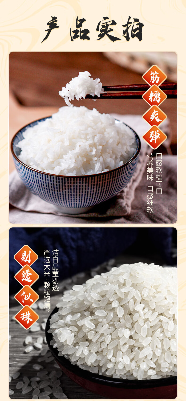 洁白晶莹剔透;严选大米,颗粒饱满;软糥可口,营养美味
