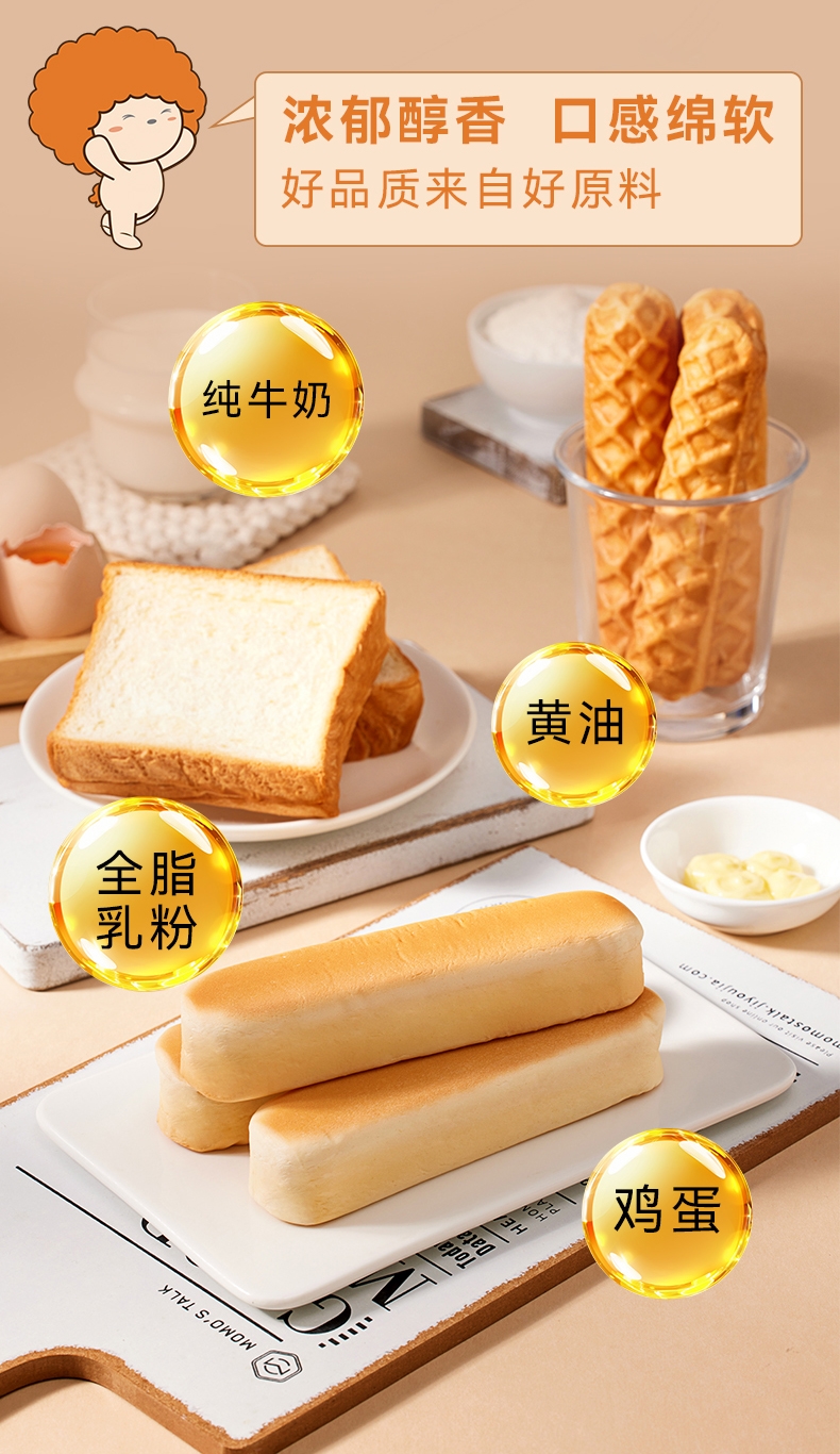 纯奶和面;奶香浓郁;黄油牛乳吐司