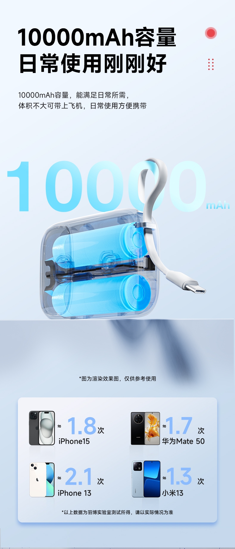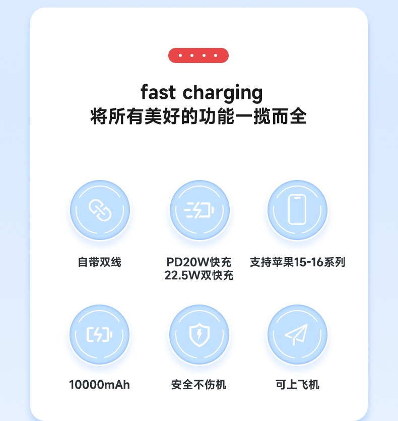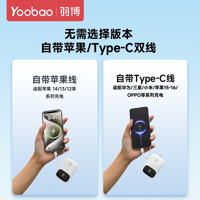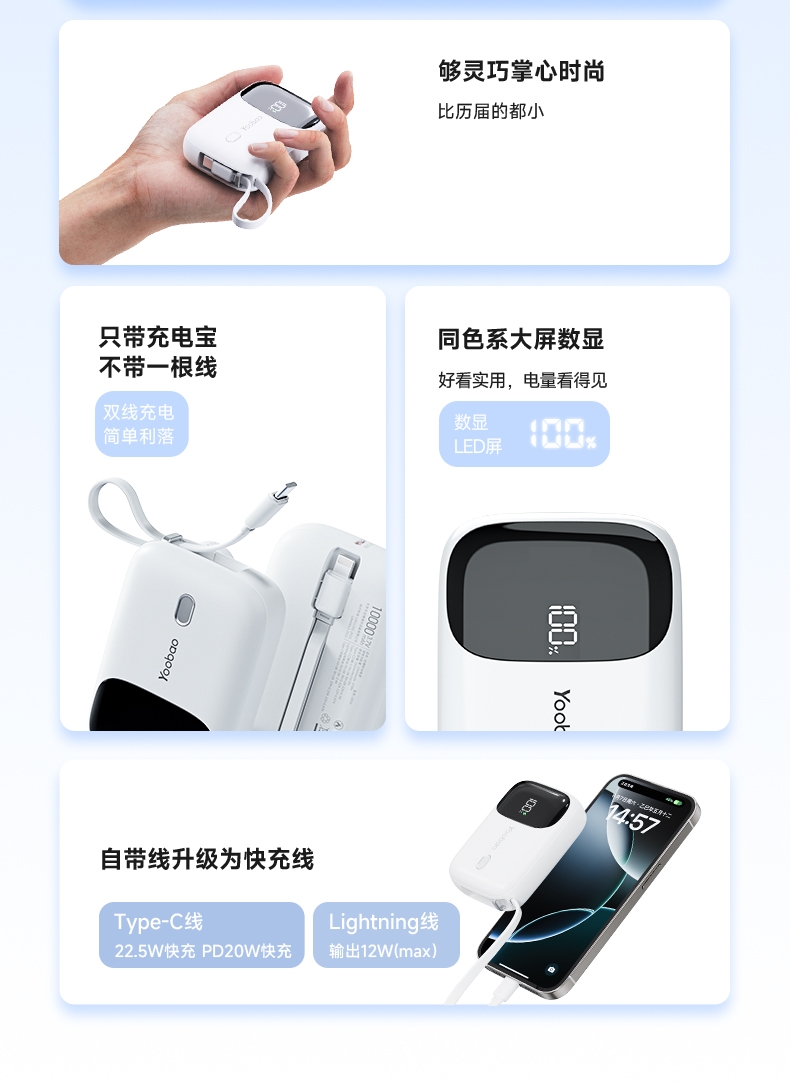 迷你自带线 充电更方便;小巧便捷 出行不再是负担;有3C安全认证 可登飞机