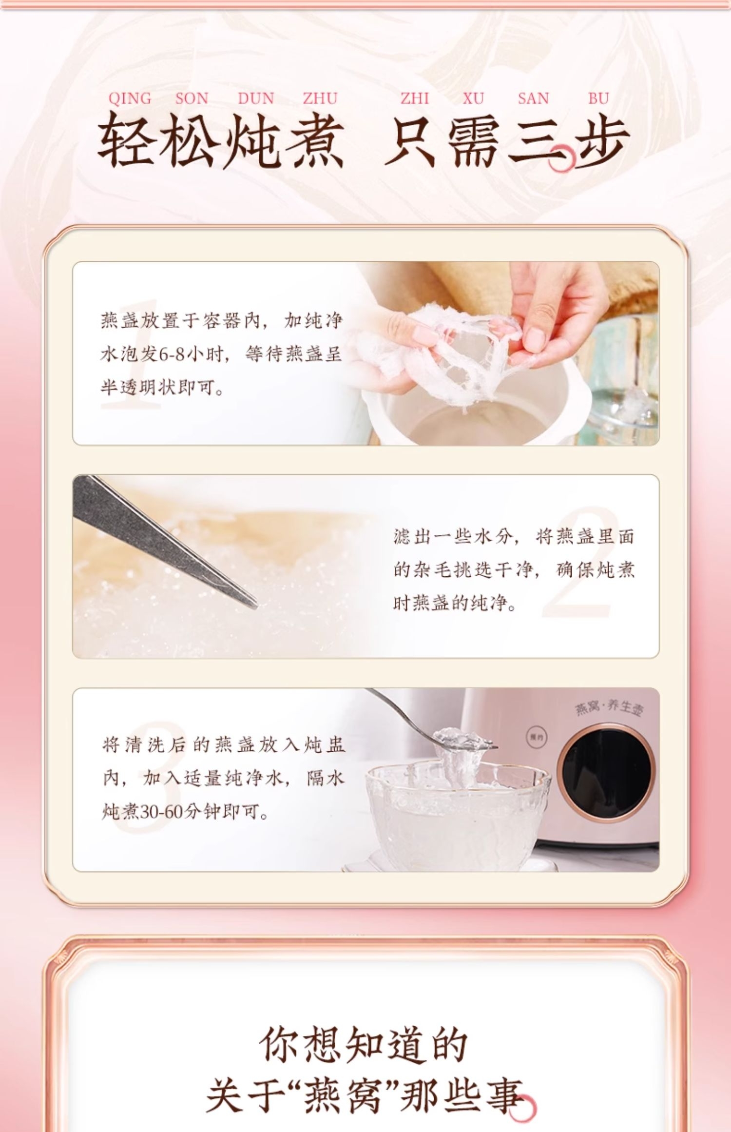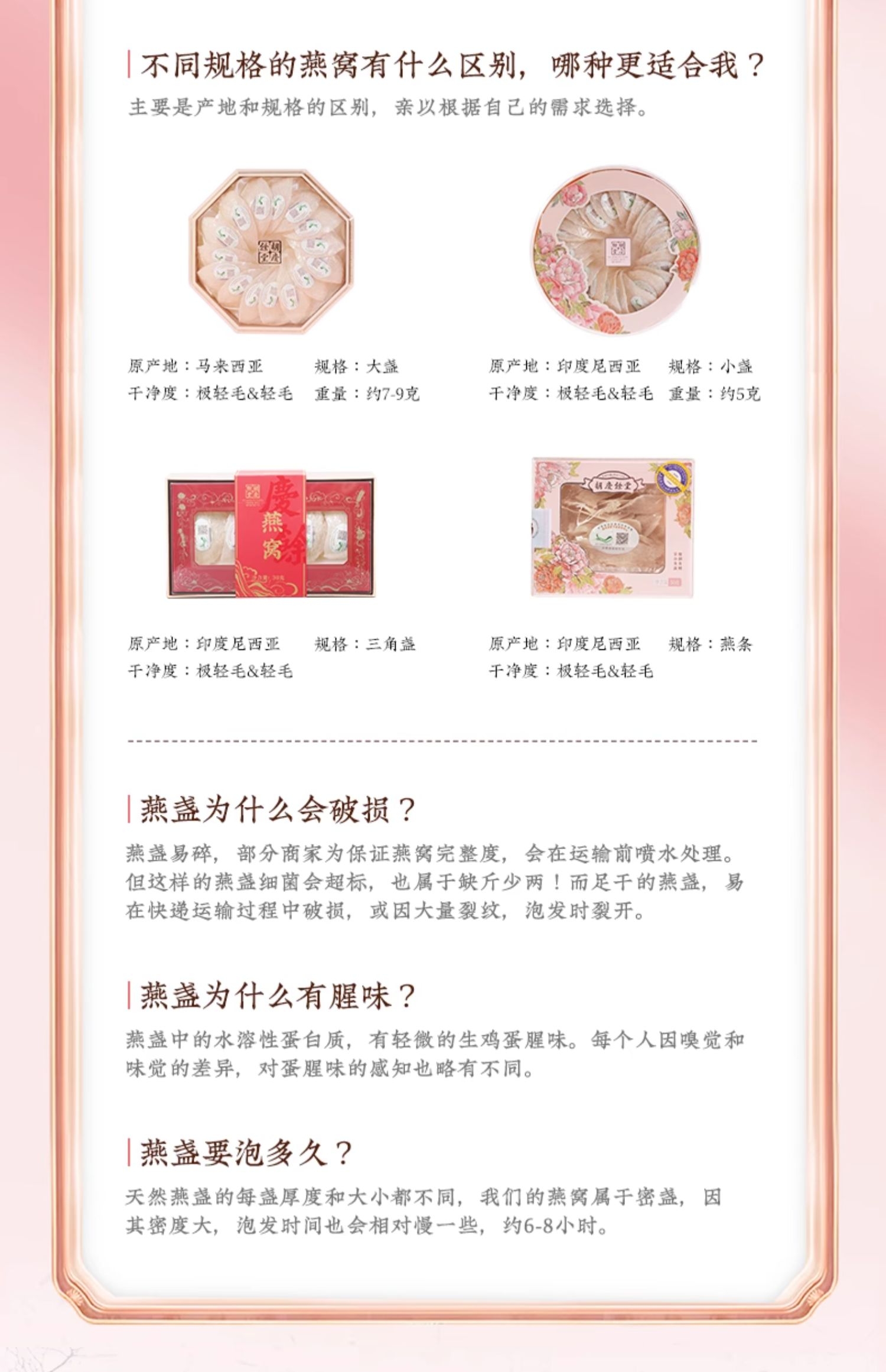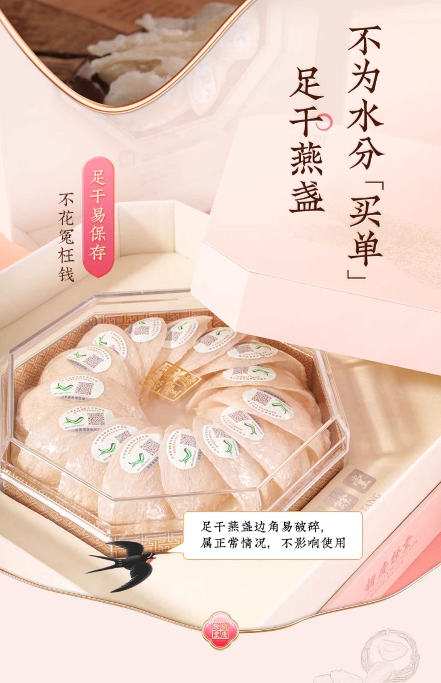 轻毛大燕盏 品质臻享;一盏一码 源头可查;食养滋补 呵护全家