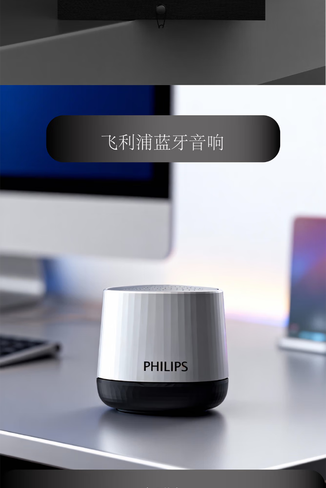 飞利浦蓝牙音响:型号:TAS1009 尺寸: 6.6*7.9*7.9 功能:蓝牙、通话功能、灯光