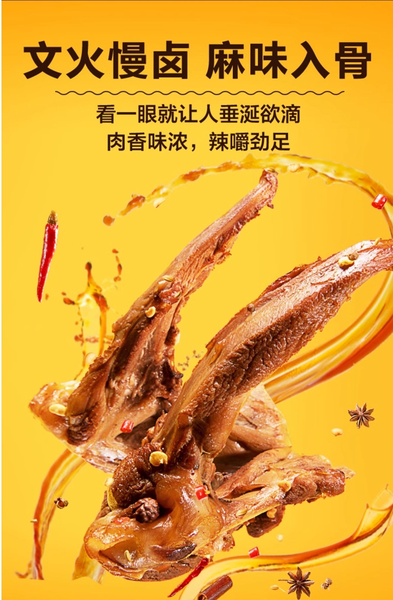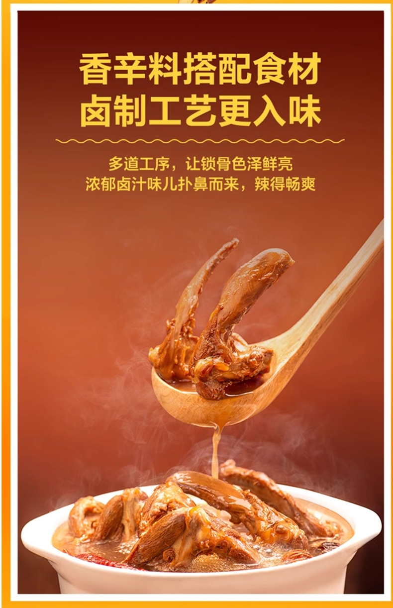 鲜嫩美味,肉质够紧实爽口;肉香味浓,辣嚼劲足;浓郁卤汁味儿扑鼻而来,辣得畅爽