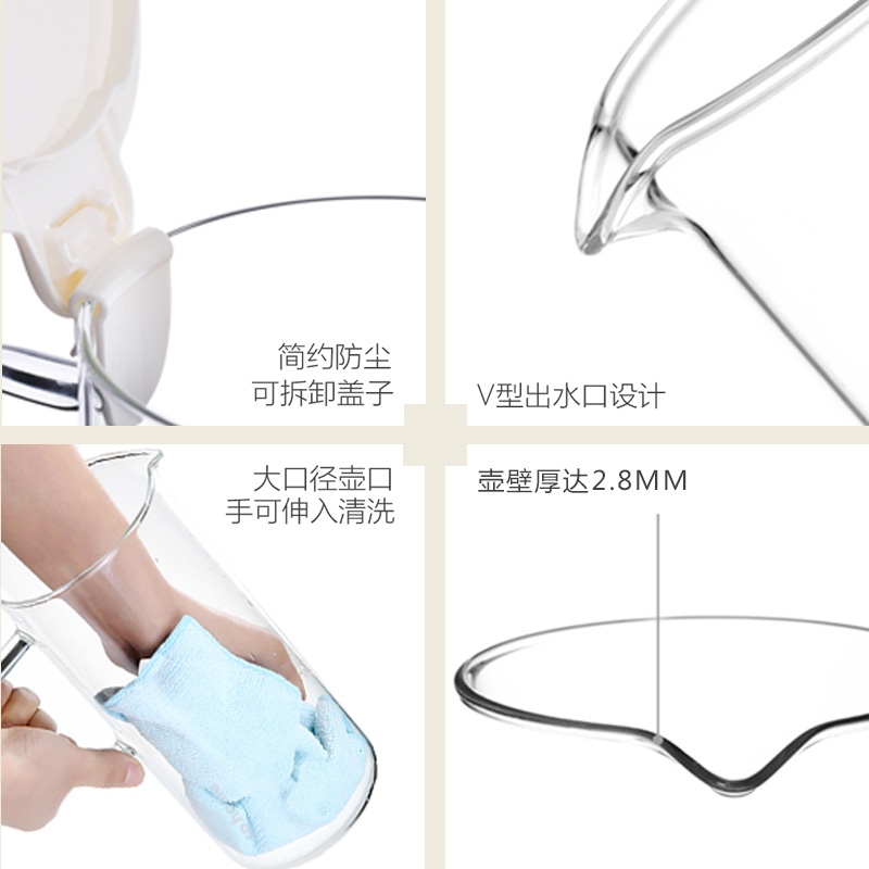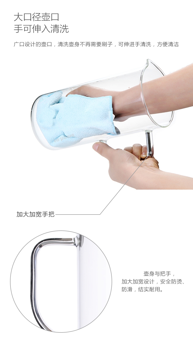 简约可脱卸壶盖;烧制一体把手,握感舒适;全食品接触用;无须预热,冷热不惧;大口径易清洗