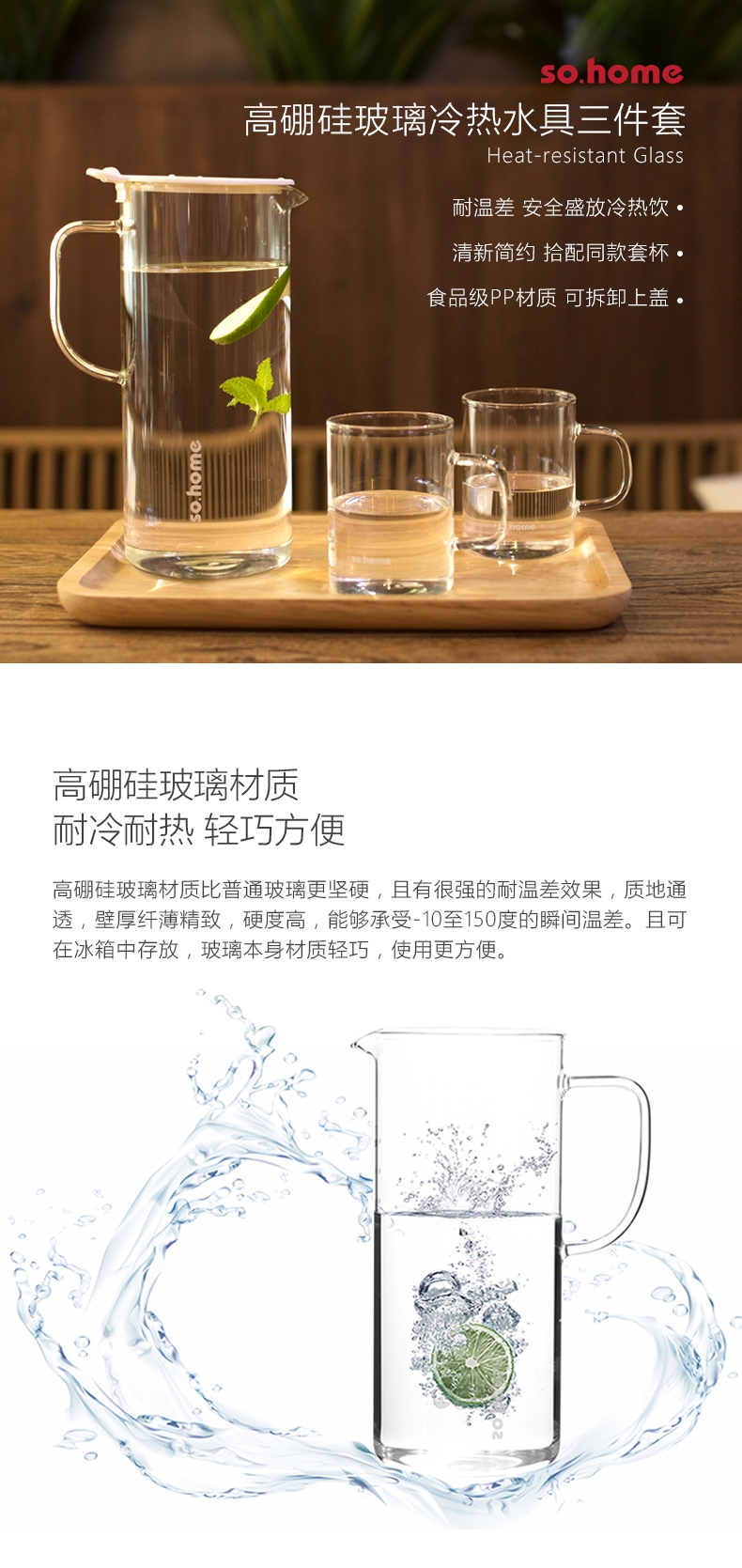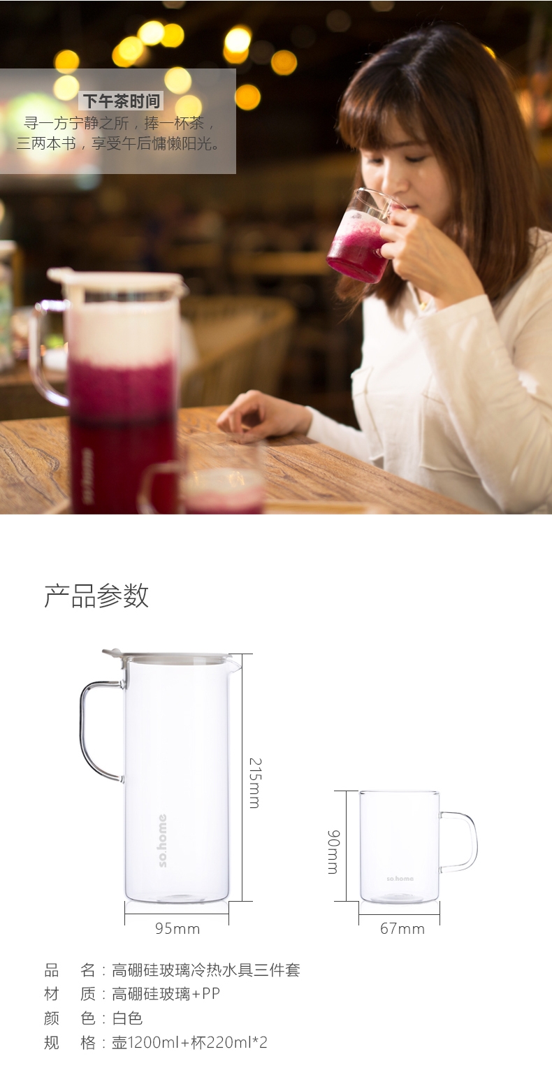 so.home 白色枫杨耐热玻璃水具三件套GR150-A
