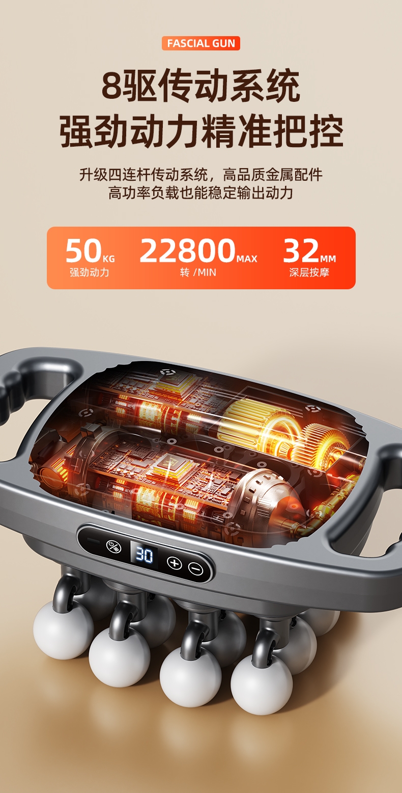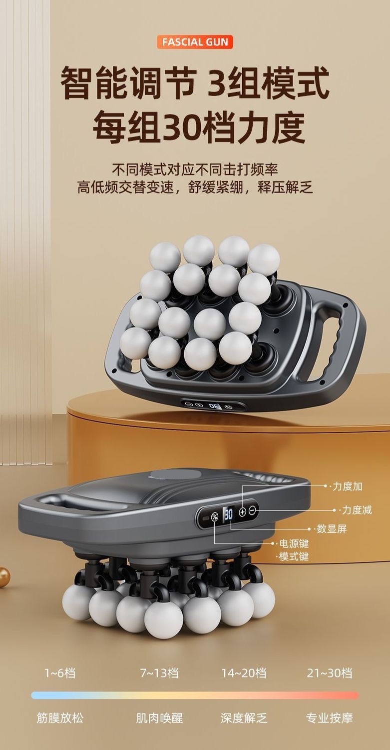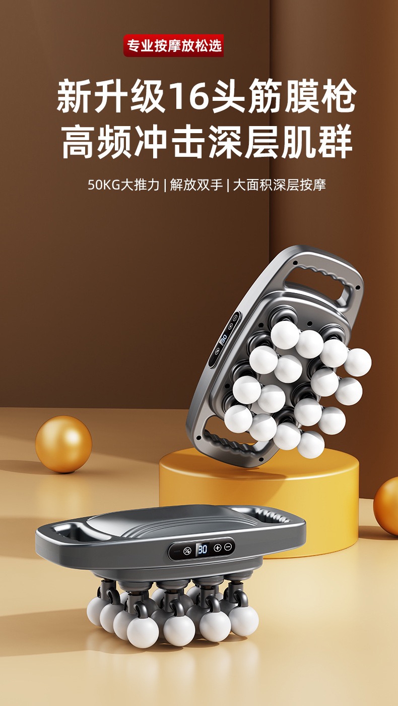 大动力16头大面积按摩精美礼盒包装送礼最佳;液晶显示三款模式加三十档位可调;高效肌肉颈椎全身放松