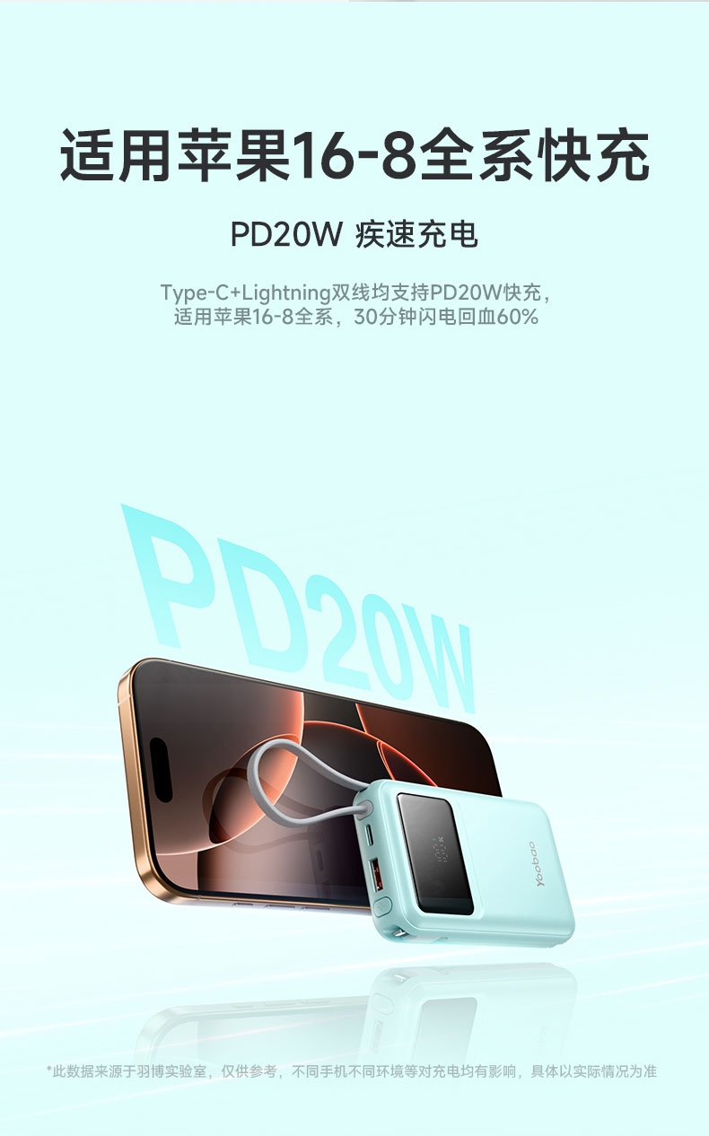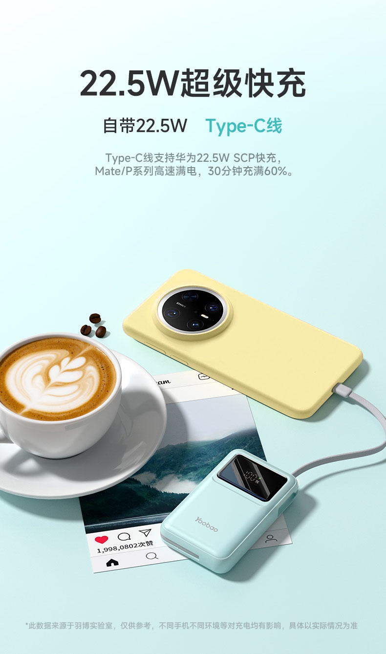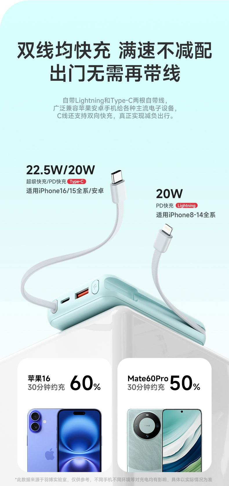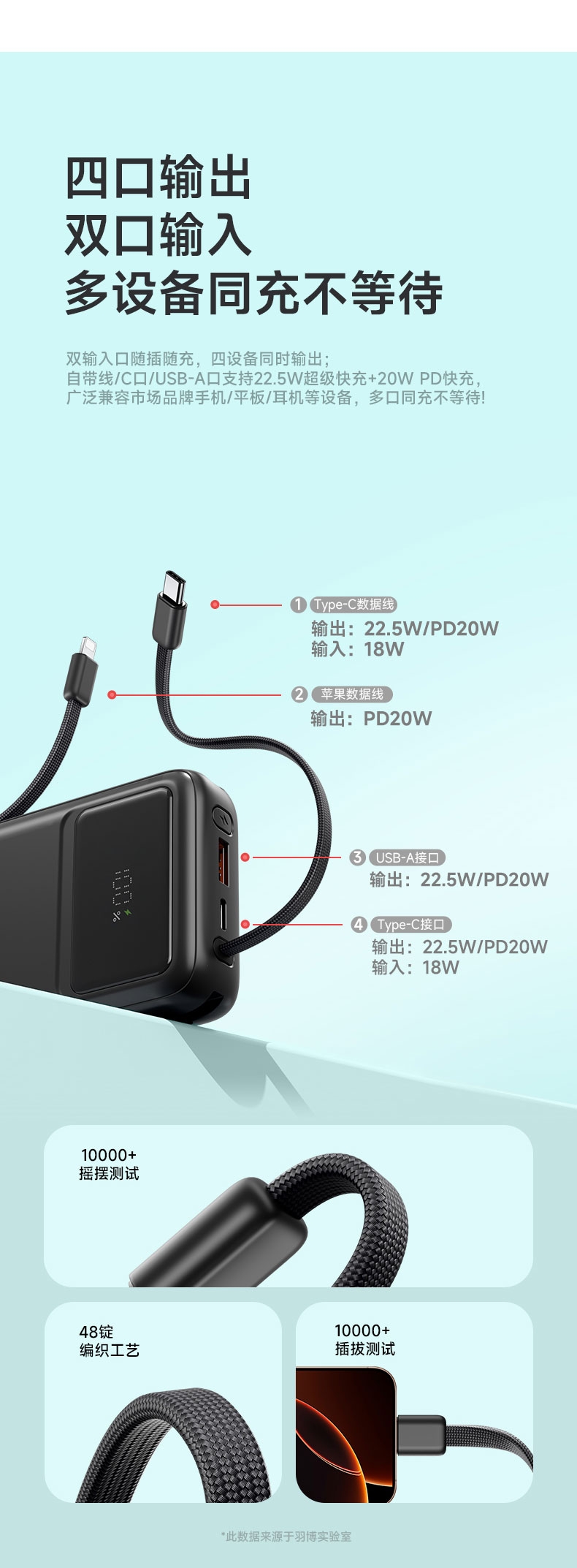 自带线 充电更方便;有3C安全认证 可登飞机;小巧便捷 出行不再是负担