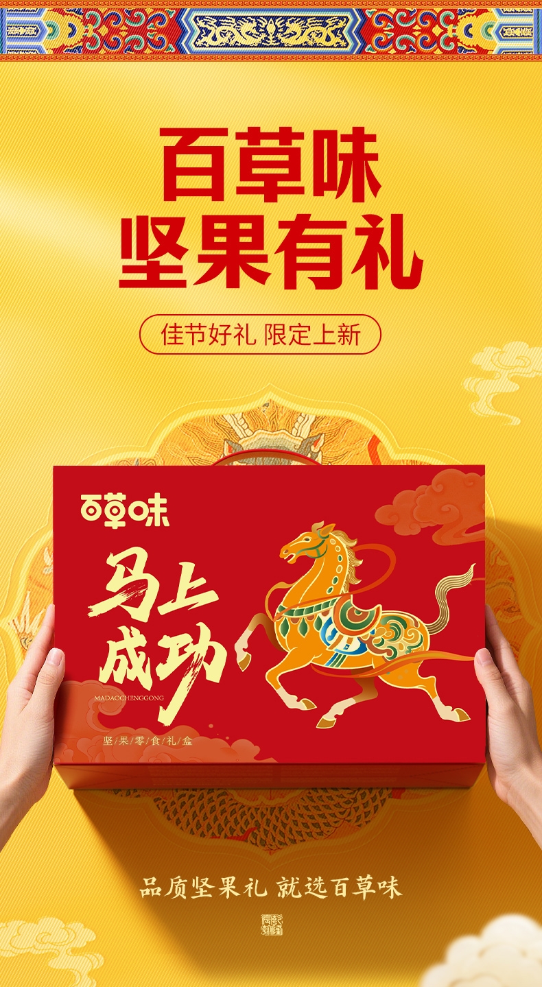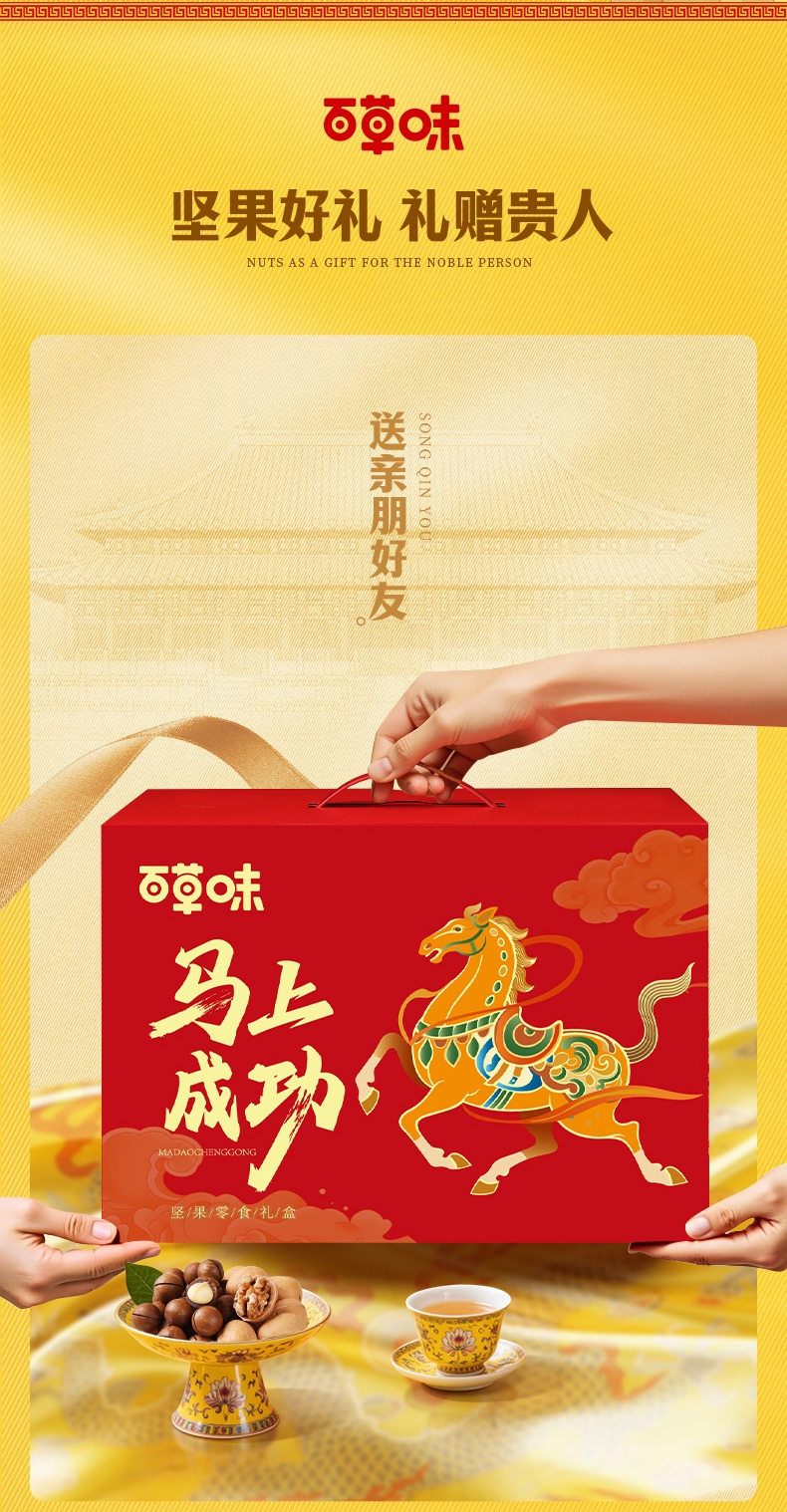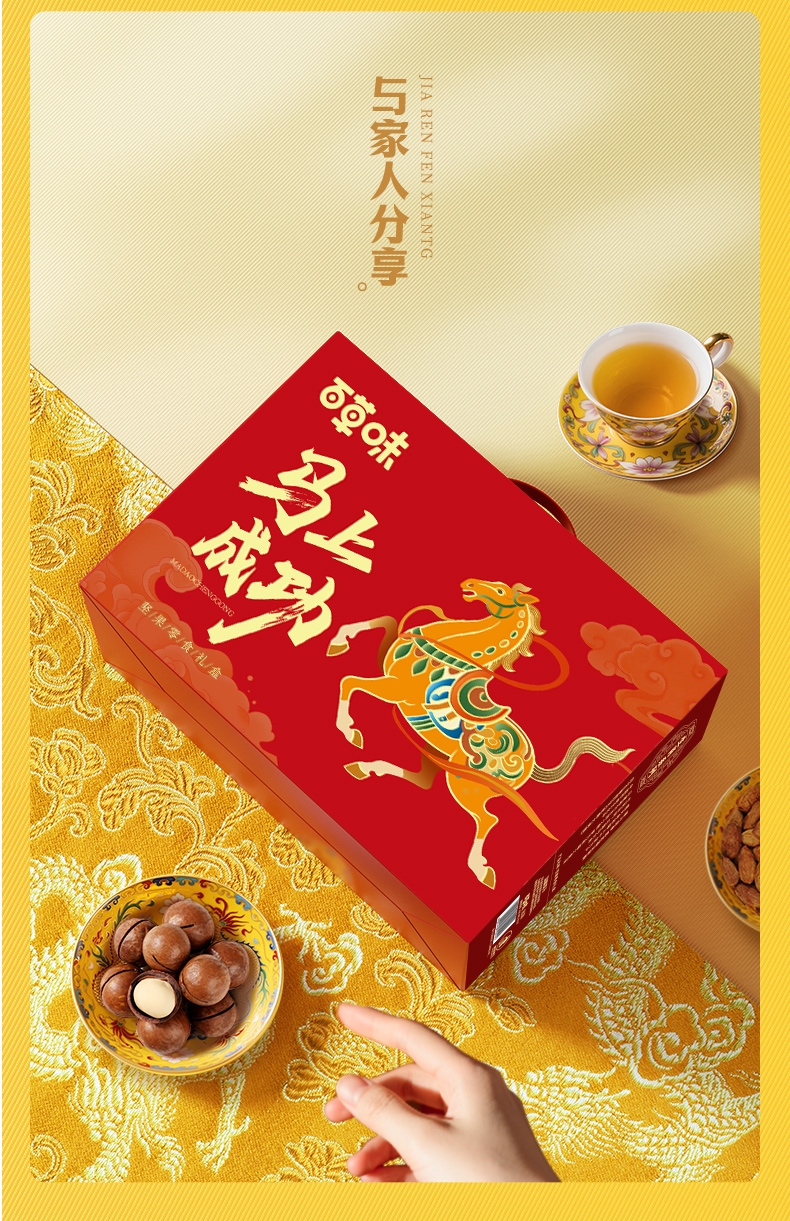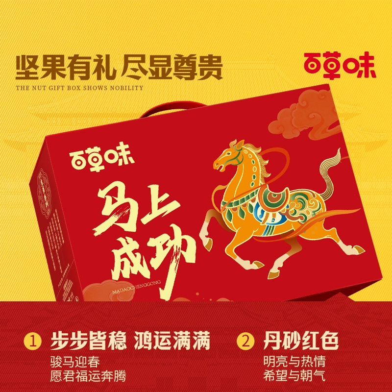 “马上成功” 吉祥寓意,送礼有彩头;985g 扎实分量,全坚果高配置;大牌品质 + 国潮颜值,礼赠有面