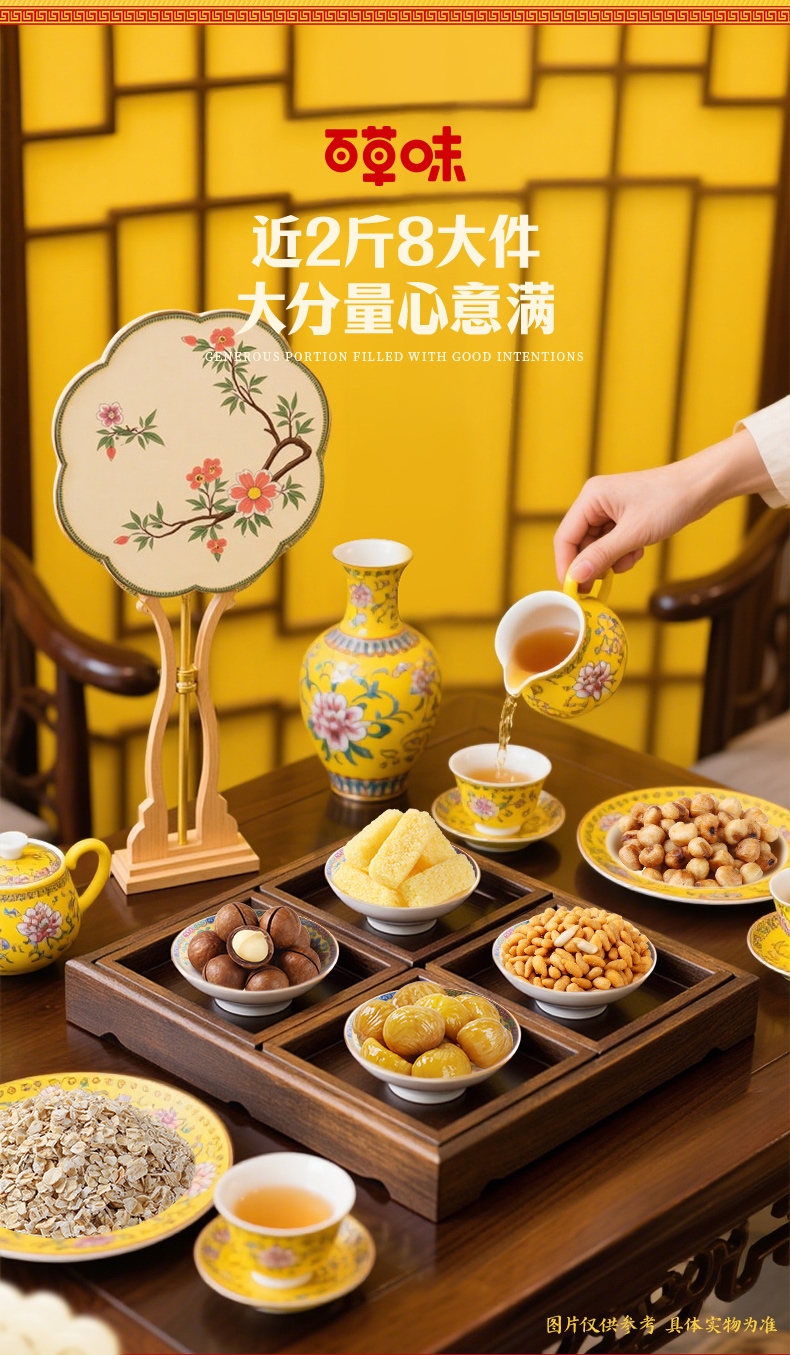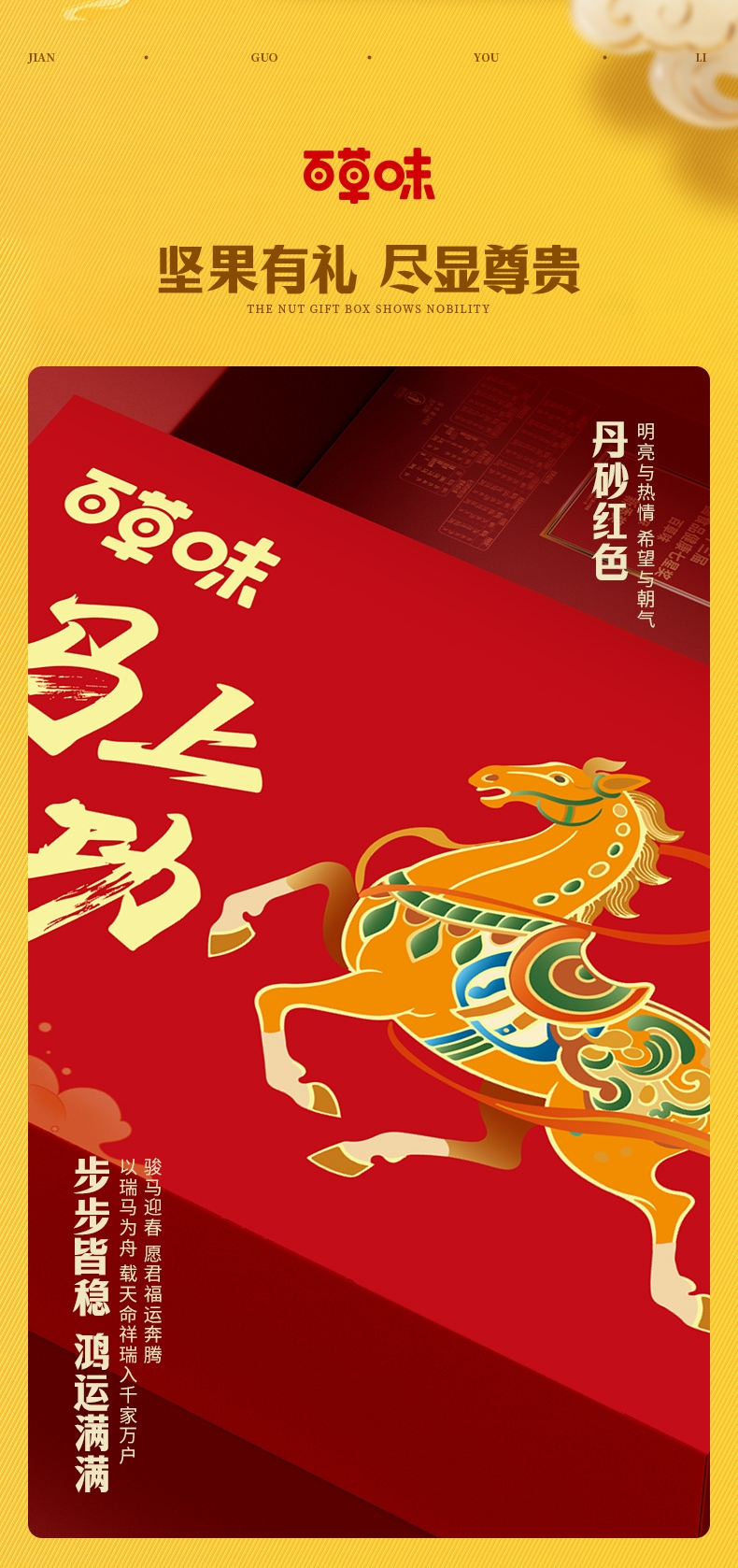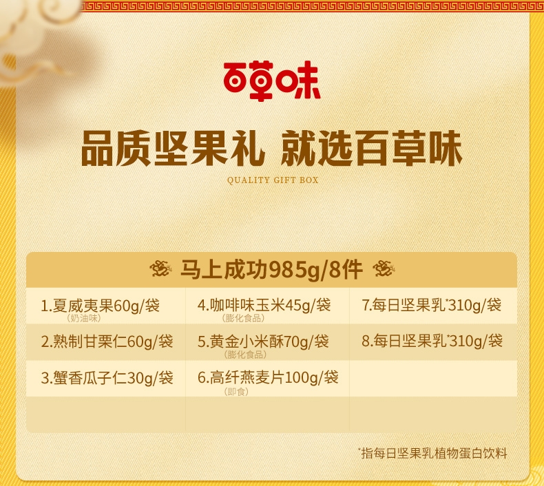 “马上成功” 吉祥寓意,送礼有彩头;985g 扎实分量,全坚果高配置;大牌品质 + 国潮颜值,礼赠有面