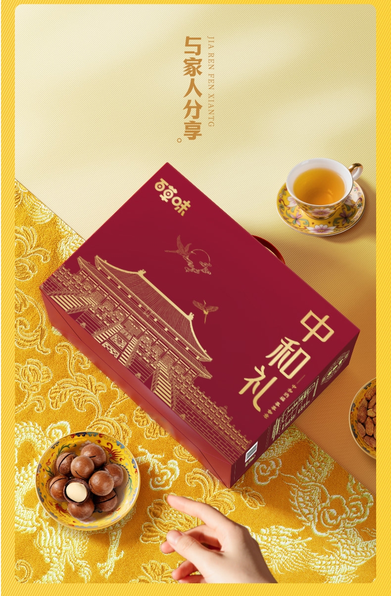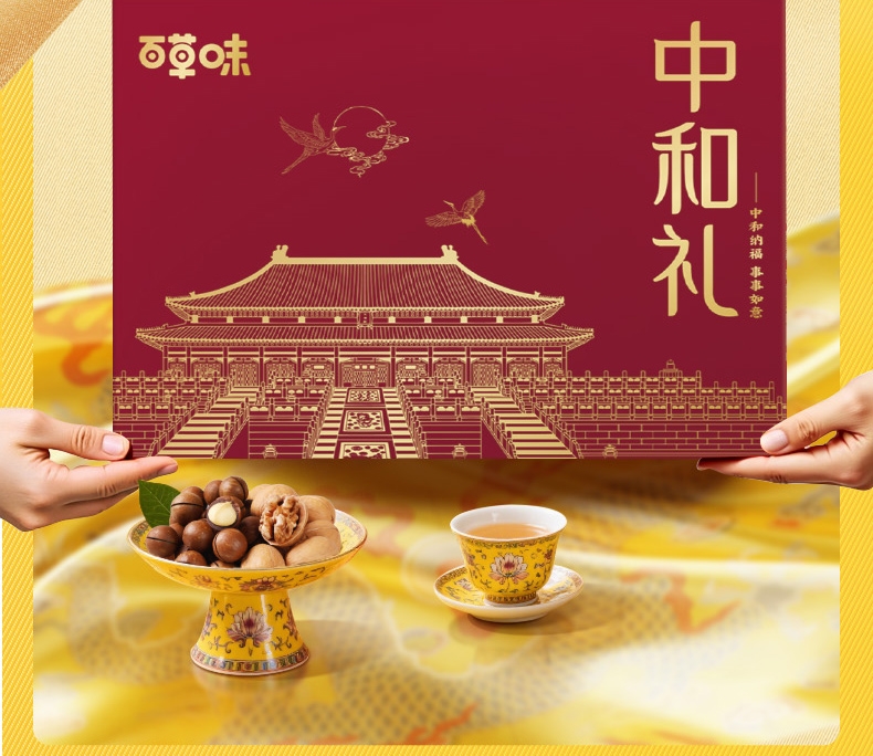 “中和” 吉祥寓意,送礼传心意;1516g 足量高配,品类丰富实用;大牌品质 + 质感包装,礼赠有面