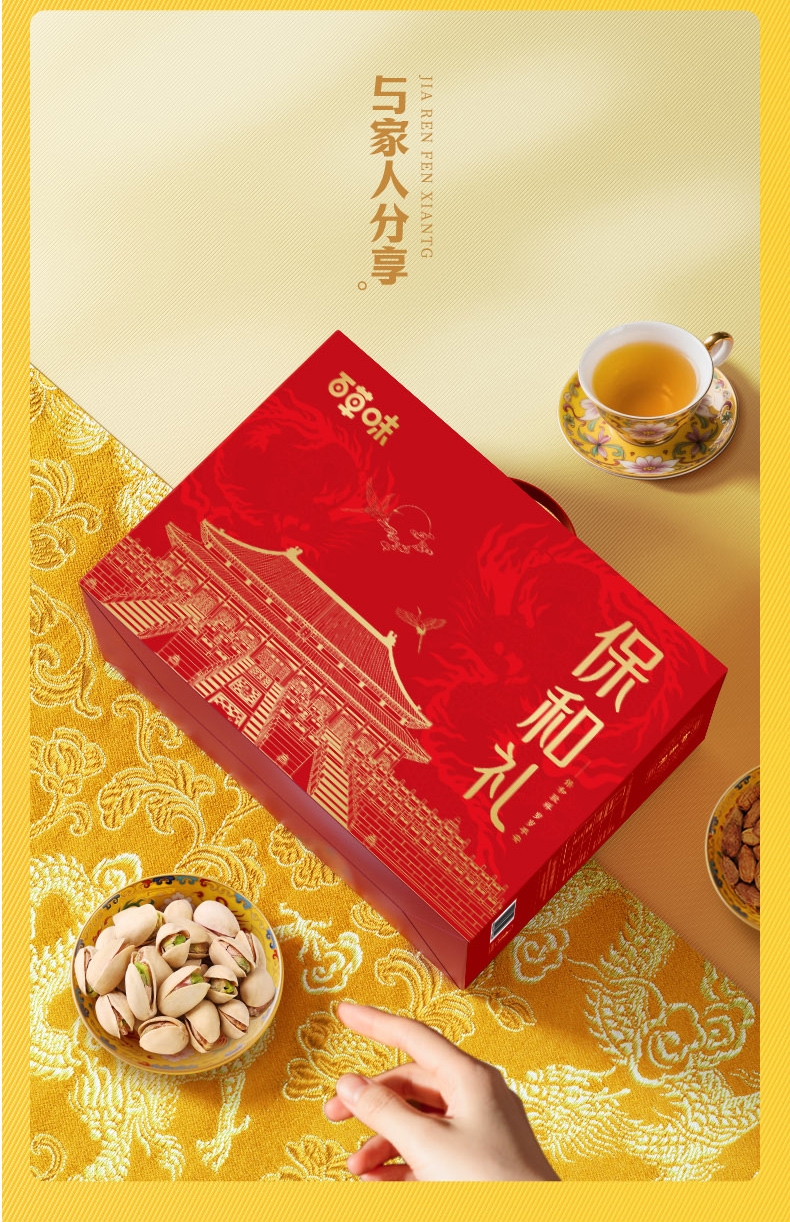 “保和” 文化寓意,送礼显内涵;1603g 纯坚果高配,分量超实在;非遗包装 + 大牌品质,礼赠有排面